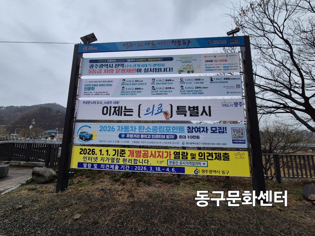 1월 개별공시지가 열람 및 의견제출 작성자동구25담당|작성시간26.03.18|조회수4 목록 댓글 0 글자크기 작게가 글자크기 크게가 다음검색 현재 게시글 추가 기능 열기 북마크 공유하기 신고 센터로 신고 댓글 댓글 0 댓글쓰기 댓글 리스트