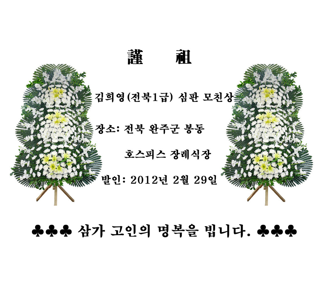 [[애사]]전북 김희영 심판 모친상 작성자곰뎅이|작성시간12.02.28|조회수22 목록 댓글 0 글자크기 작게가 글자크기 크게가 다음검색 현재 게시글 추가 기능 열기 북마크 공유하기 신고 센터로 신고 댓글 댓글 0 댓글쓰기 답글쓰기 댓글 리스트