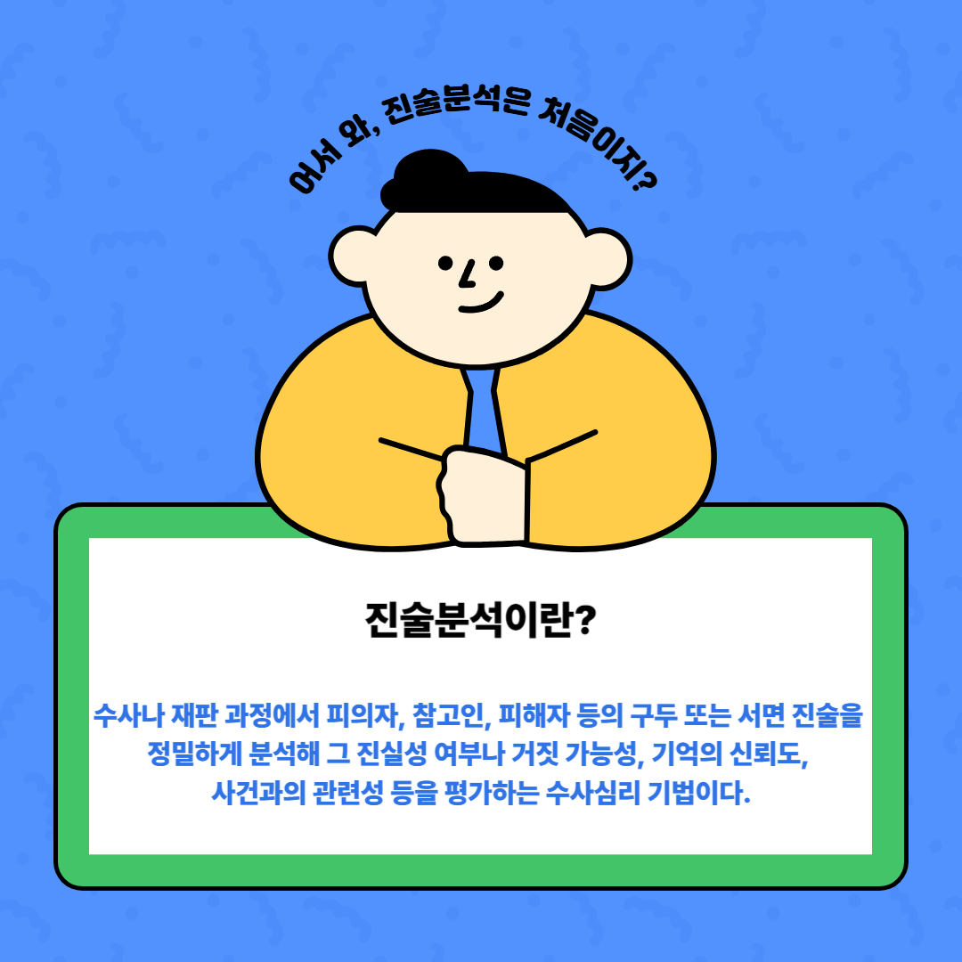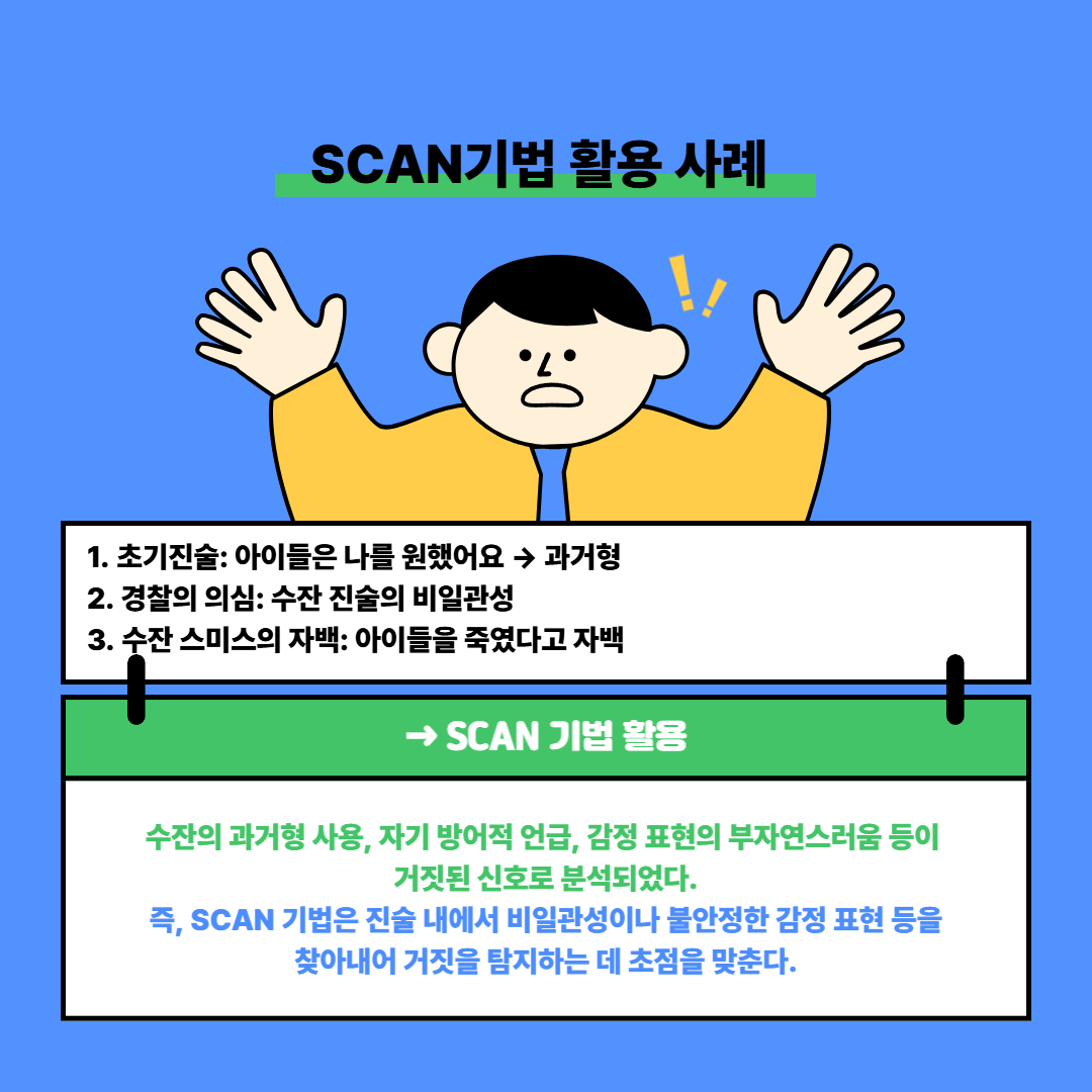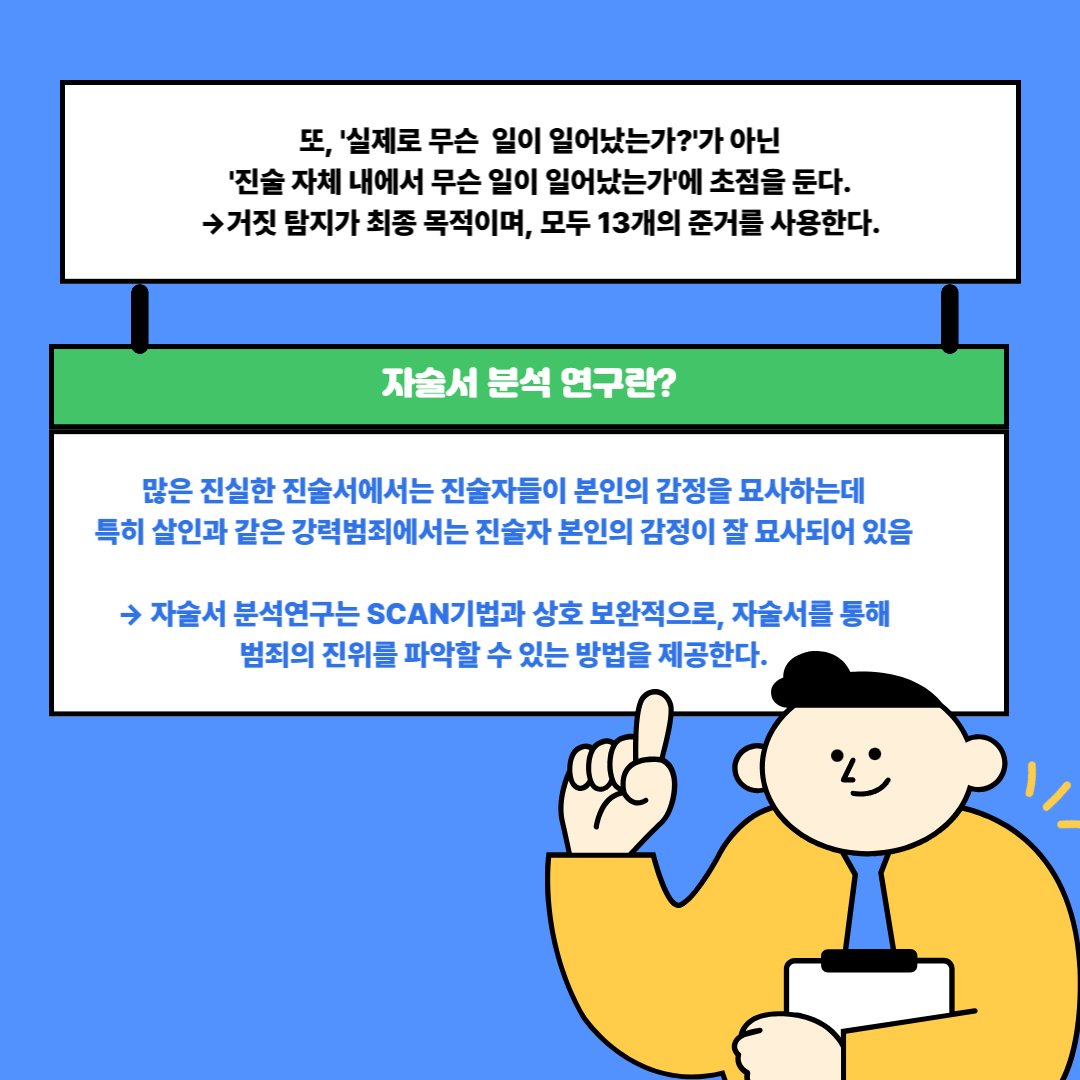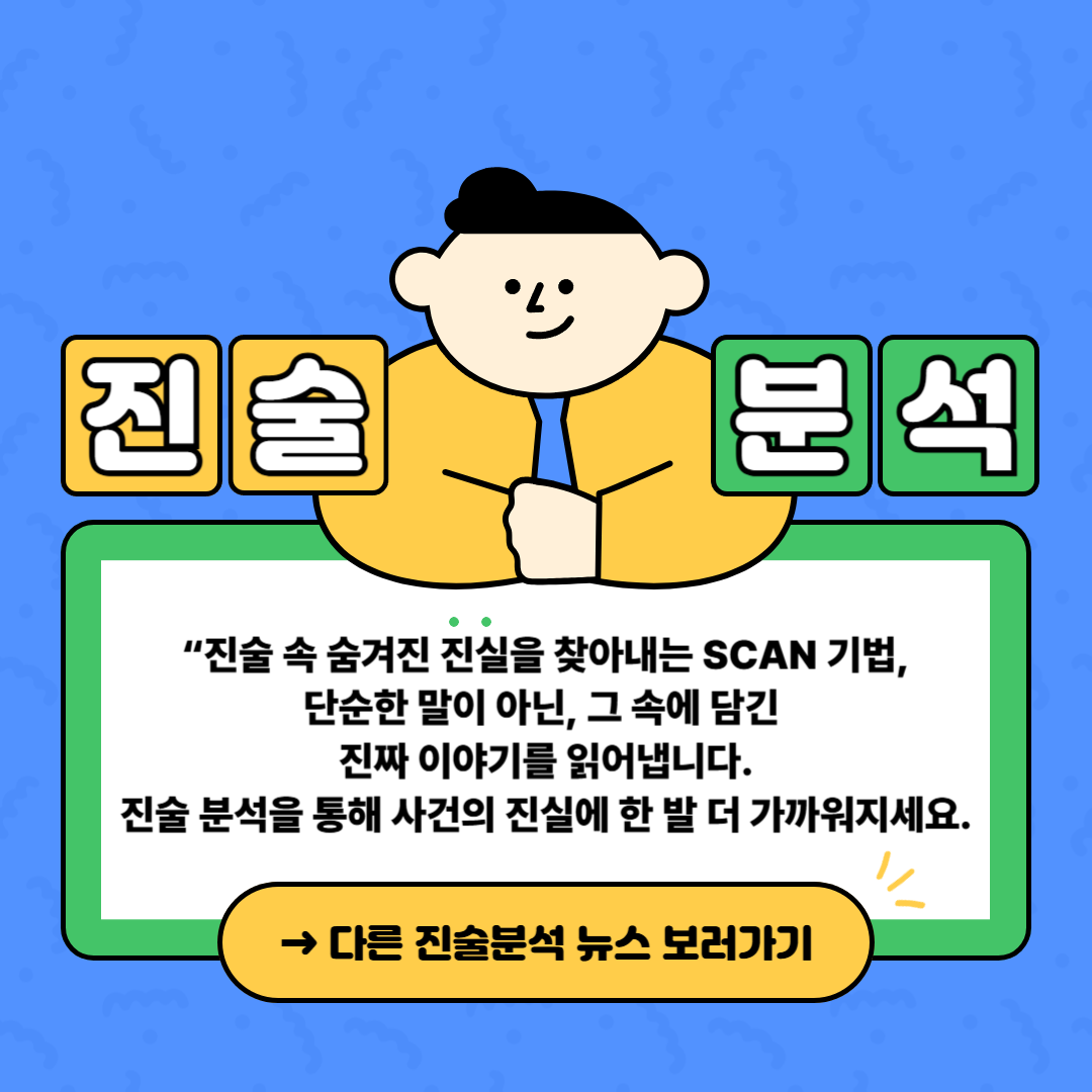 [카드뉴스 : 1호] 진술분석 중 SCAN에 대해 알아보기 작성자원혜은|작성시간25.08.13|조회수21 목록 댓글 0 글자크기 작게가 글자크기 크게가 출처: 주식회사 바로 다음검색 현재 게시글 추가 기능 열기 북마크 공유하기 신고 센터로 신고 댓글 댓글 0 댓글쓰기 답글쓰기 댓글 리스트