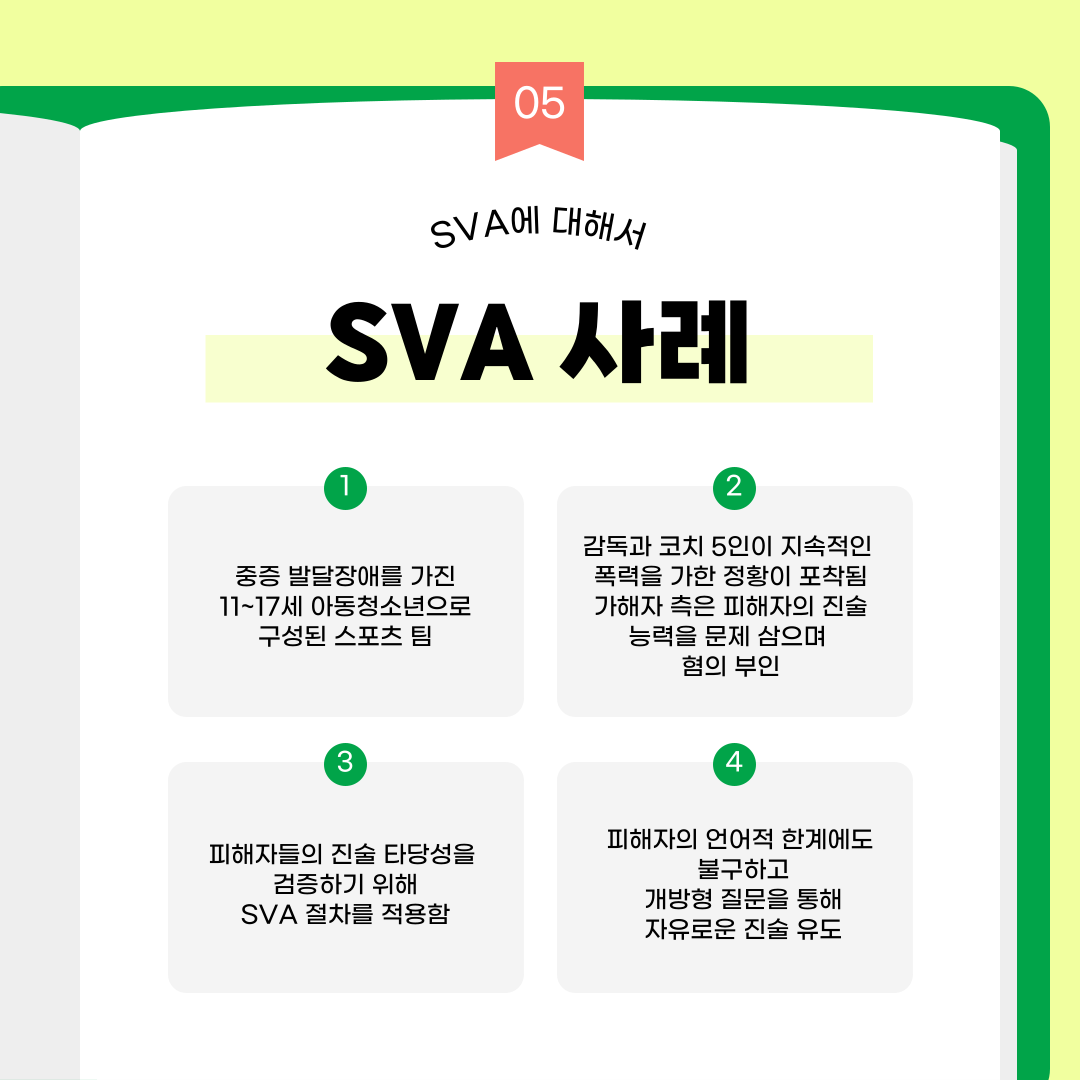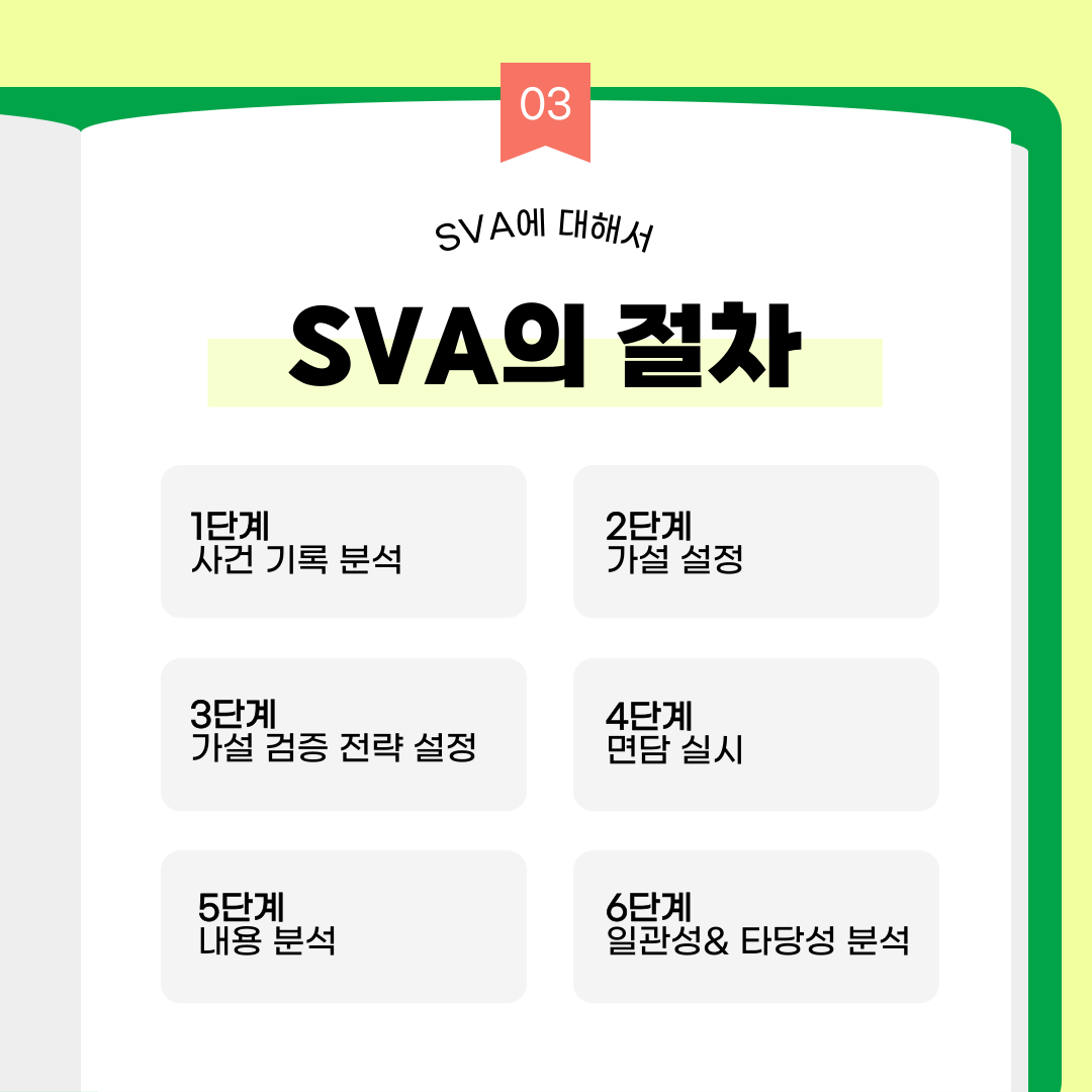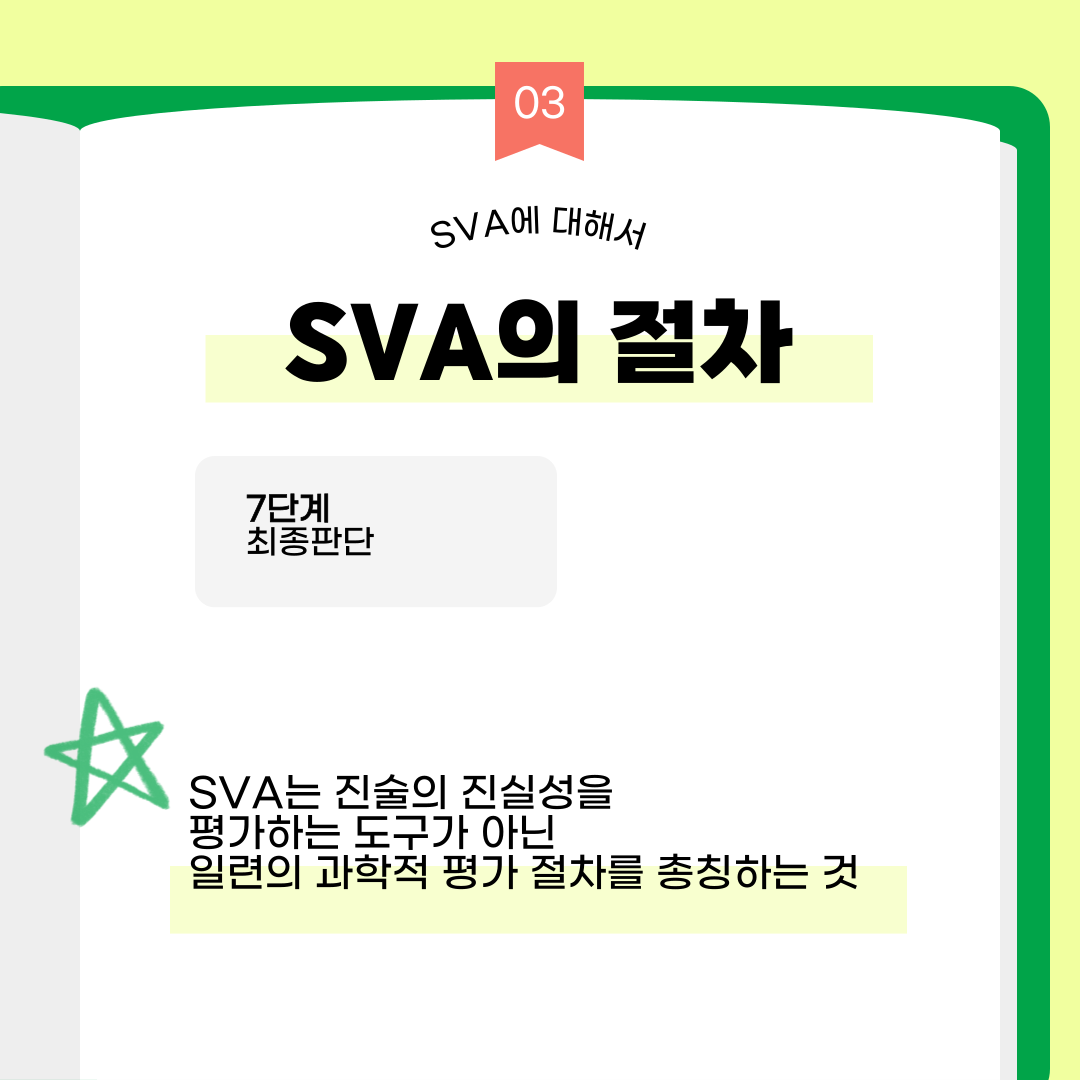 [카드뉴스 : 4호] 진술타당성 평가인 SVA에 대해 알아보기 작성자원혜은|작성시간25.08.18|조회수19 목록 댓글 0 글자크기 작게가 글자크기 크게가 출처: DNA 분석만으론 어려운 '참·거짓' 가리는 '진술분석' : 동아사이언스진술분석 절차의 확립: 진술타당도분석(SVA)과학 기술의 틈새 : 진술 신빙성 판단 < 이윤정의 법심리학 카페 < 범죄 전문가들의 사건분석 < 기사본문 - 수사연구 다음검색 현재 게시글 추가 기능 열기 북마크 공유하기 신고 센터로 신고 댓글 댓글 0 댓글쓰기 답글쓰기 댓글 리스트