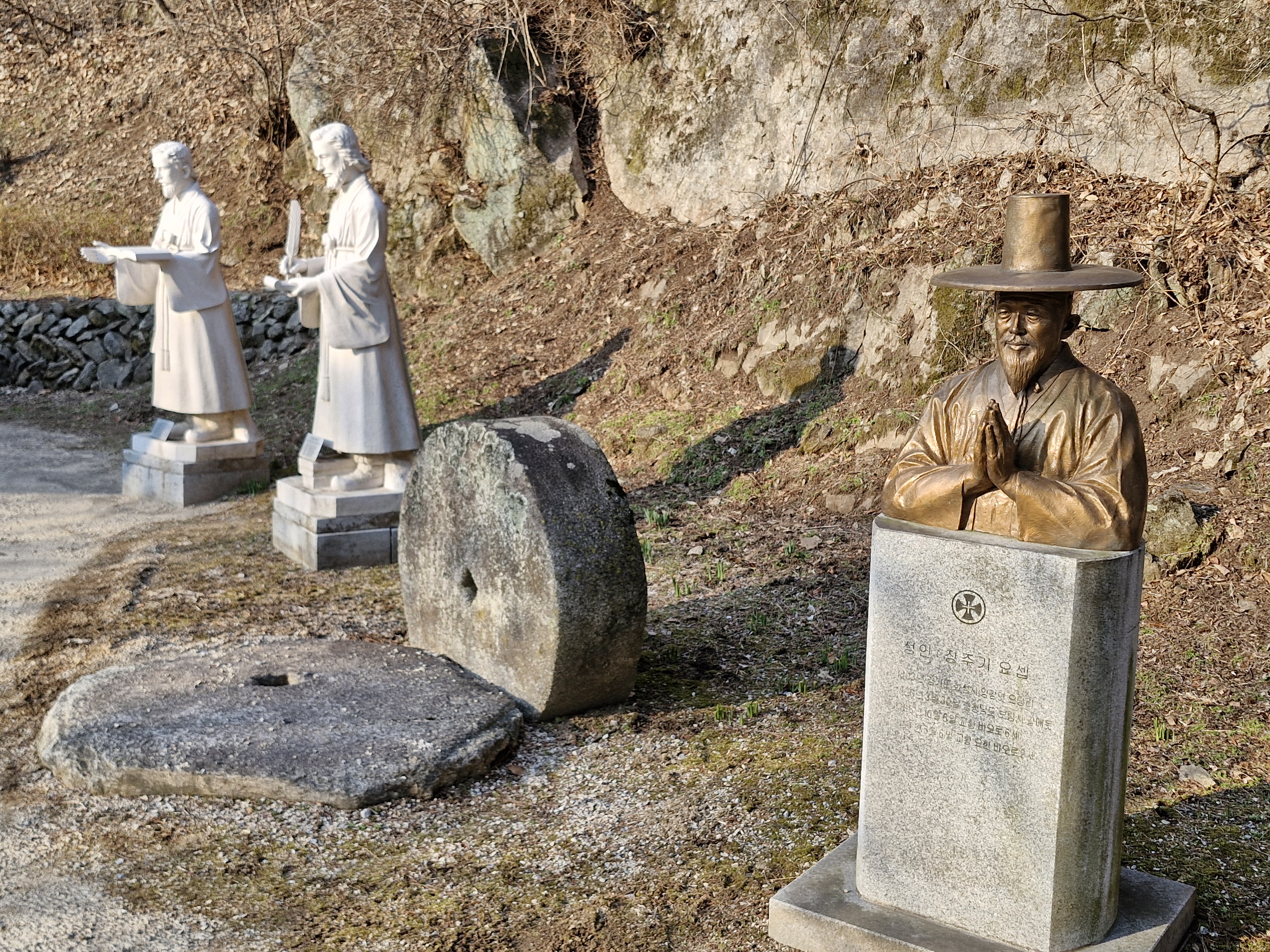 정자 아래쪽에 최양업 신부 조각공원이 있다.