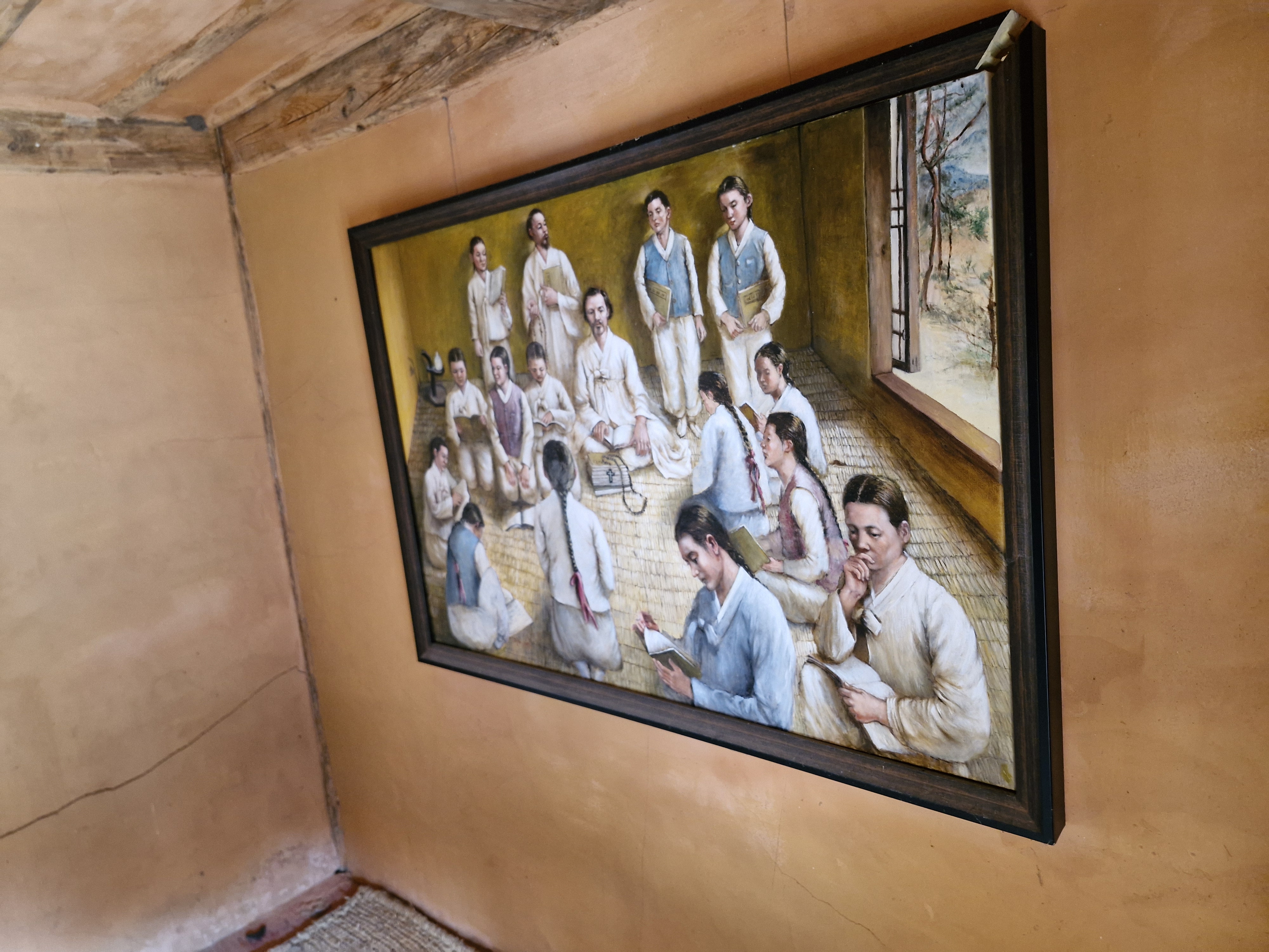 방에는 당시 학생들과 선교사의 모형상이나 그림이 벽에 걸렸다.