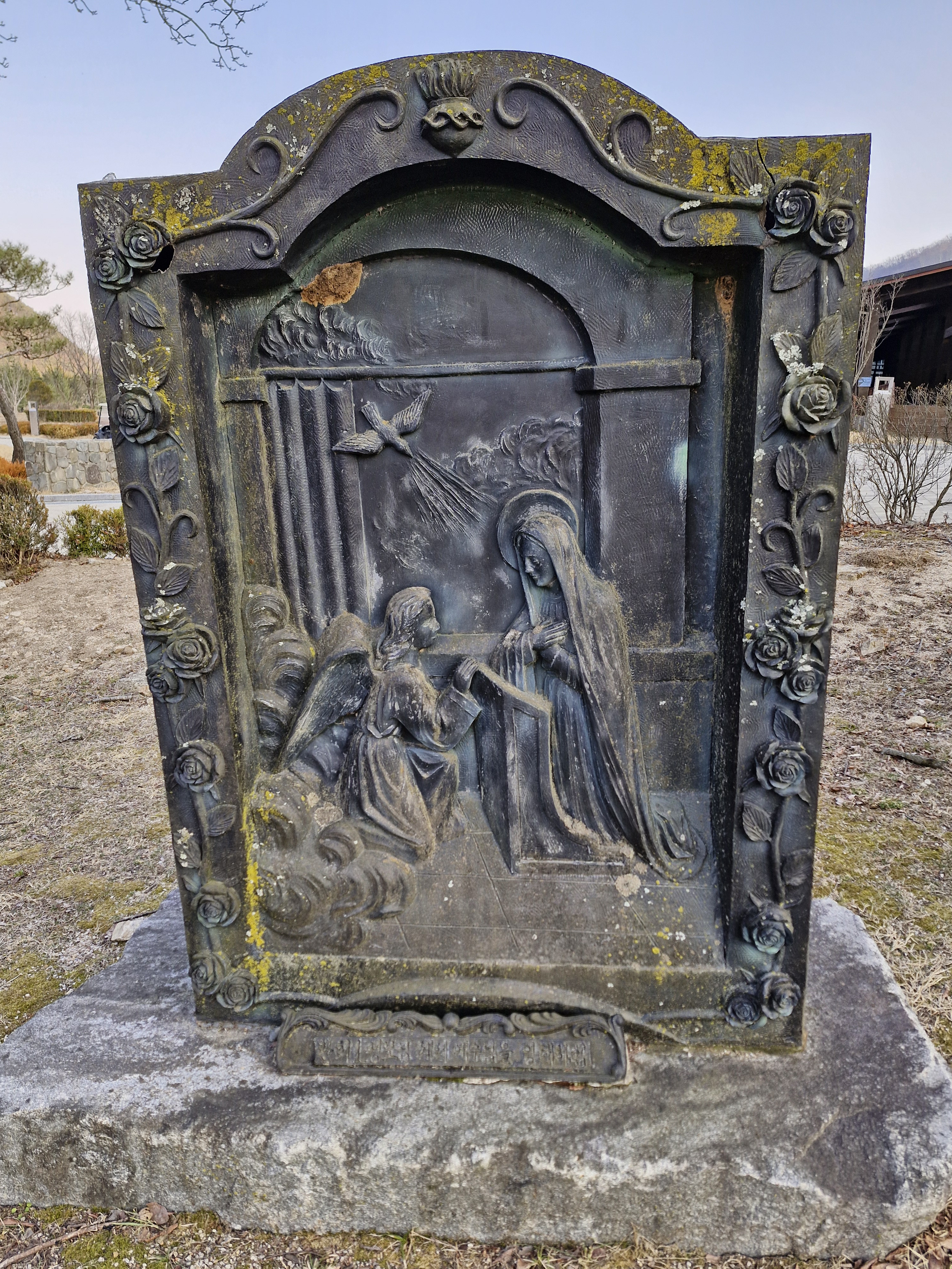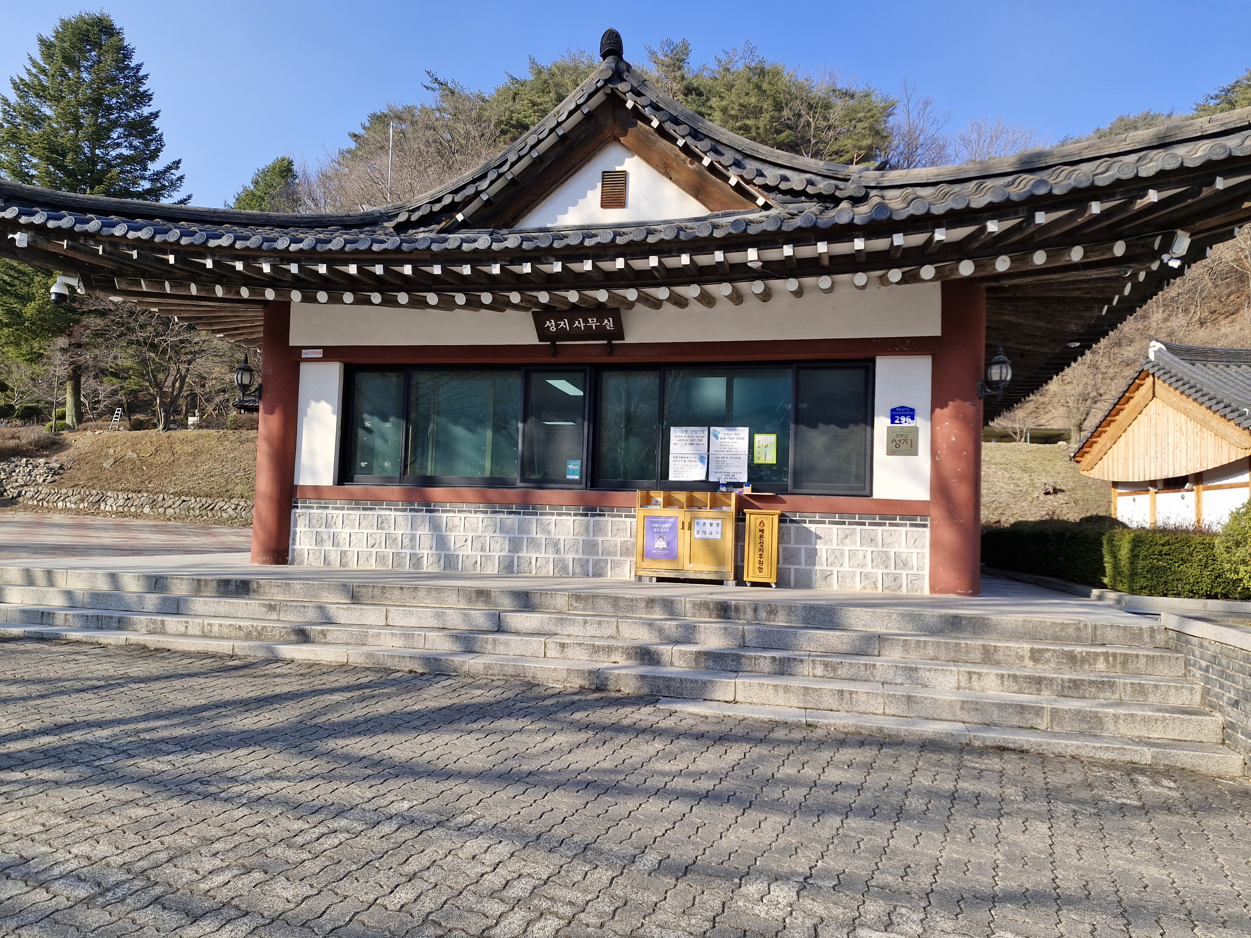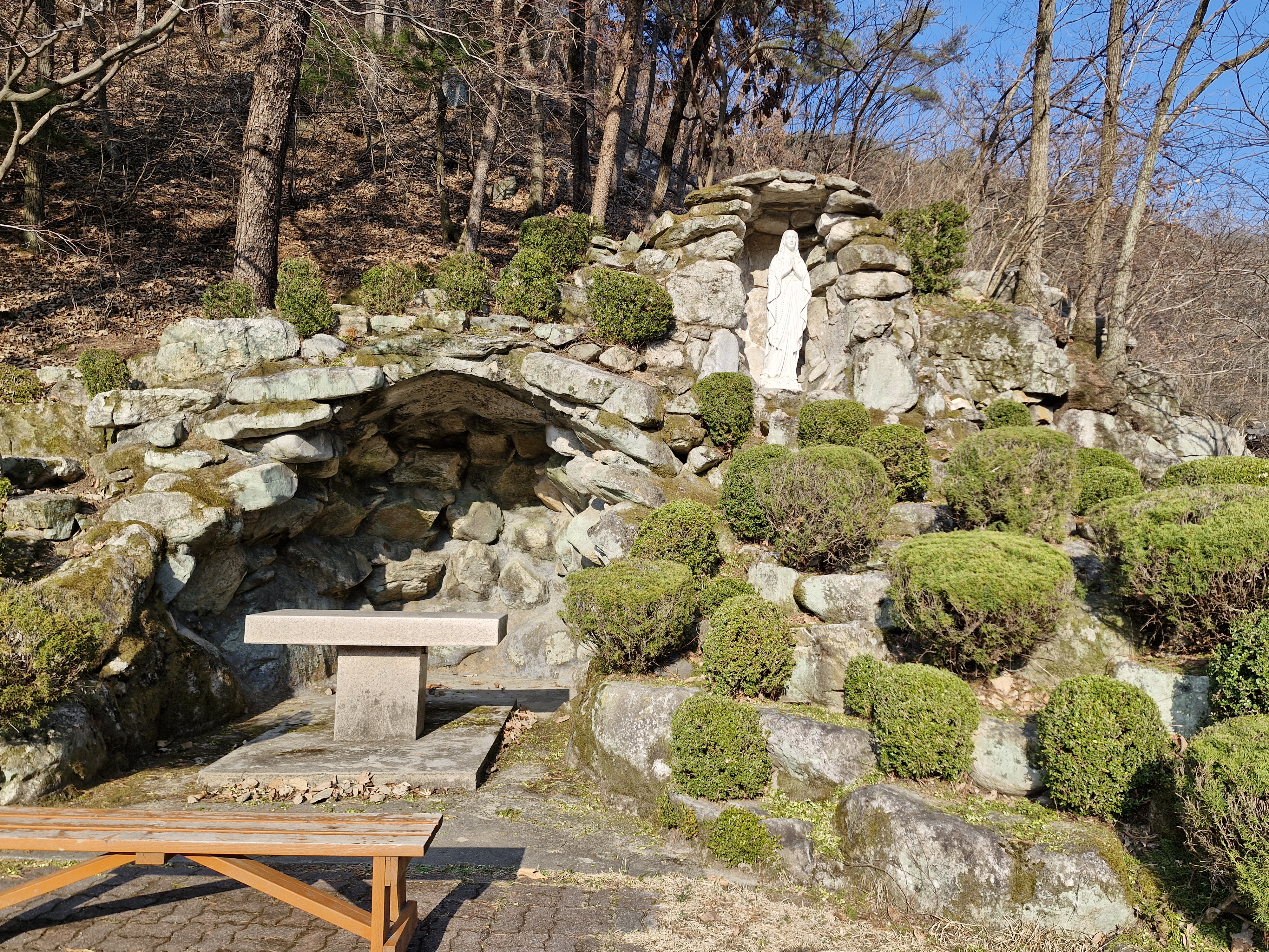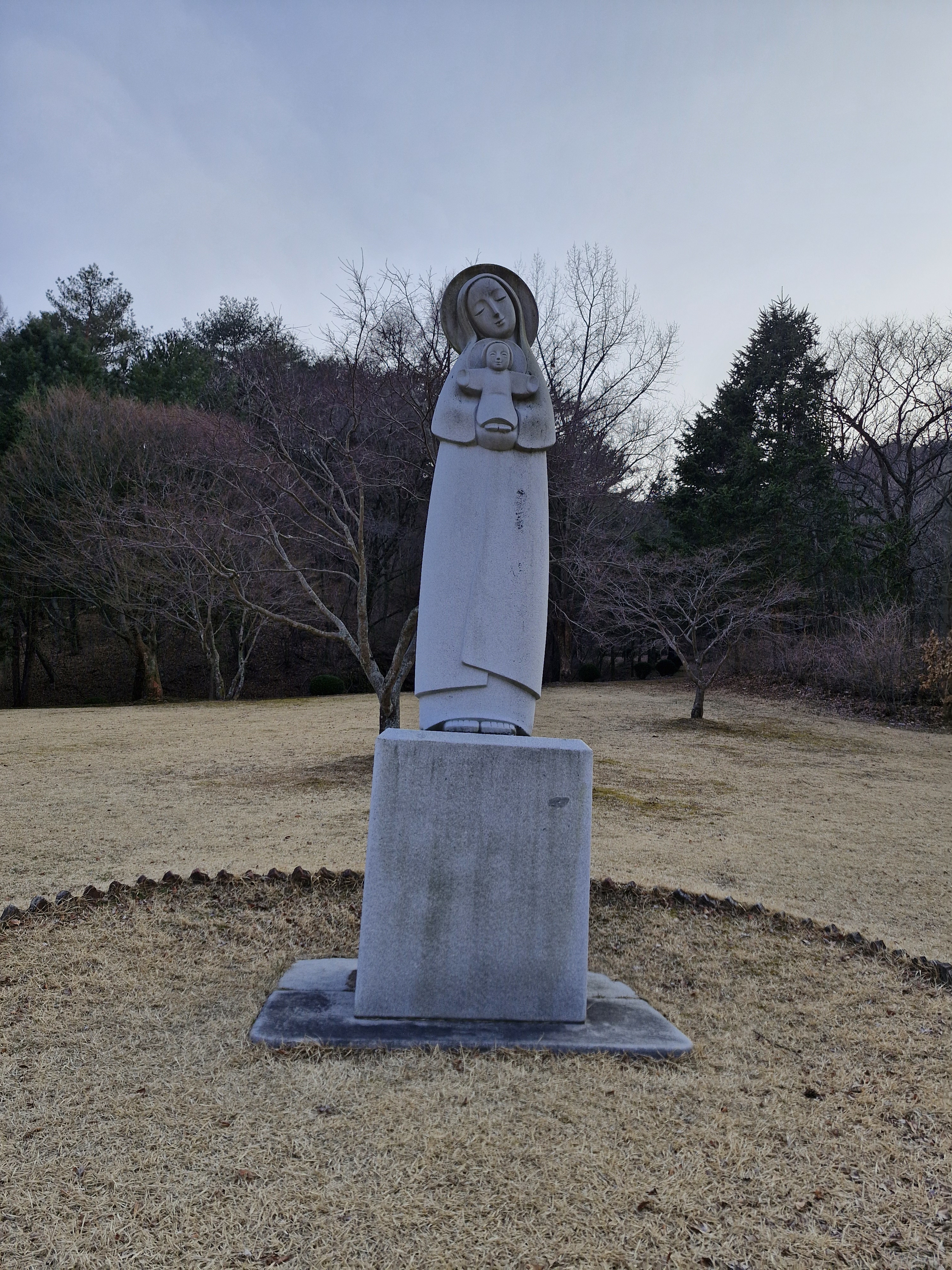 창문에는 대성당과 소성당은 동절기에는 개방이 되지 않으니 맞은편 성 요셉성당을 이용하라는 안내문이 붙어있다. 아쉽기는 하지만 이미 성 요셉성당은 갔으니 바로 이어지는 대형 잔디밭 성모동산으로 이동 했다.