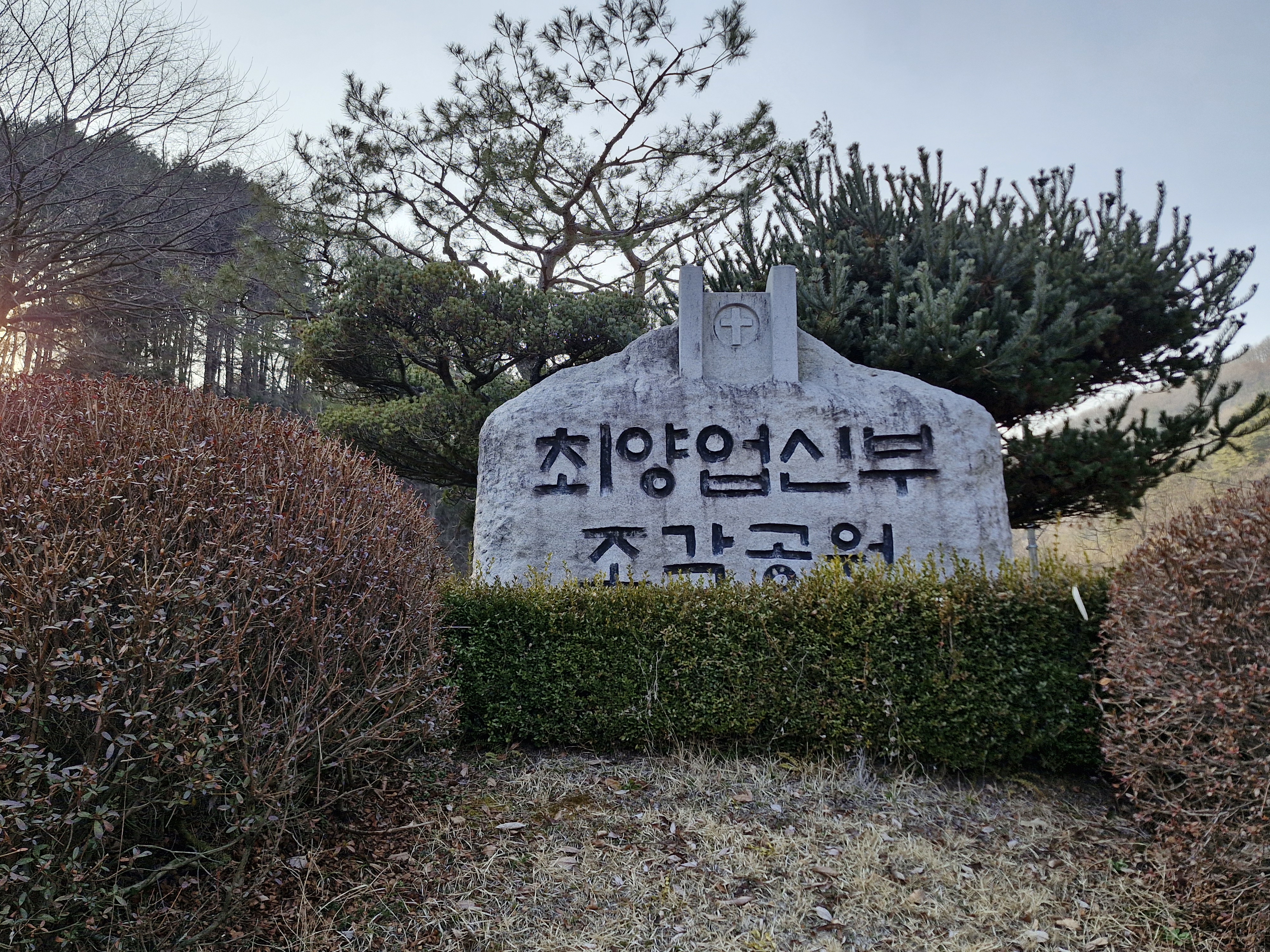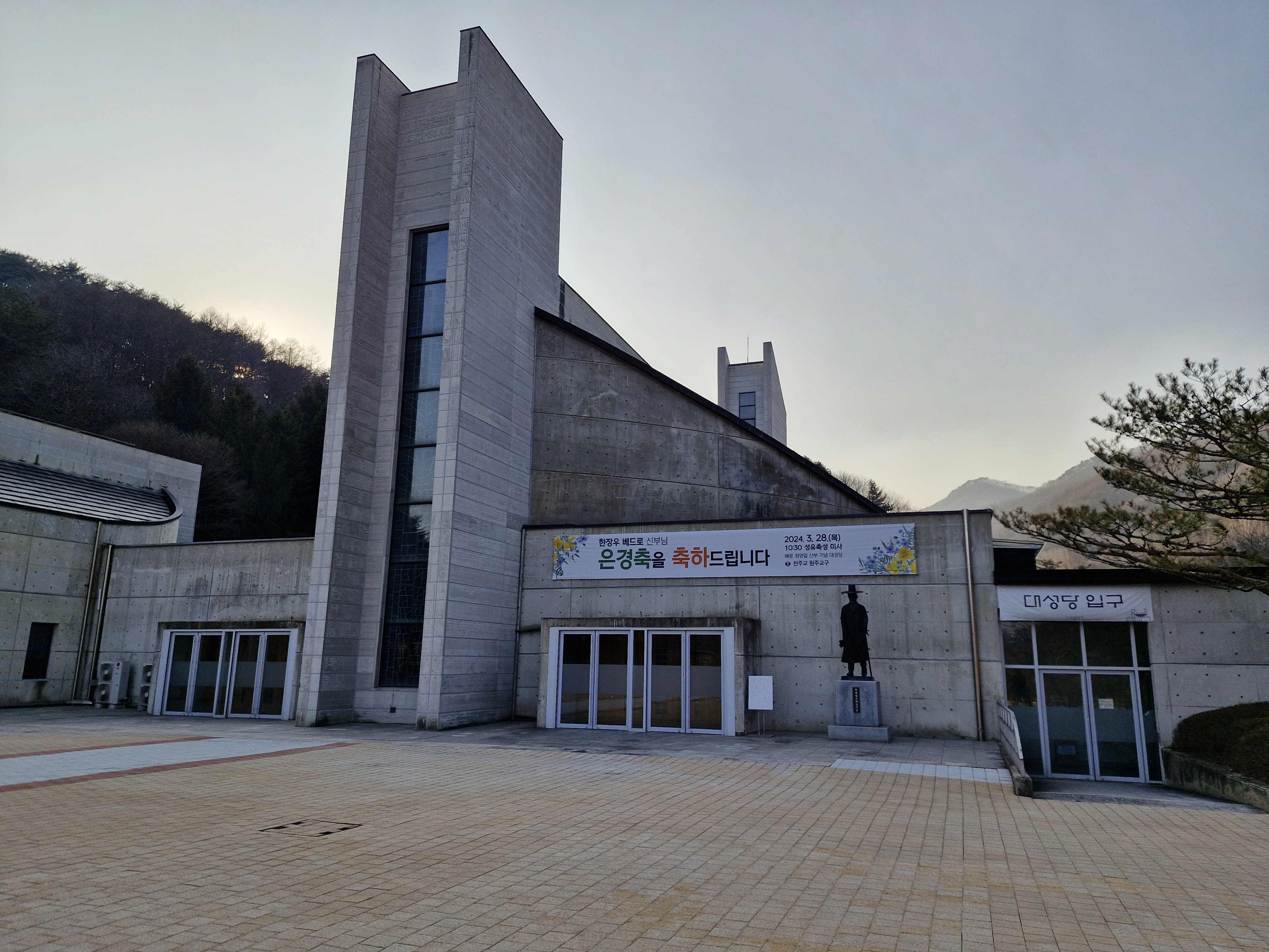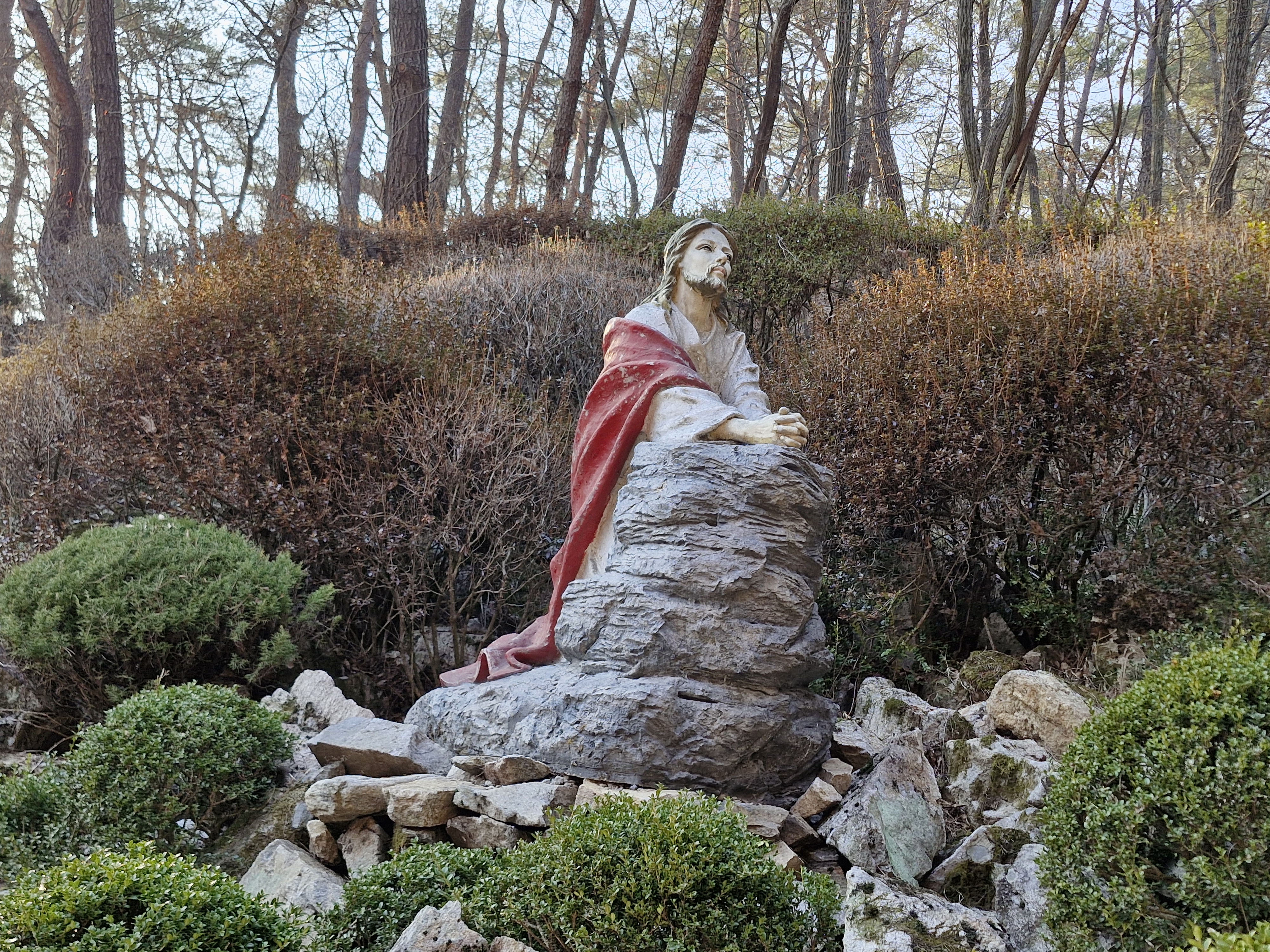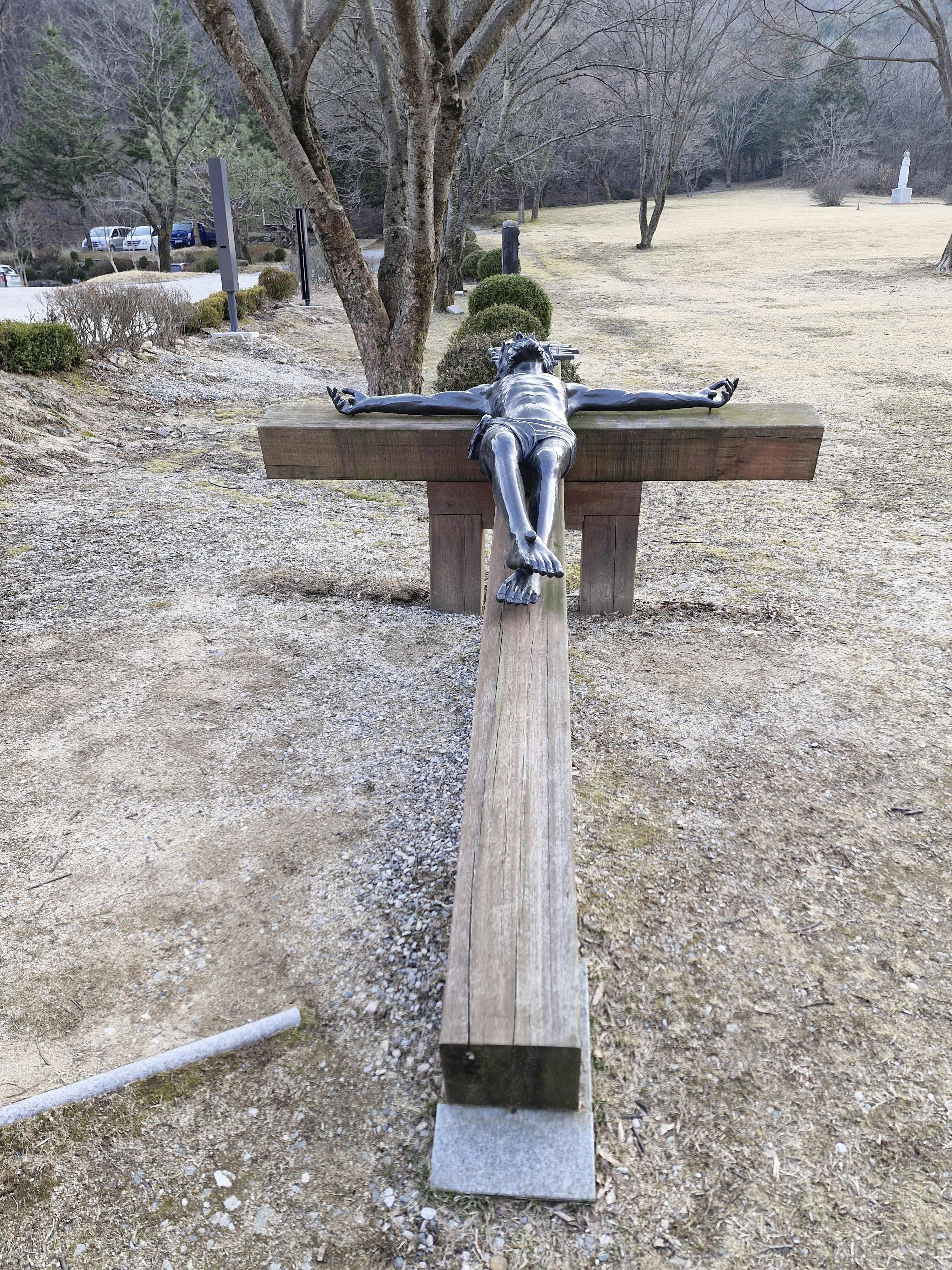 창문에는 대성당과 소성당은 동절기에는 개방이 되지 않으니 맞은편 성 요셉성당을 이용하라는 안내문이 붙어있다. 아쉽기는 하지만 이미 성 요셉성당은 갔으니 바로 이어지는 대형 잔디밭 성모동산으로 이동 했다.