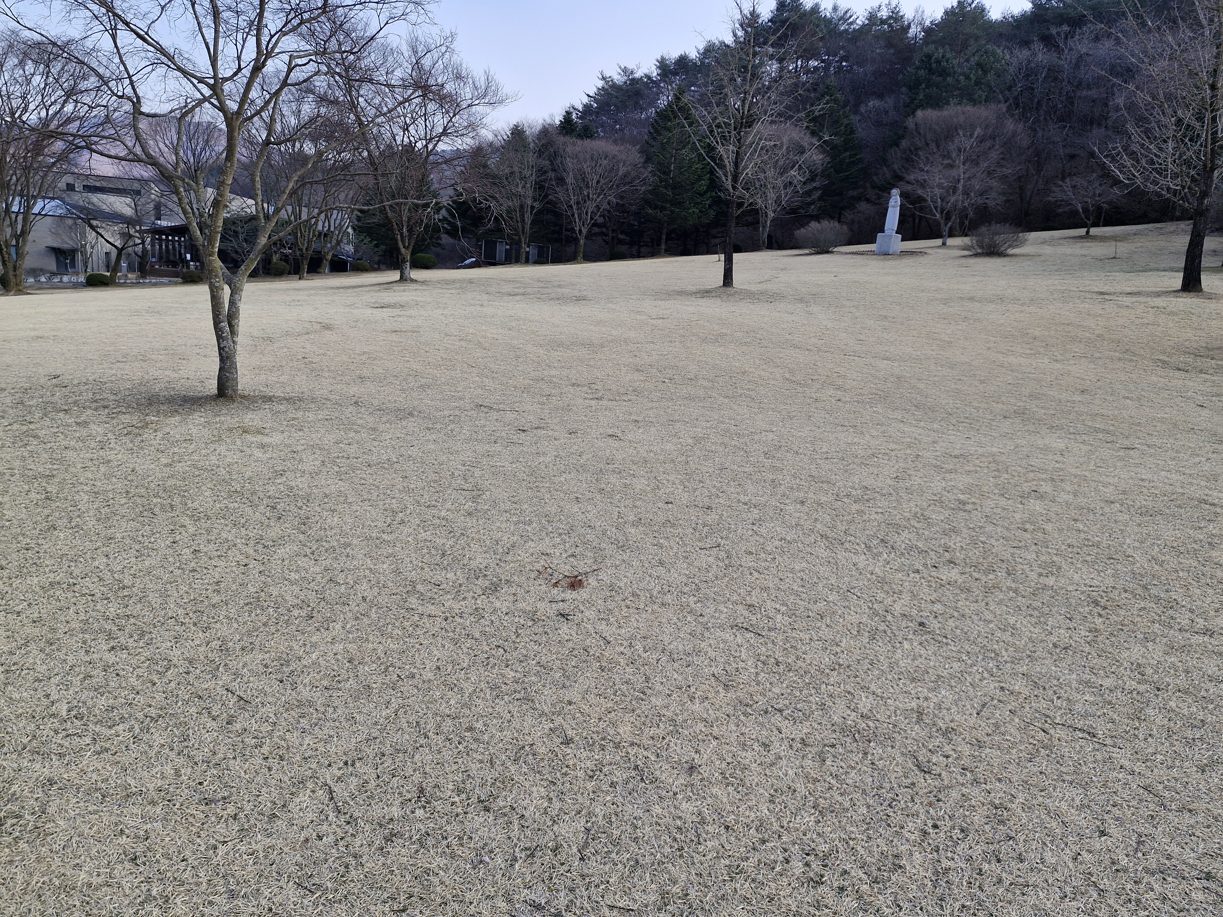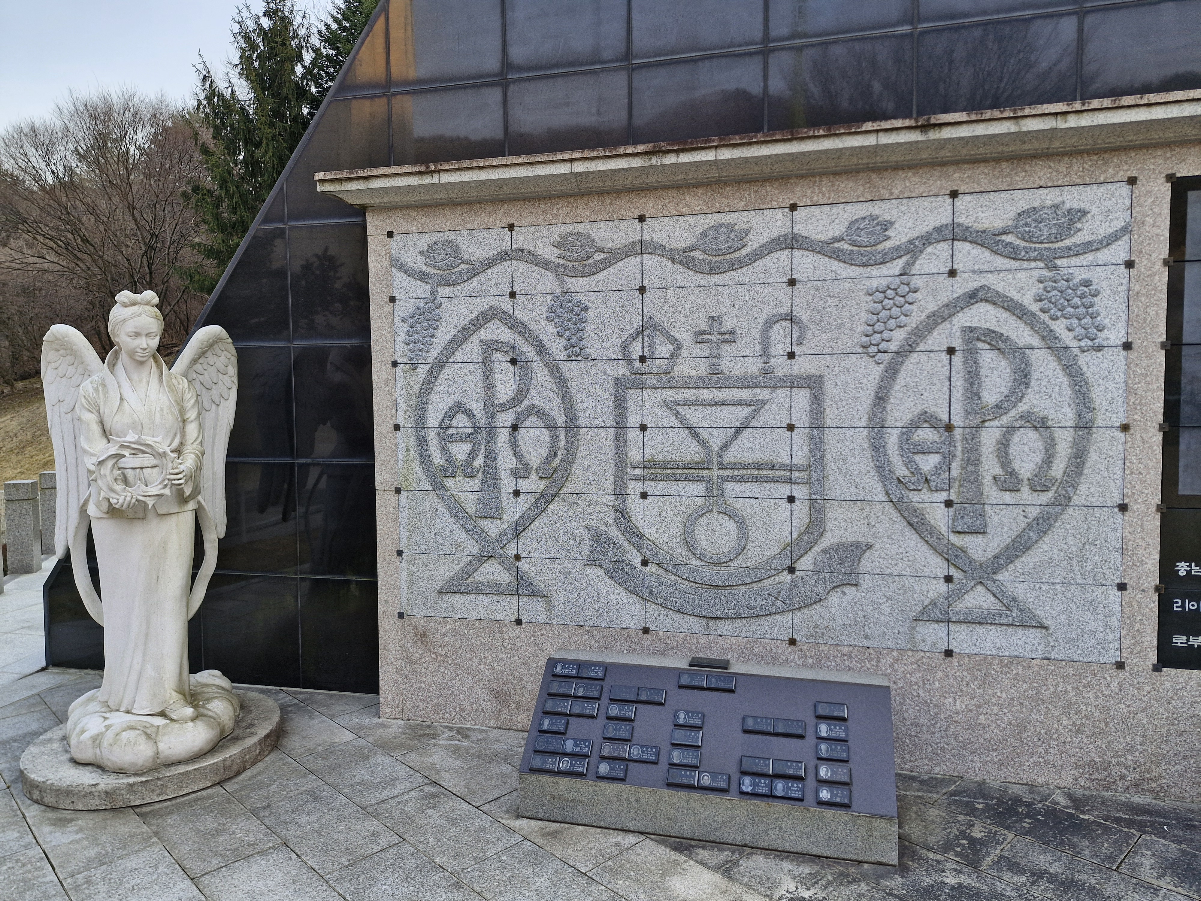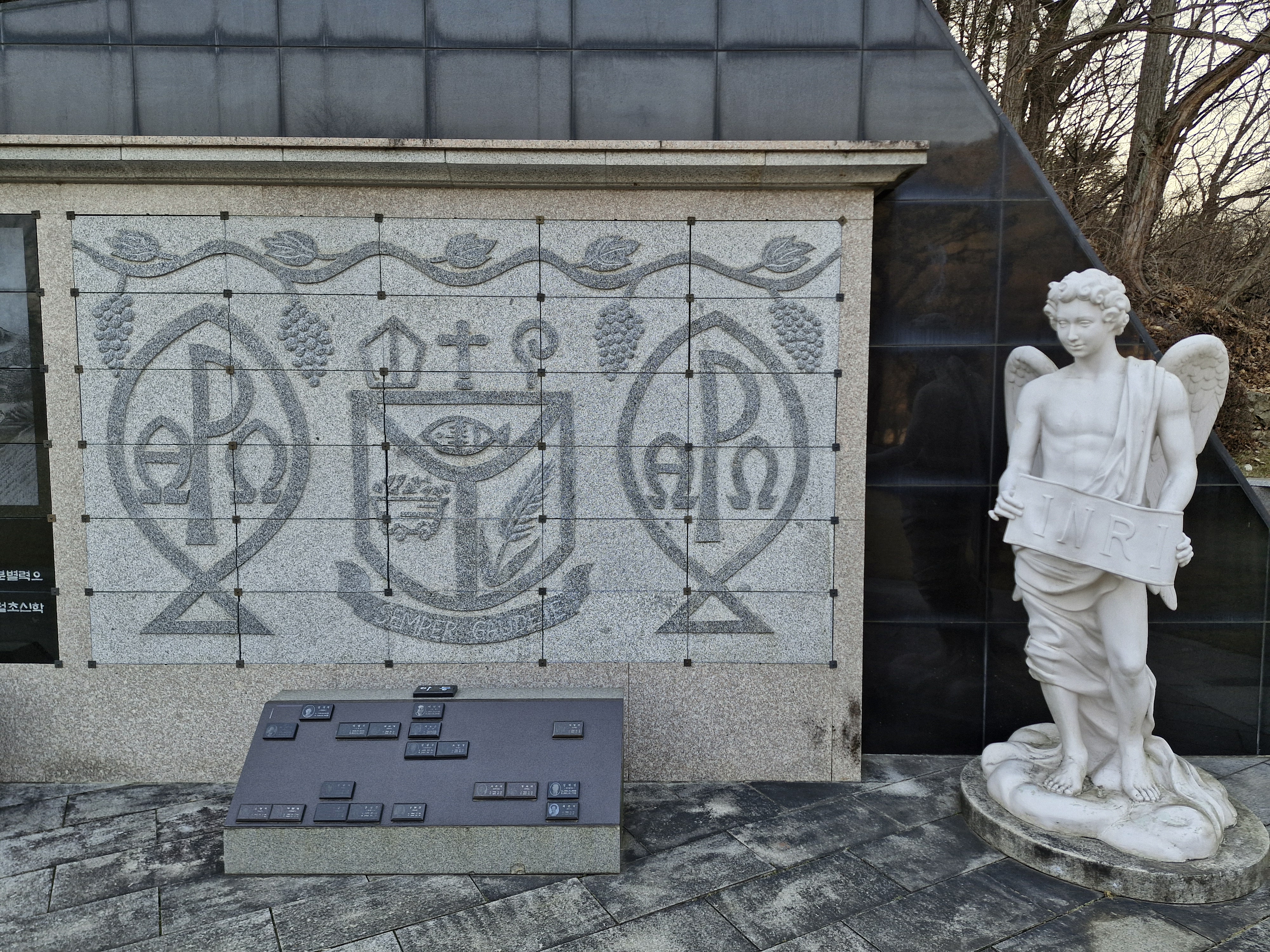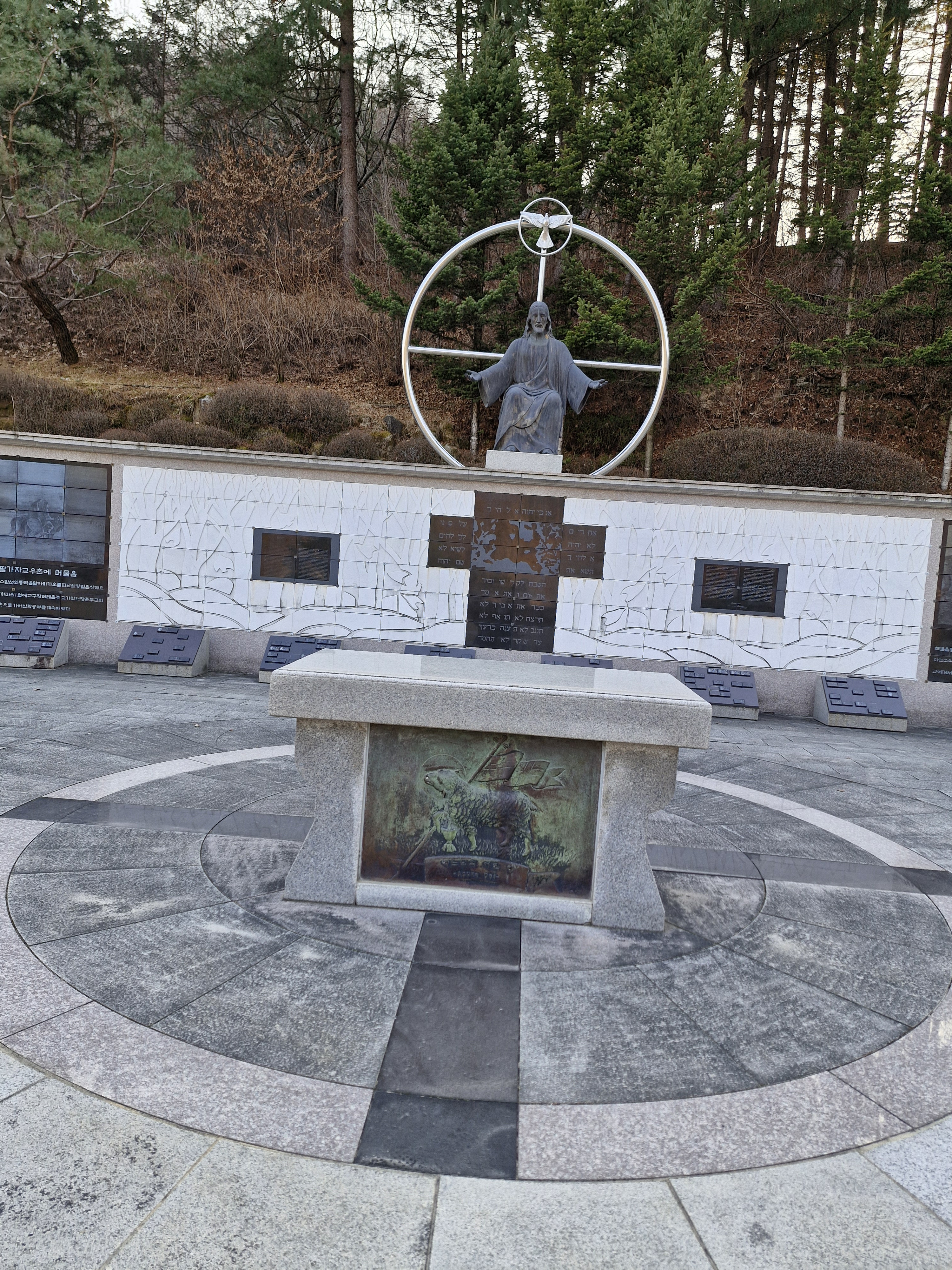 창문에는 대성당과 소성당은 동절기에는 개방이 되지 않으니 맞은편 성 요셉성당을 이용하라는 안내문이 붙어있다. 아쉽기는 하지만 이미 성 요셉성당은 갔으니 바로 이어지는 대형 잔디밭 성모동산으로 이동 했다.