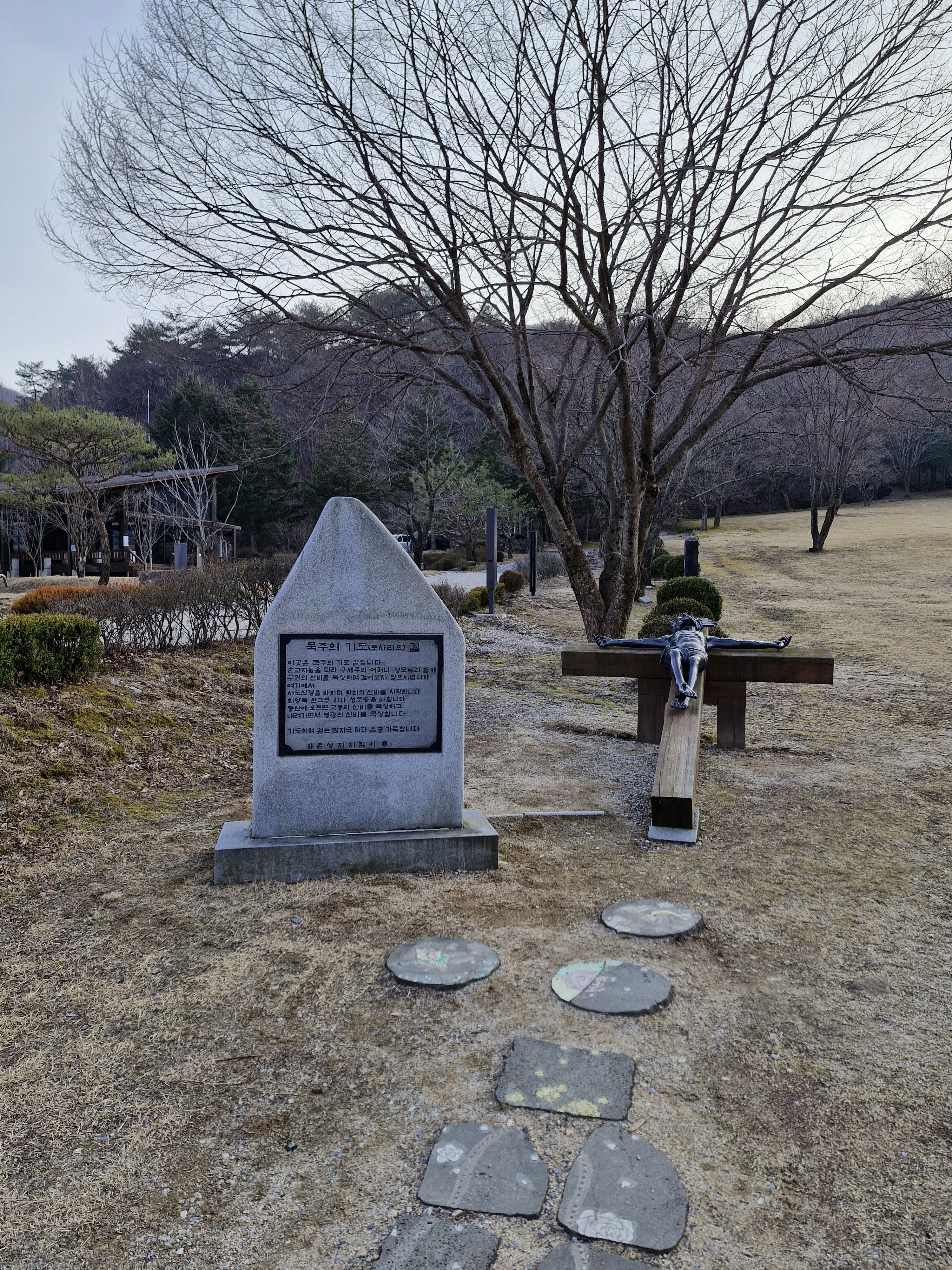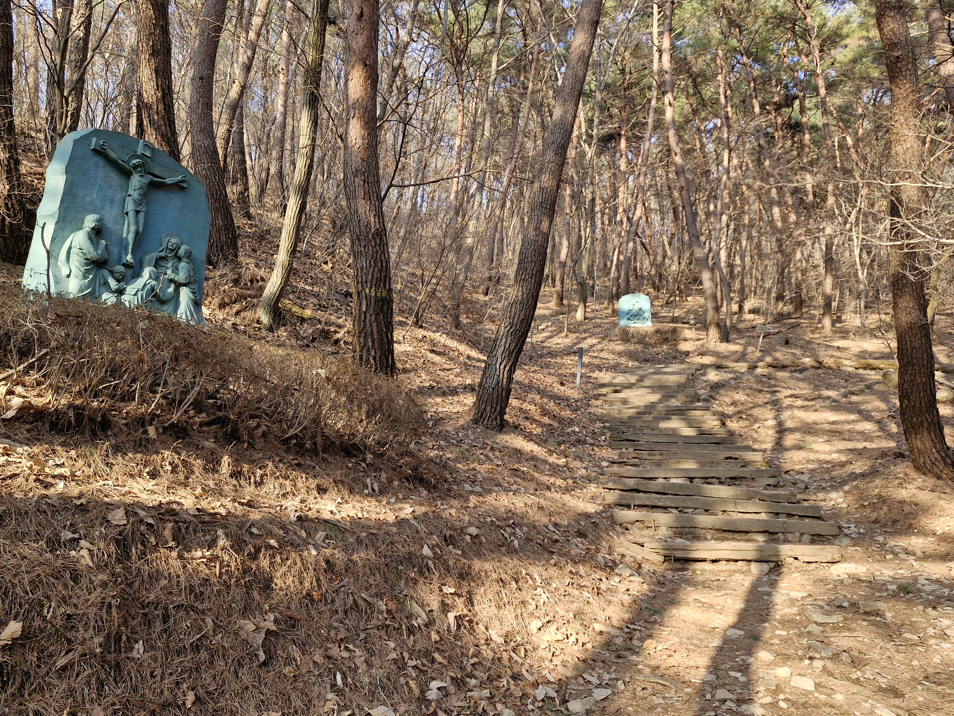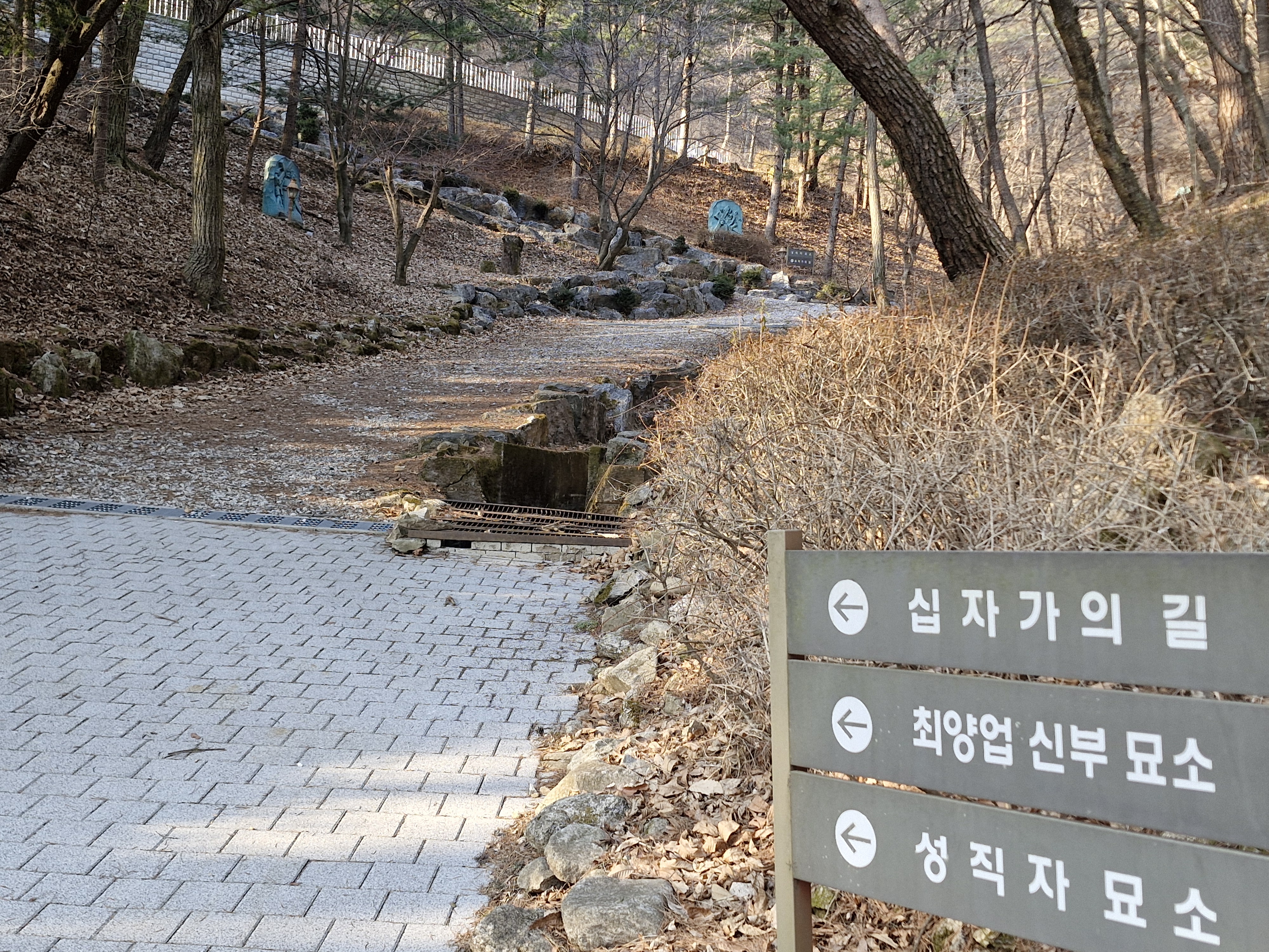 묘소 가는 길은 바로 올라가는 길과 십자가의 길을 거쳐 돌아가는 길이 있다. 일단 바로 올라가서 내려올 때는 십자가의 길을 내려오기로 한다. 처음엔 시멘트블록 길이었으나 조금 오르니 흙길이어서 편했다. 하지만 경사가 심해 오르기에 그리 쉬운 길은 아니었다. 가쁜 숨을 몰아쉬어가며 부지런히 걸었다.