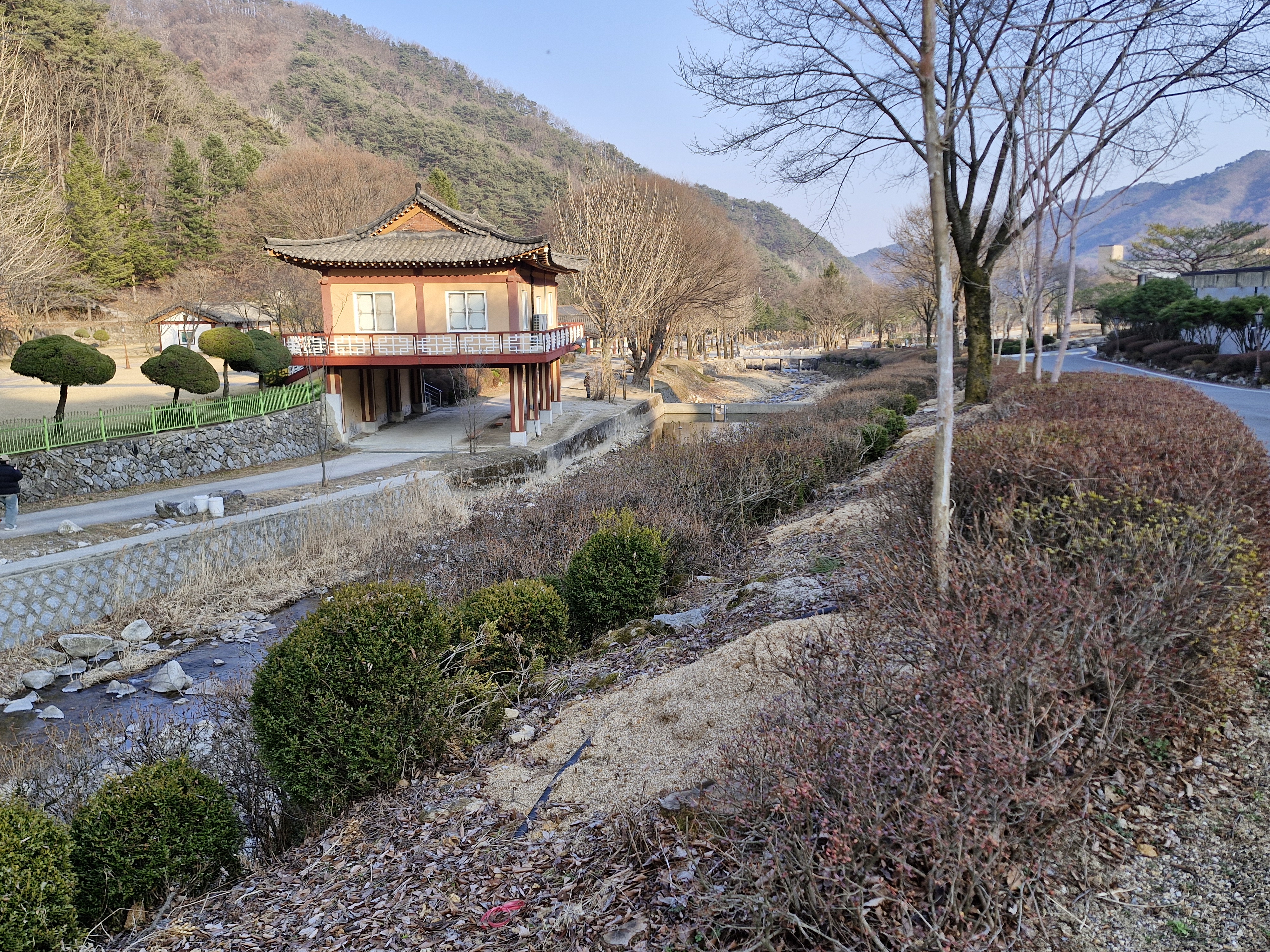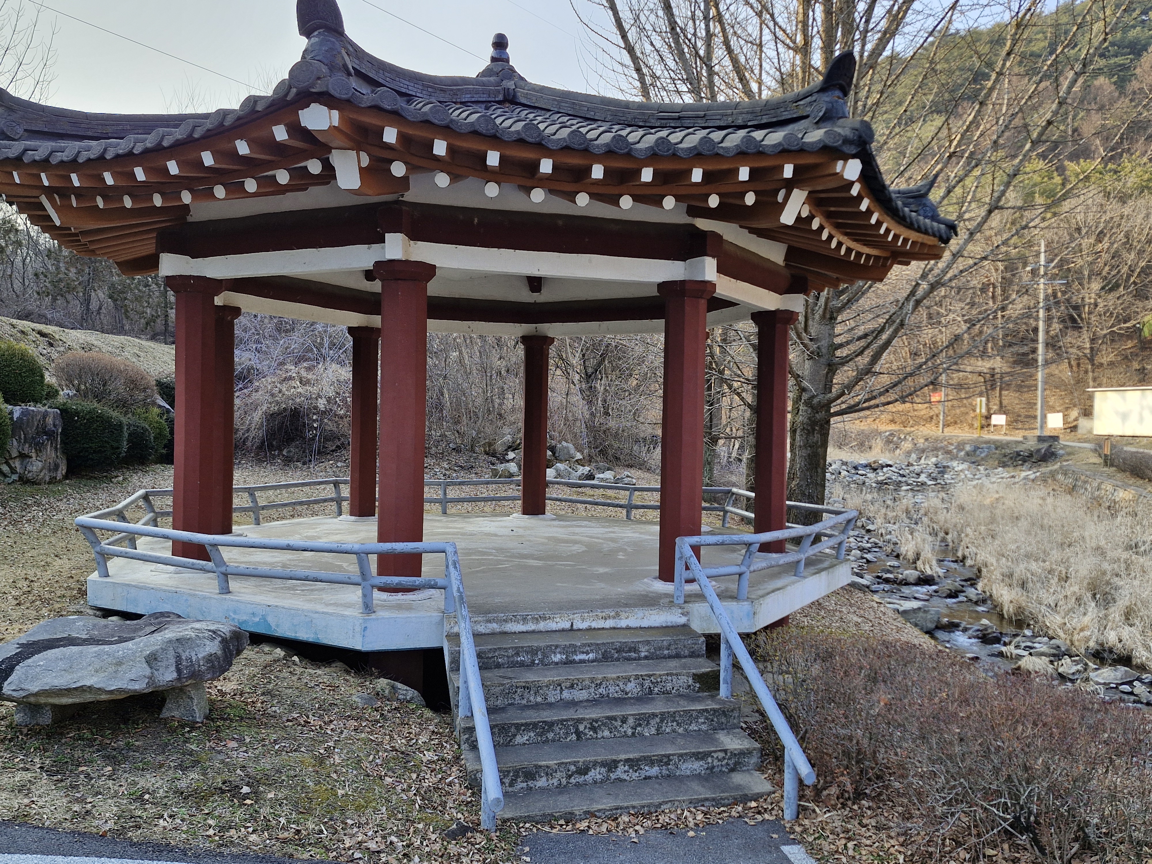 순교자들의 집에서 나와 작은 다리를 건너 성지 왼쪽지역으로 간다. 다리를 건너면 쉼터 육모정자가 있고 계곡 아래를 바라보니 조금 전에 갔던 성 요셉 성당이 시냇가에 서서 통행인에게 1층을 양보하며 서 있다.