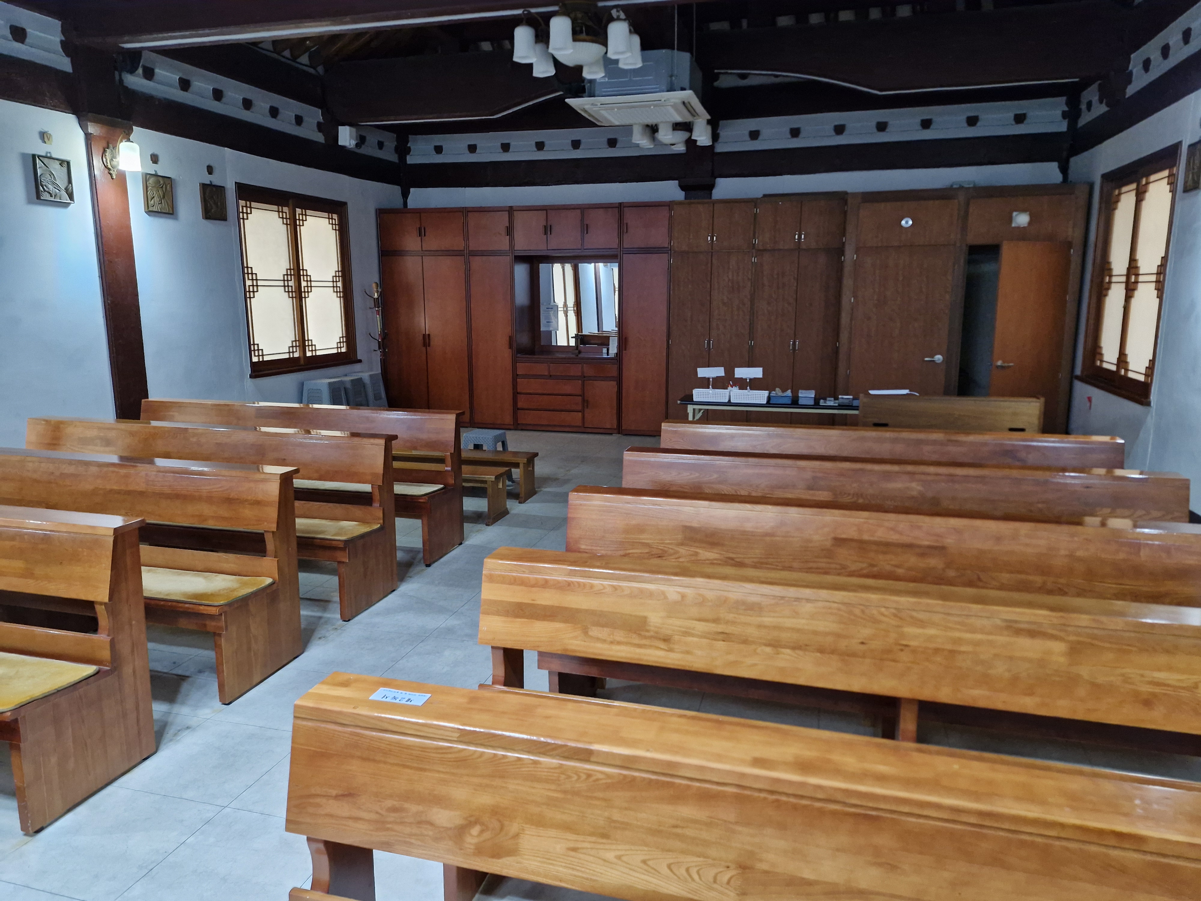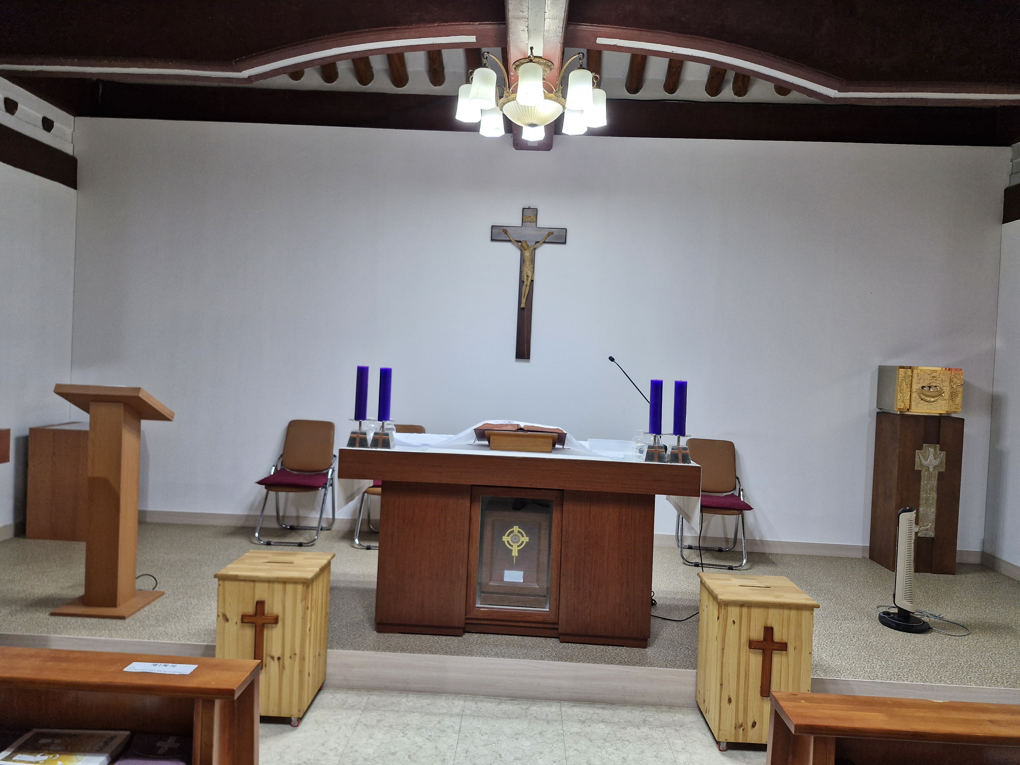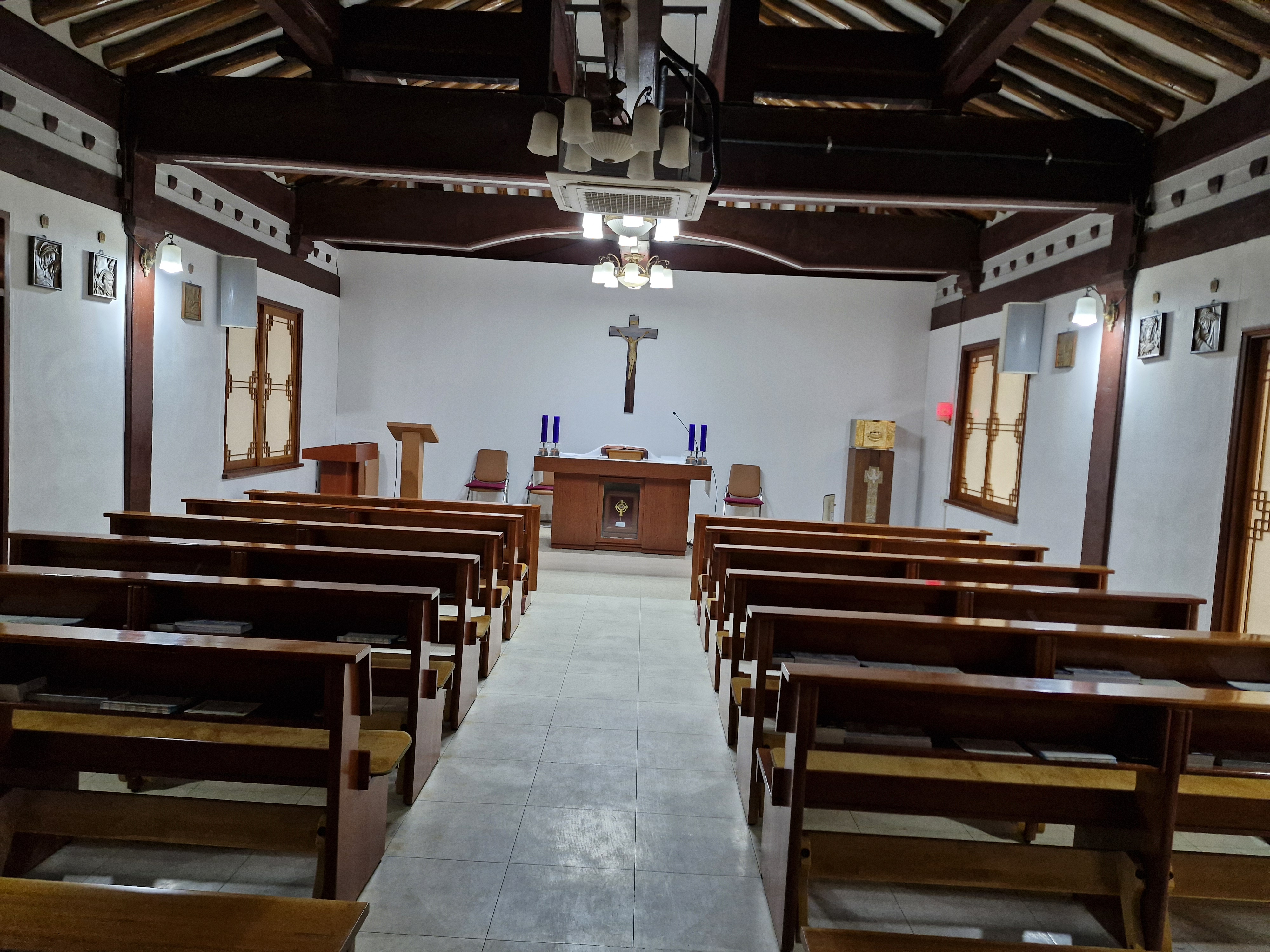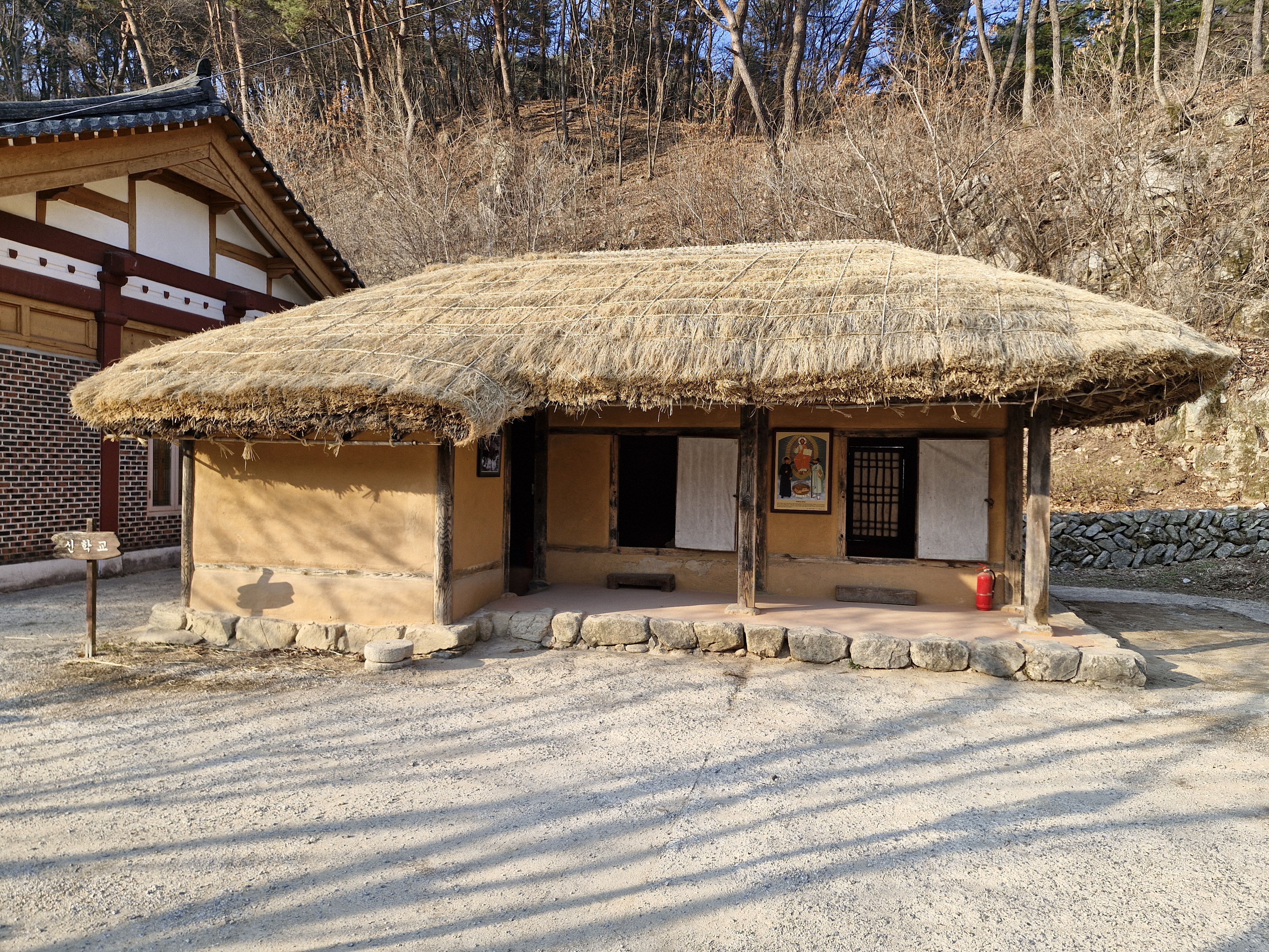 옛 신학교 건물은 한국 전쟁 시 소실되었으며 현 건물은 충청북도의 지원으로 건립된 것인데 그야말로 초가삼간이다. 이곳이 교실도 되고 교무실도 되고 사제관도 된다.