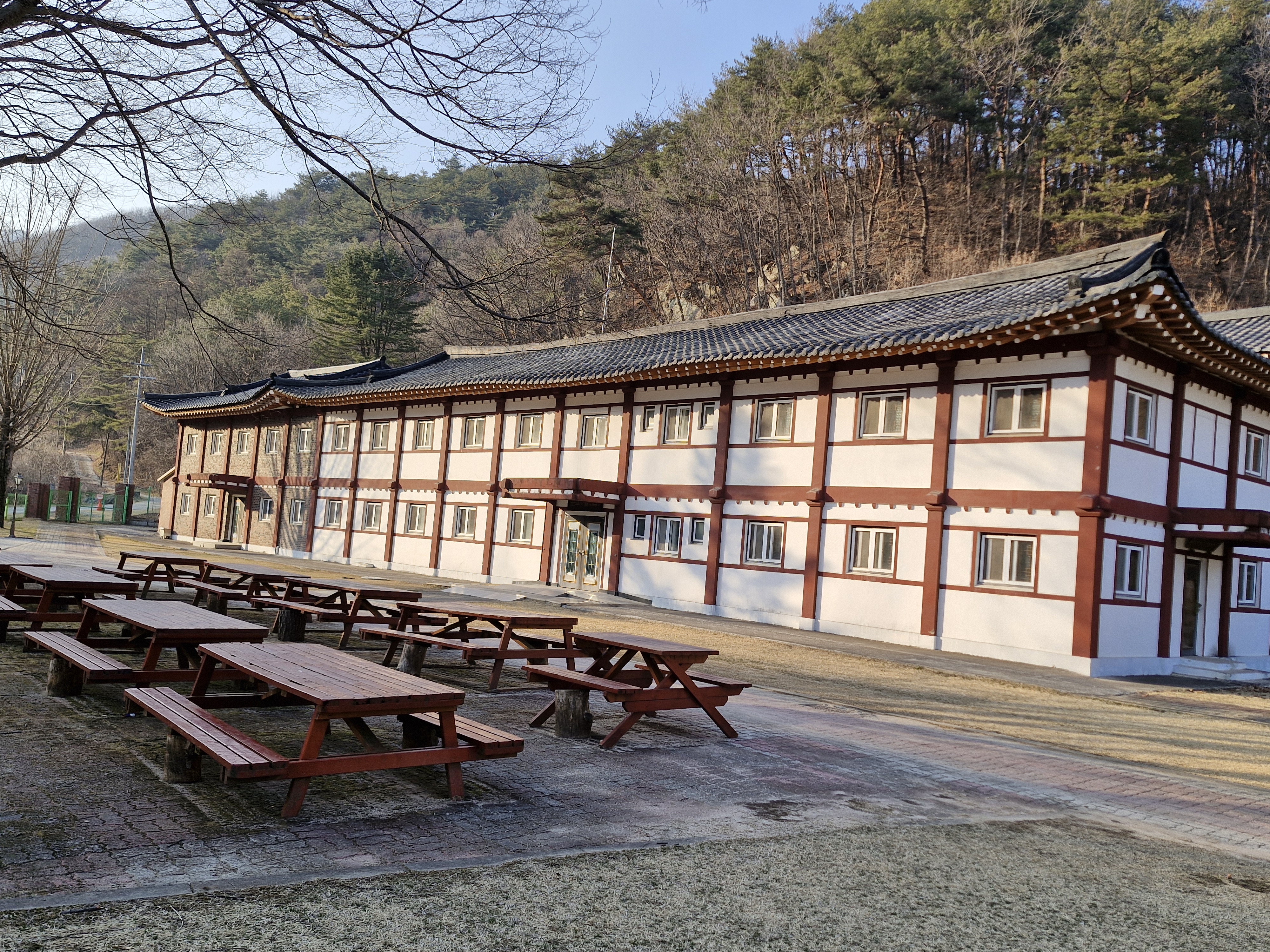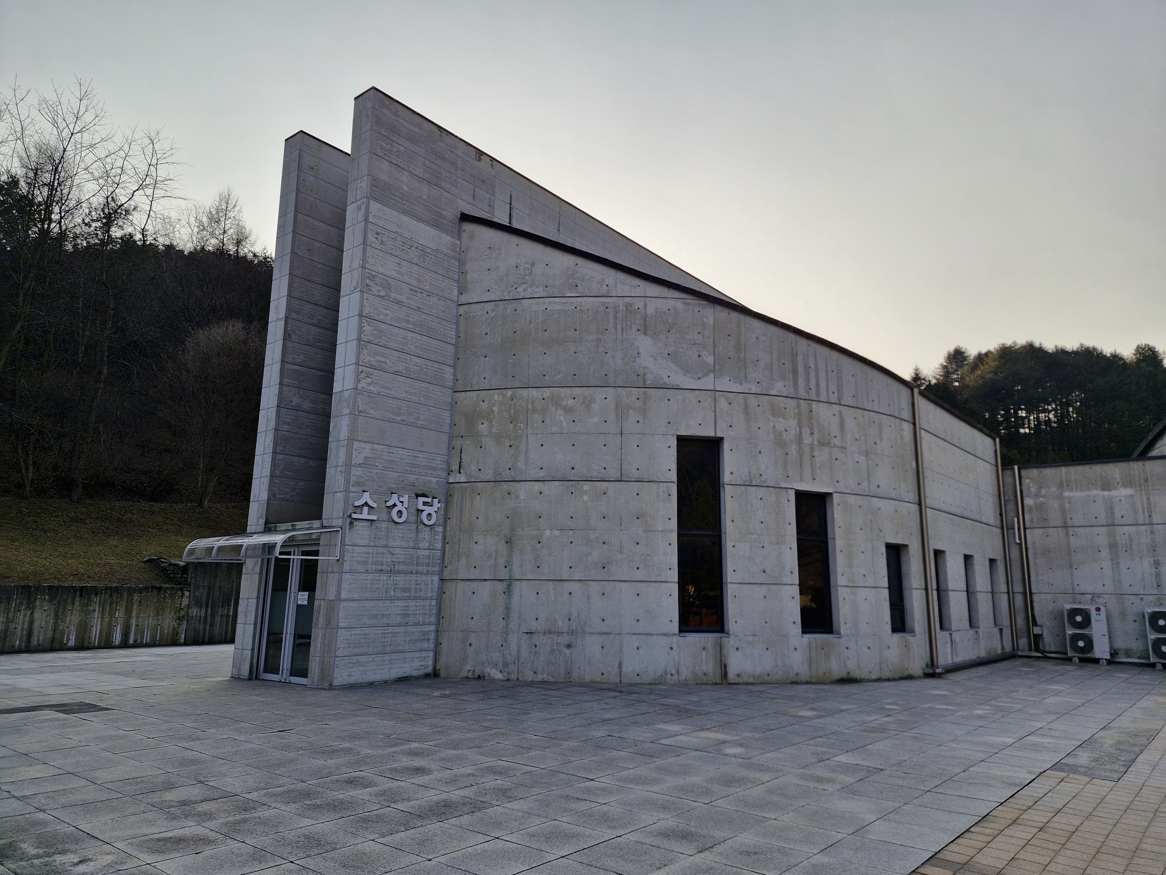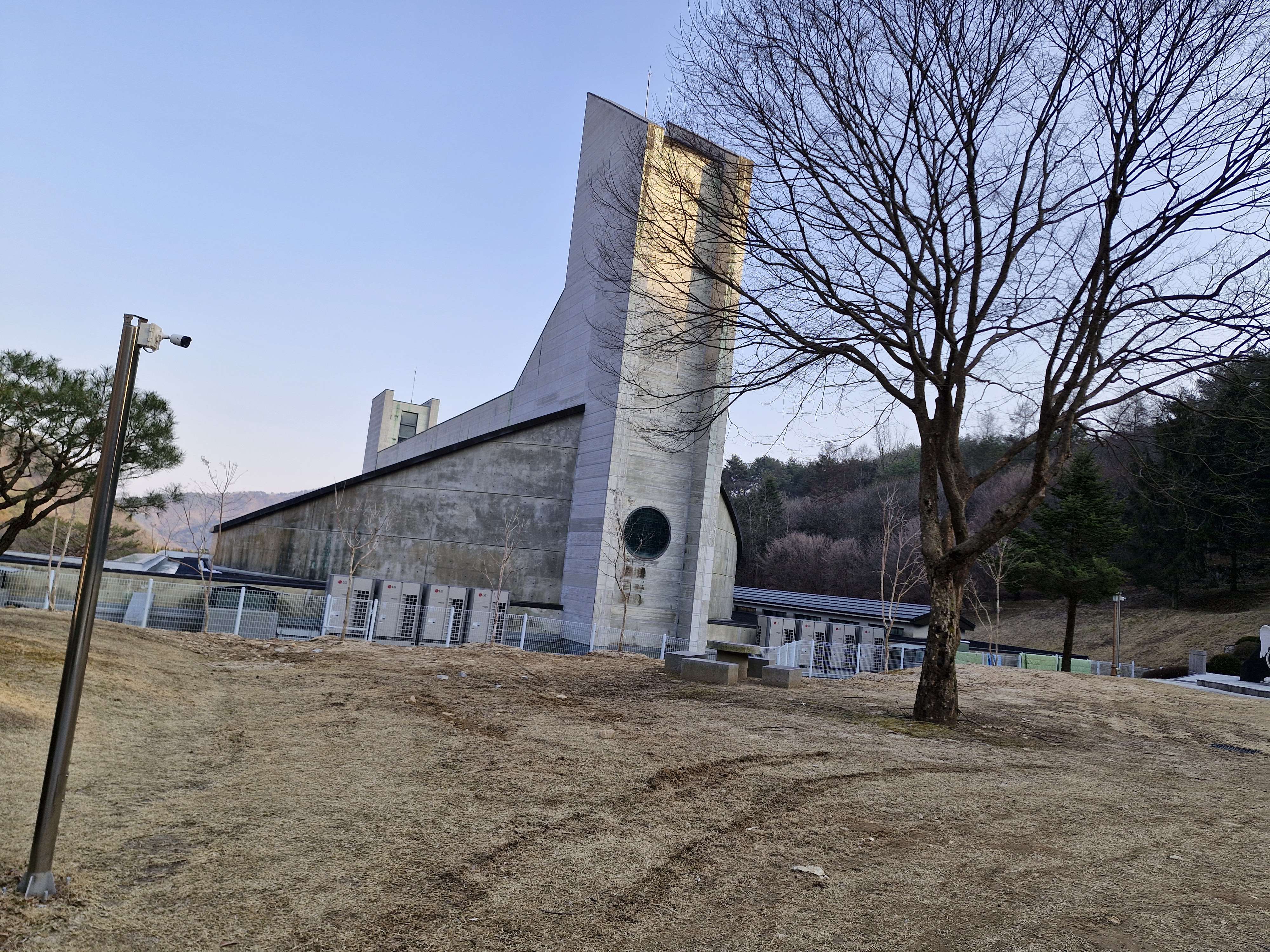 가장 먼저 나타나는 시설은 2020년에 봉헌된 피정시설인 은총의 성모 마리아 기도학교이다.