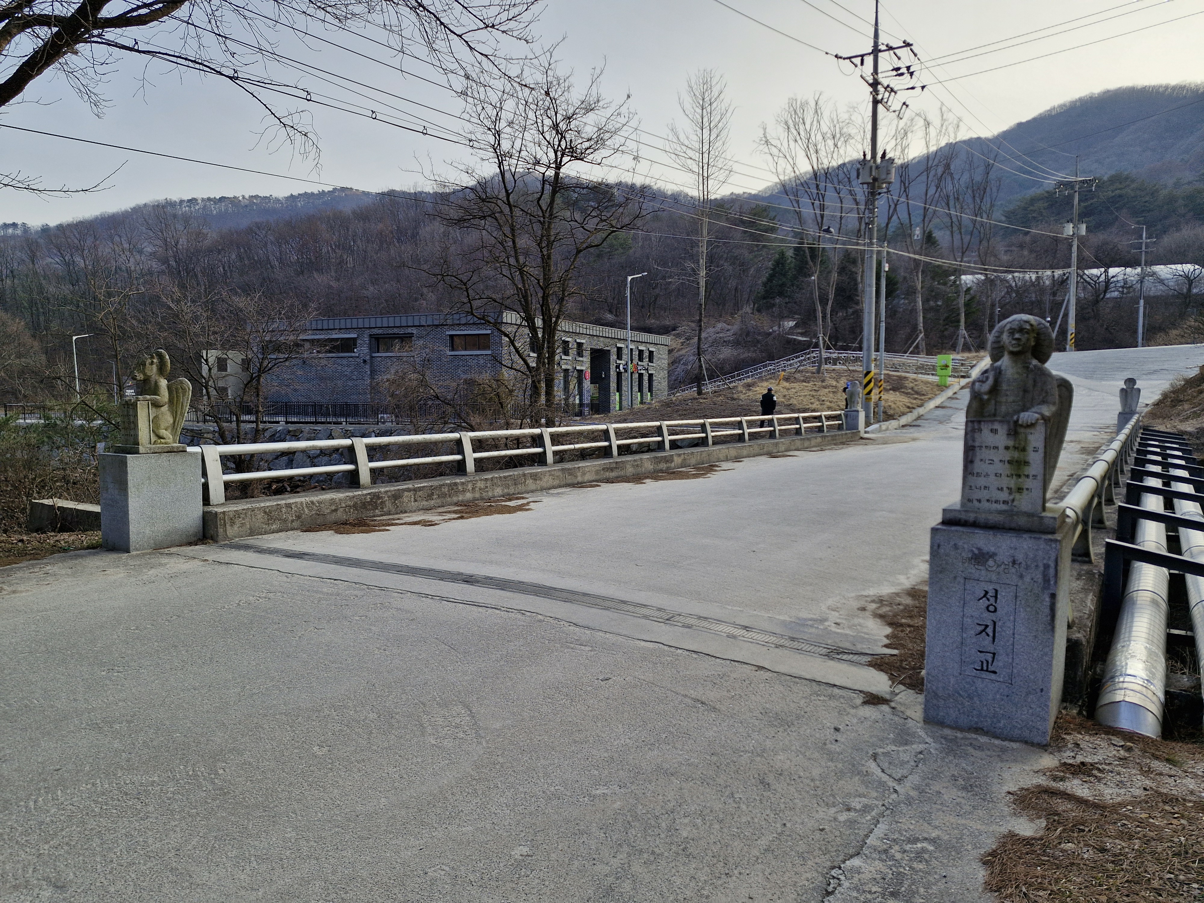 성지 왼쪽 지역 오른쪽 지역을 이어주는 다리인데 그냥 건너가다가 자세히 보니 그냥 다리가 아니었다. 다리의 좌우 난간에는 각각 7개의 난간석이 있고 각기 칠극(七克)과 칠성사(七聖事)가 새겨져 있다.