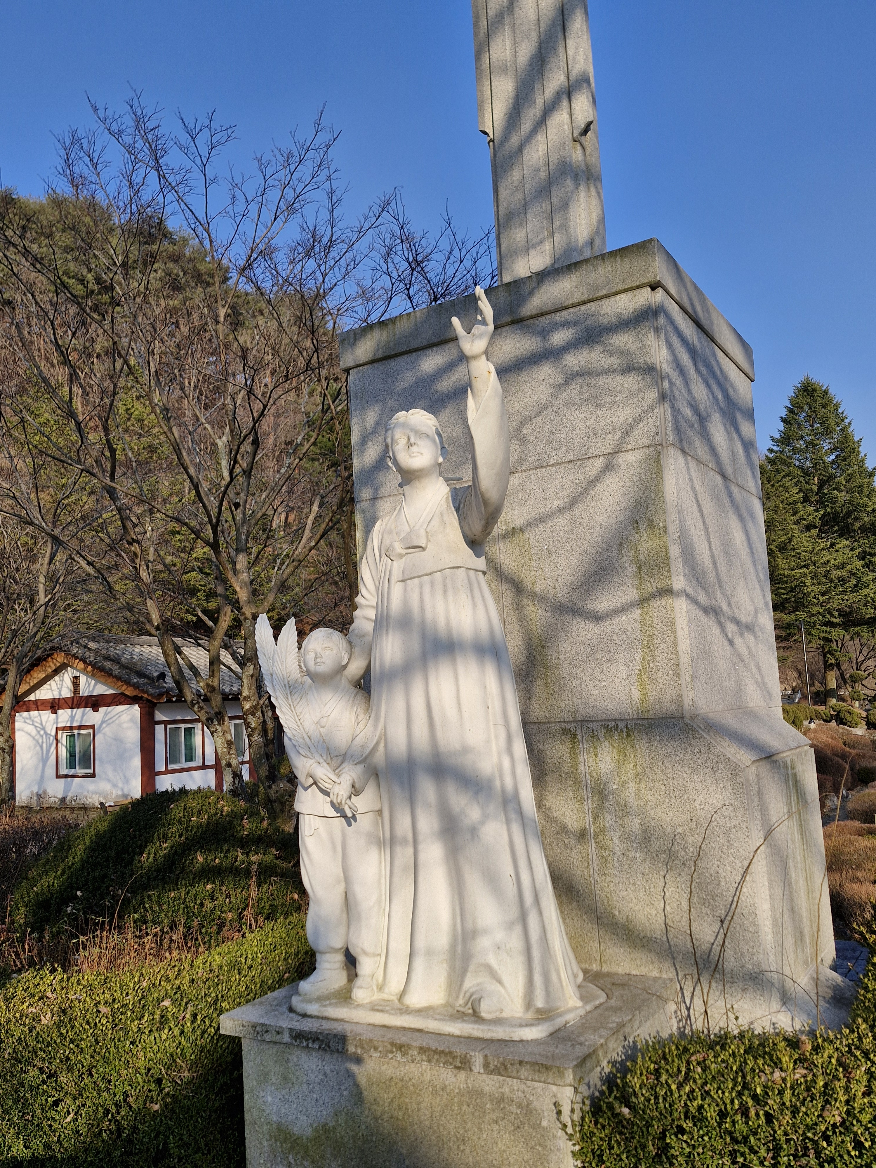 황사영 순교현양탑 앞길 건너편에 있다. 대형 십자가형 예수님상 아래 성모님께서 순교자를 상징하는 팔마가지를 든 어린이와 와 함께 순교자의 영혼이 하늘로 오르는 모습을 보고 계신다.