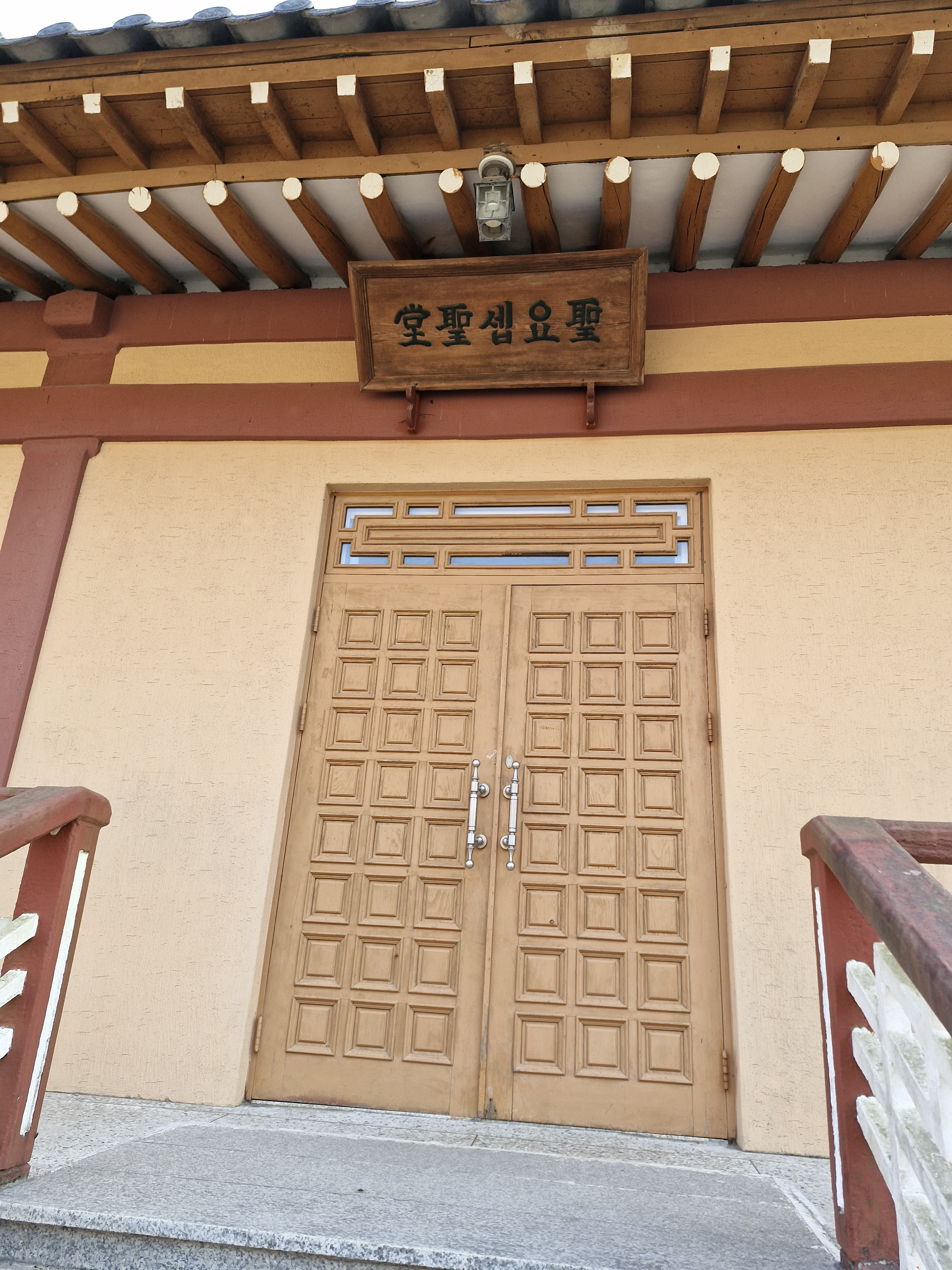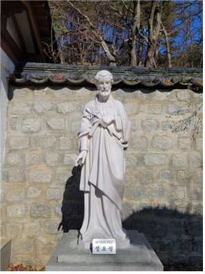 성 요셉 성당은 지은지 오래 된 작은 성당이지만 최양업 기념성당이 지어지기 전까지는 이 성당이 주성전이었다. 지금은 순례자 전문성당이다. ‘순례자 미사 장소’라고 커다랗게 현수막이 붙었다. 건물 뒤에서 보면 2층 다락집의 형태로 1층은 차가 통행하는 찻길이다.
