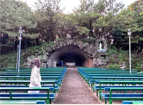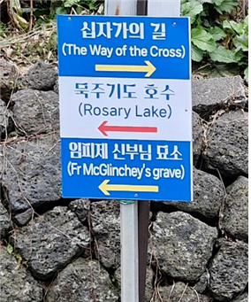 다시 걸음을 옮기니 갈래길이 나타난다. 왼쪽으로 가면 임피제(맥그린치) 신부님 묘소와 묵주기도 호수가 있고 오른쪽으로 십자가의 길이 이어진다. 일단 십자가의 길을 가기 위해 오른쪽으로 향했다.