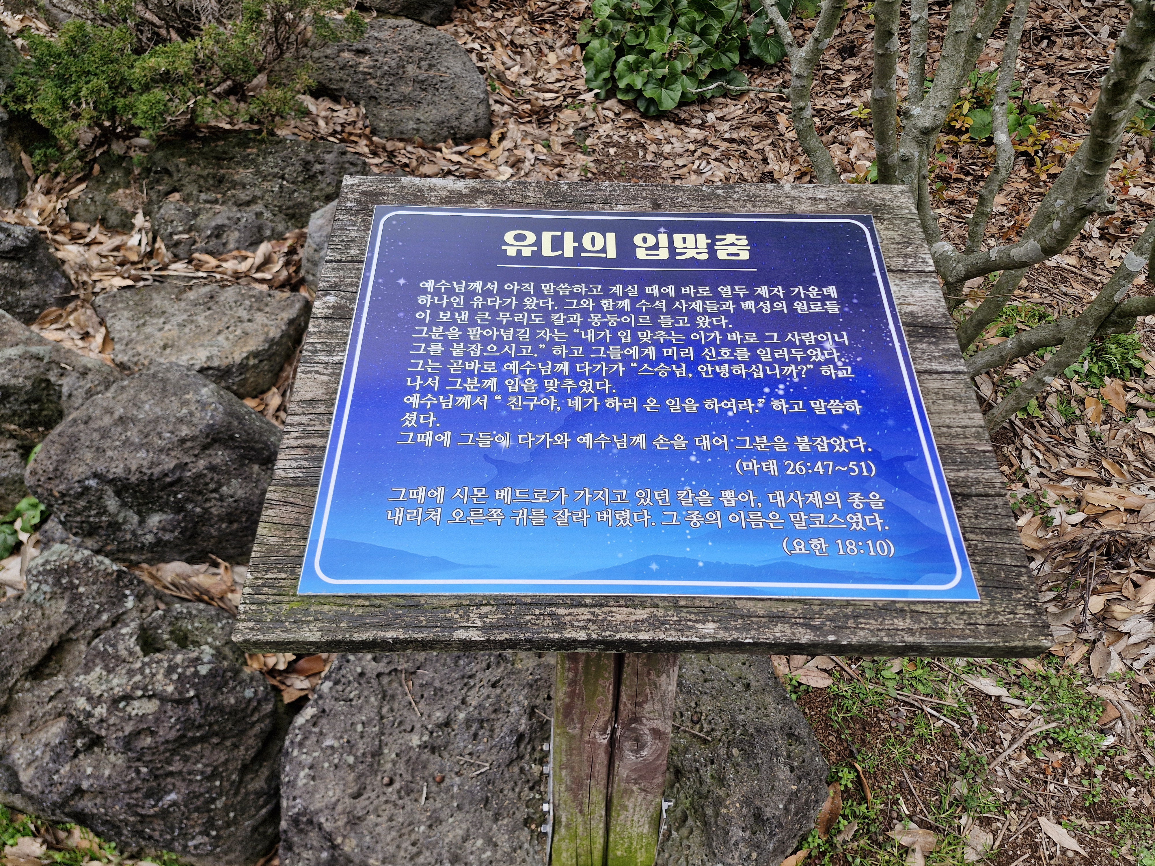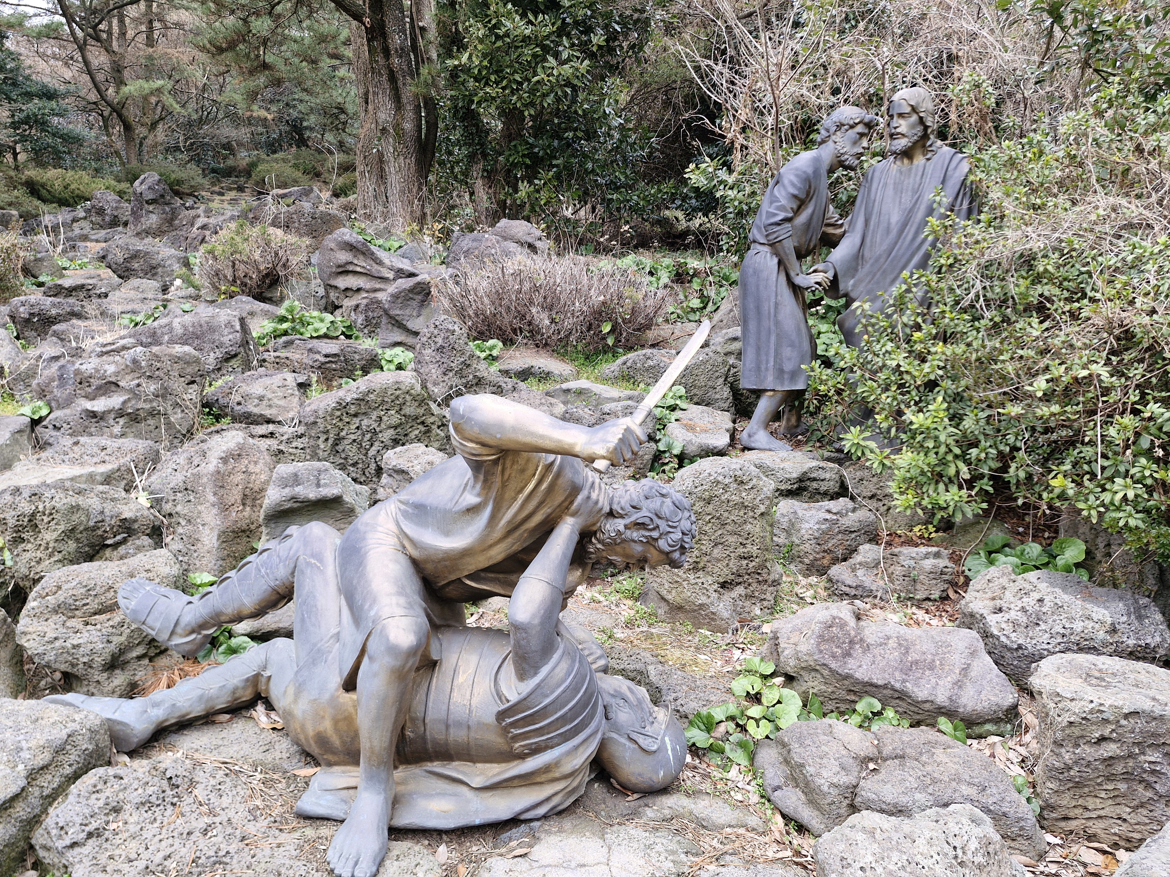 예수님의 탄생부터 최후의 만찬까지 예수님의 공생활 중 12개의 주요 사건을 테마로 조성된 조각 공원이다. 모두 실물 크기로 제작하여 엄청난 조각느낌이 들며 미로처럼 길이 나있어 최소의 공간에 많은 조각상을 효과적으로 보여주고 있다. 군데군데 동백꽃과 아열대성 푸른 나무들로 둘려져 있어 지루한 느낌이 들지 않는다.