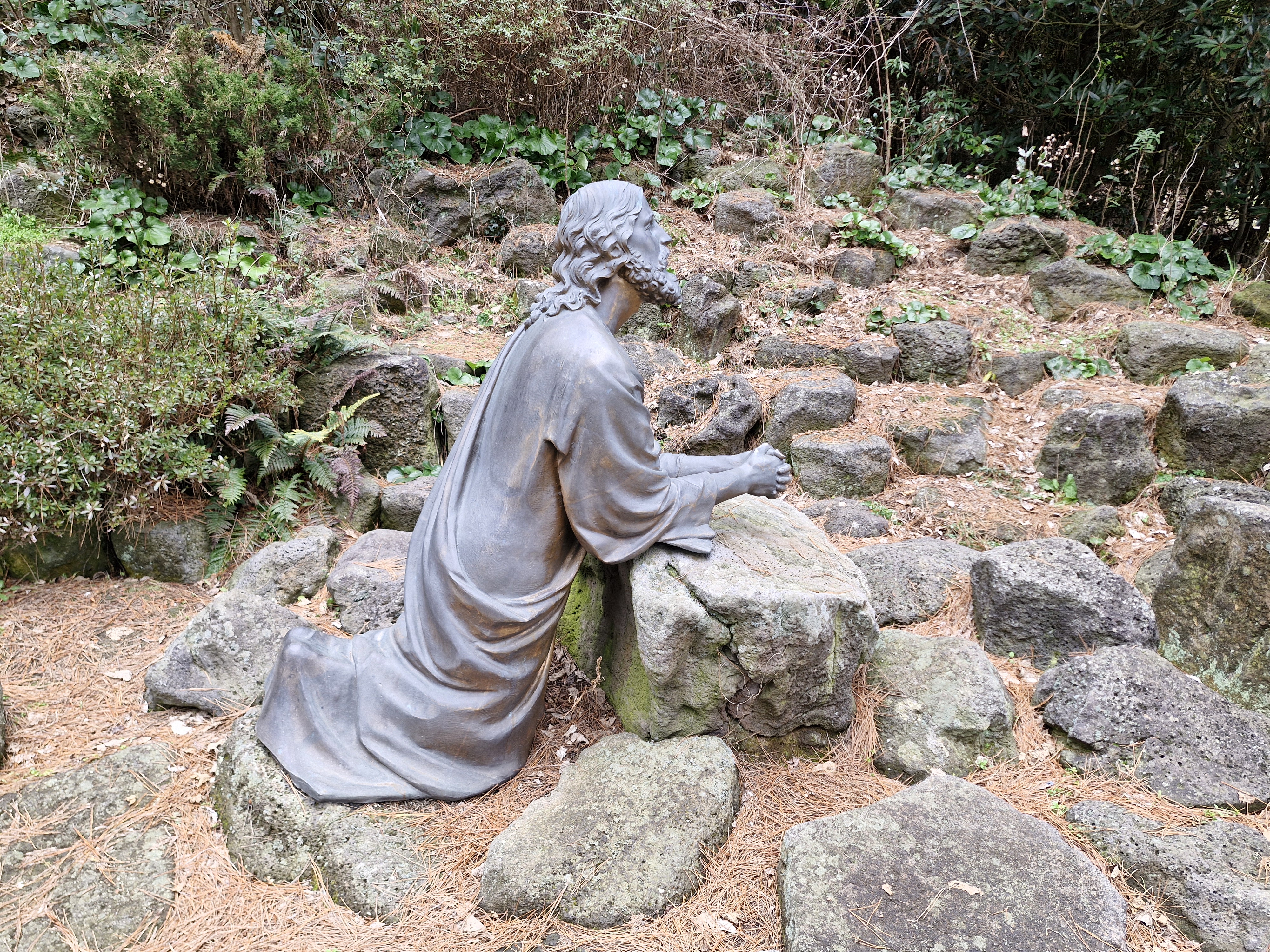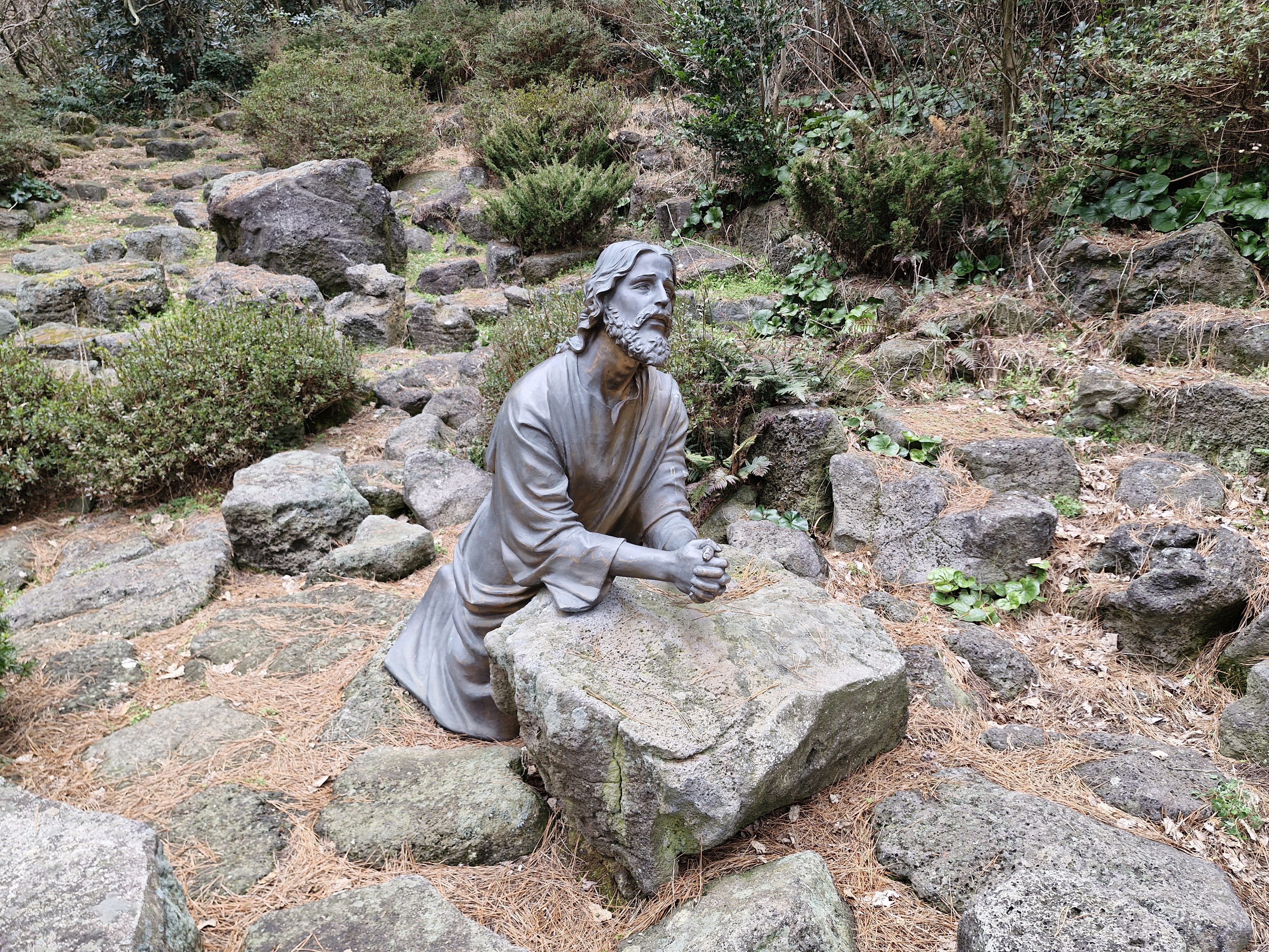 야외 성당 앞 십자가의 길 시작 지점에 있다. 예수님께서는 잡히시기 직전 올리브산 겟세마니에서 제자들에게 유혹에 빠지지 않도록 기도하라고 하시고 혼자 떨어져서 무릎을 꿇고 기도하셨다.