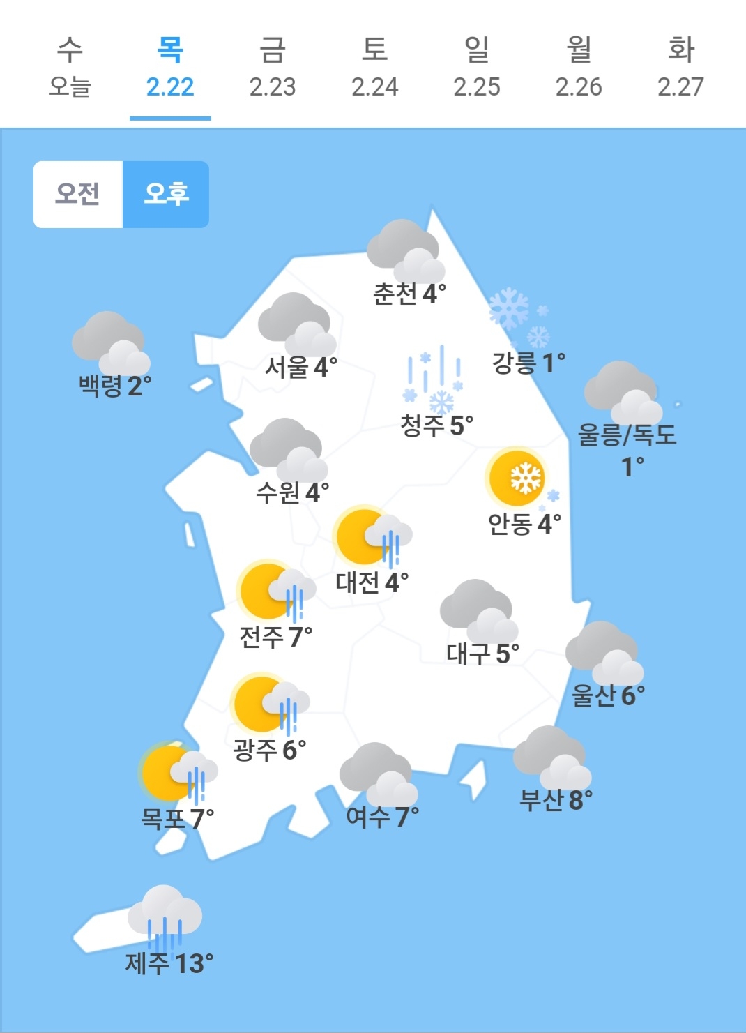 ♡ 2월22일 목요일 날씨 ♡