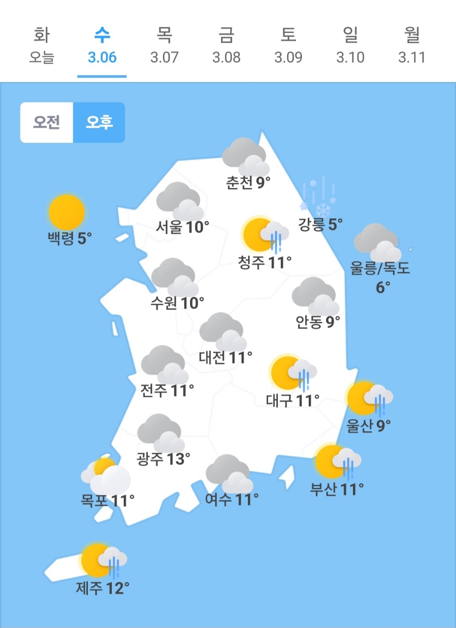 ✫청주(☁️)➠(🌧) 4℃ ~ 11℃