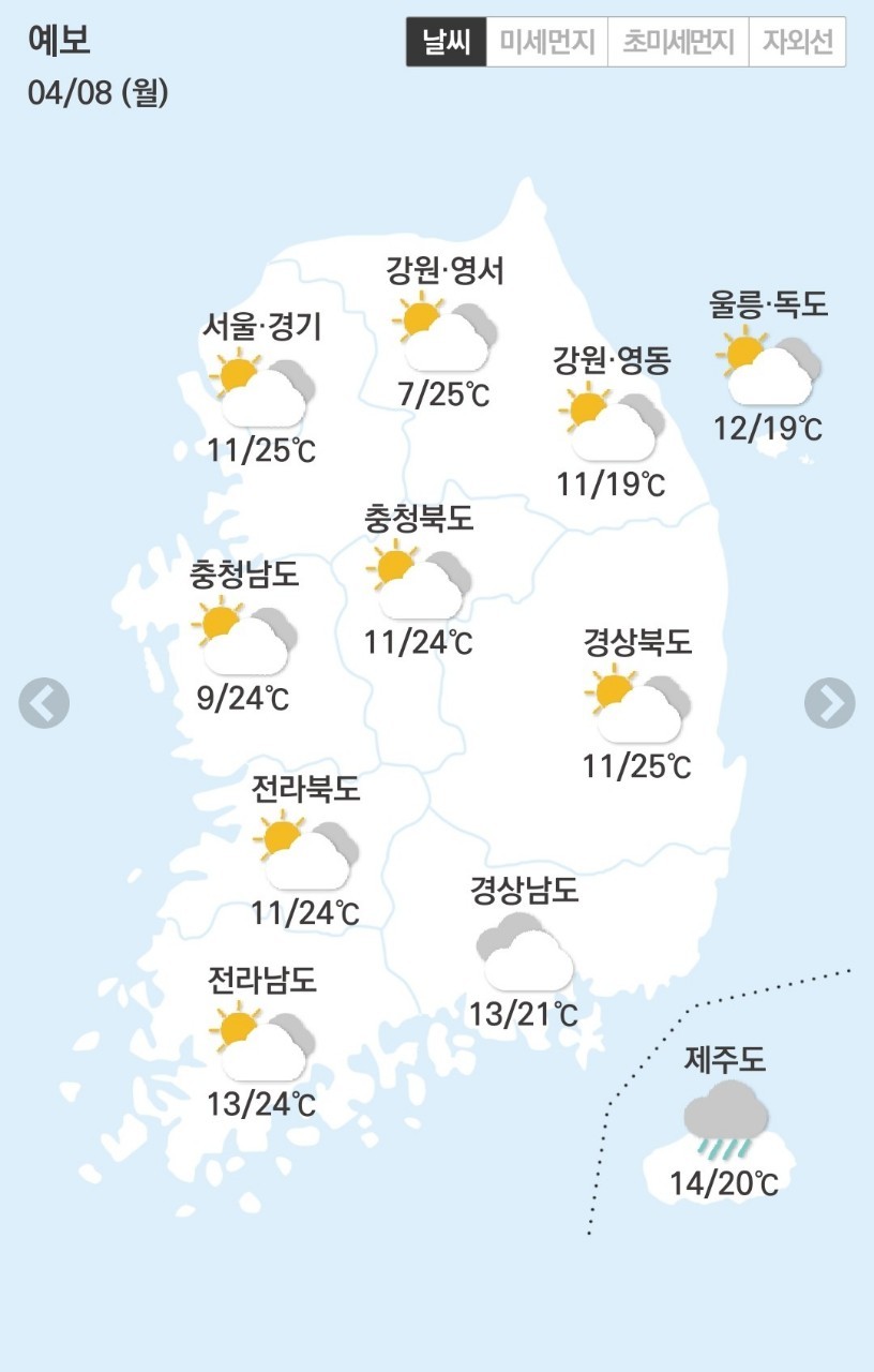 💗4월 8일 월요일 날씨💗