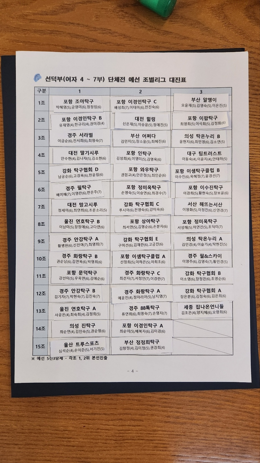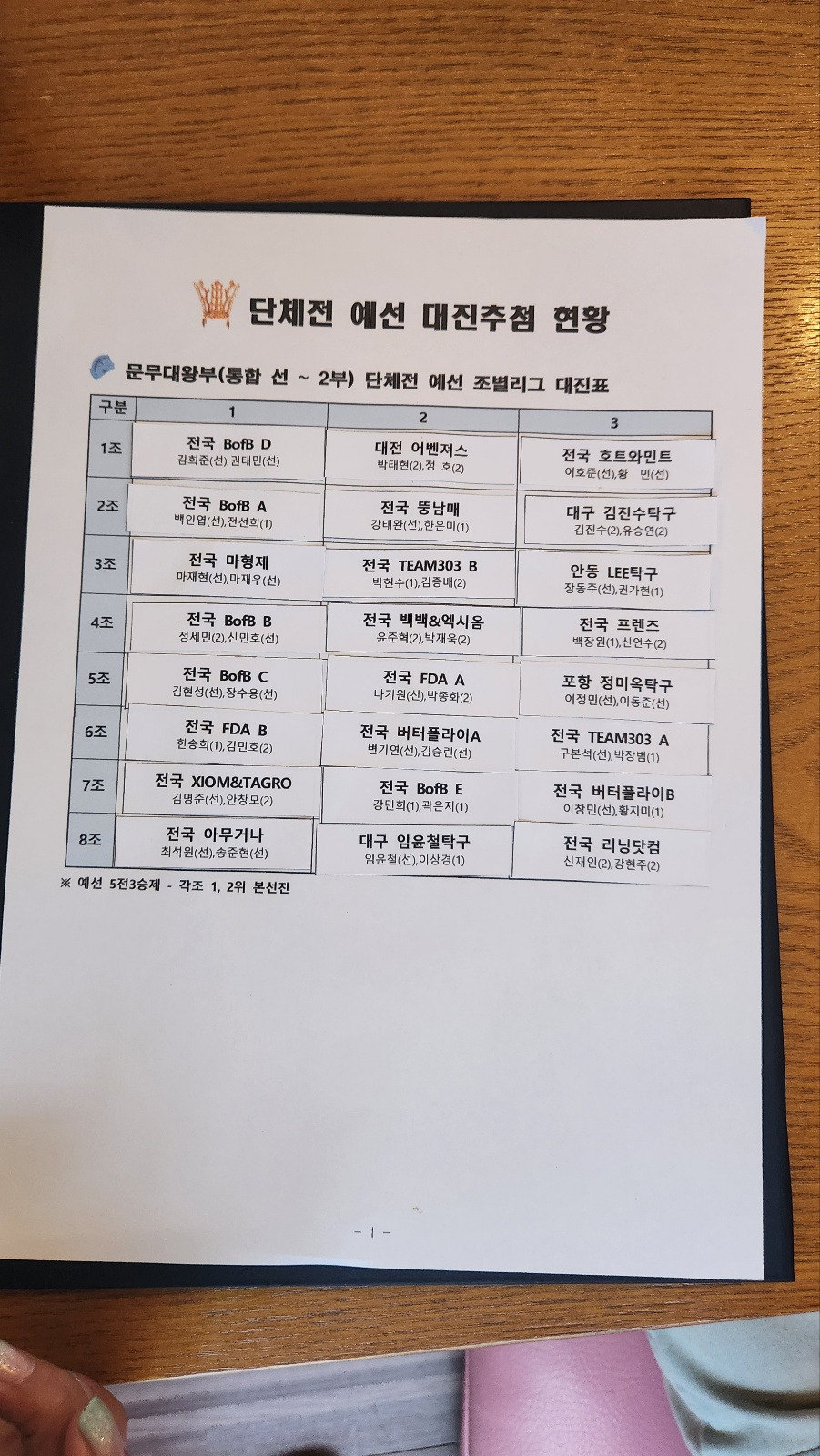 참고: 추첨 후 선수변경 및 취소 등이 있었으며 변경된 사항은 대진표 작성(팜플렛 작업)에 반영하여 작성하도록 하겠습니다.