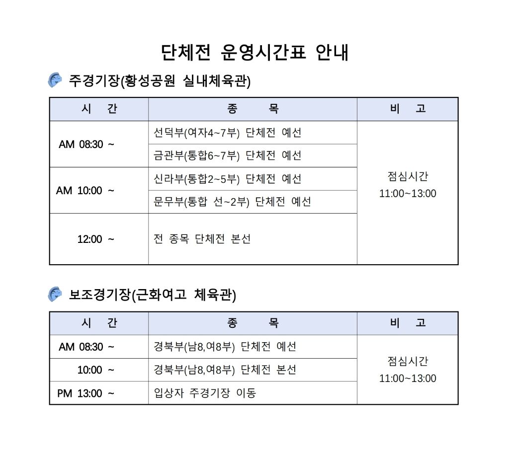 - 단문체전 - 문무(선~2), 신라부(3~5), 금관부(6,7), 선덕부(여4~7)