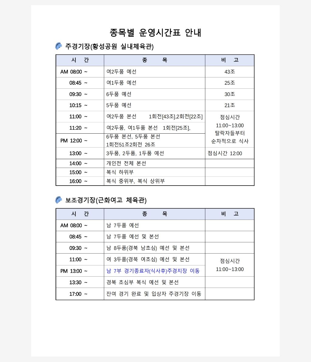 ( 시합시간보다 조금 더 일찍 오셔서 대기해주시면 감사하겠습니다^^