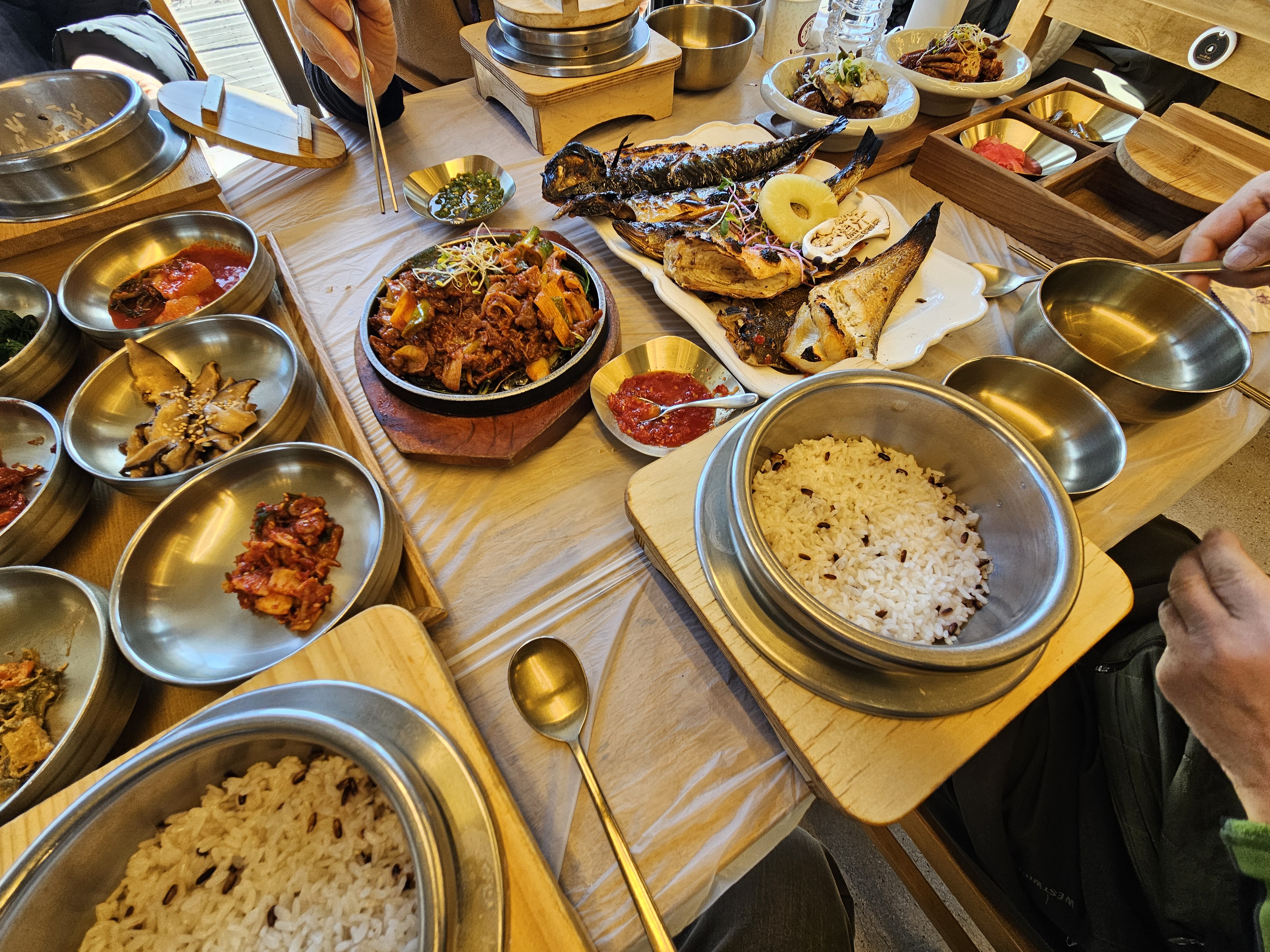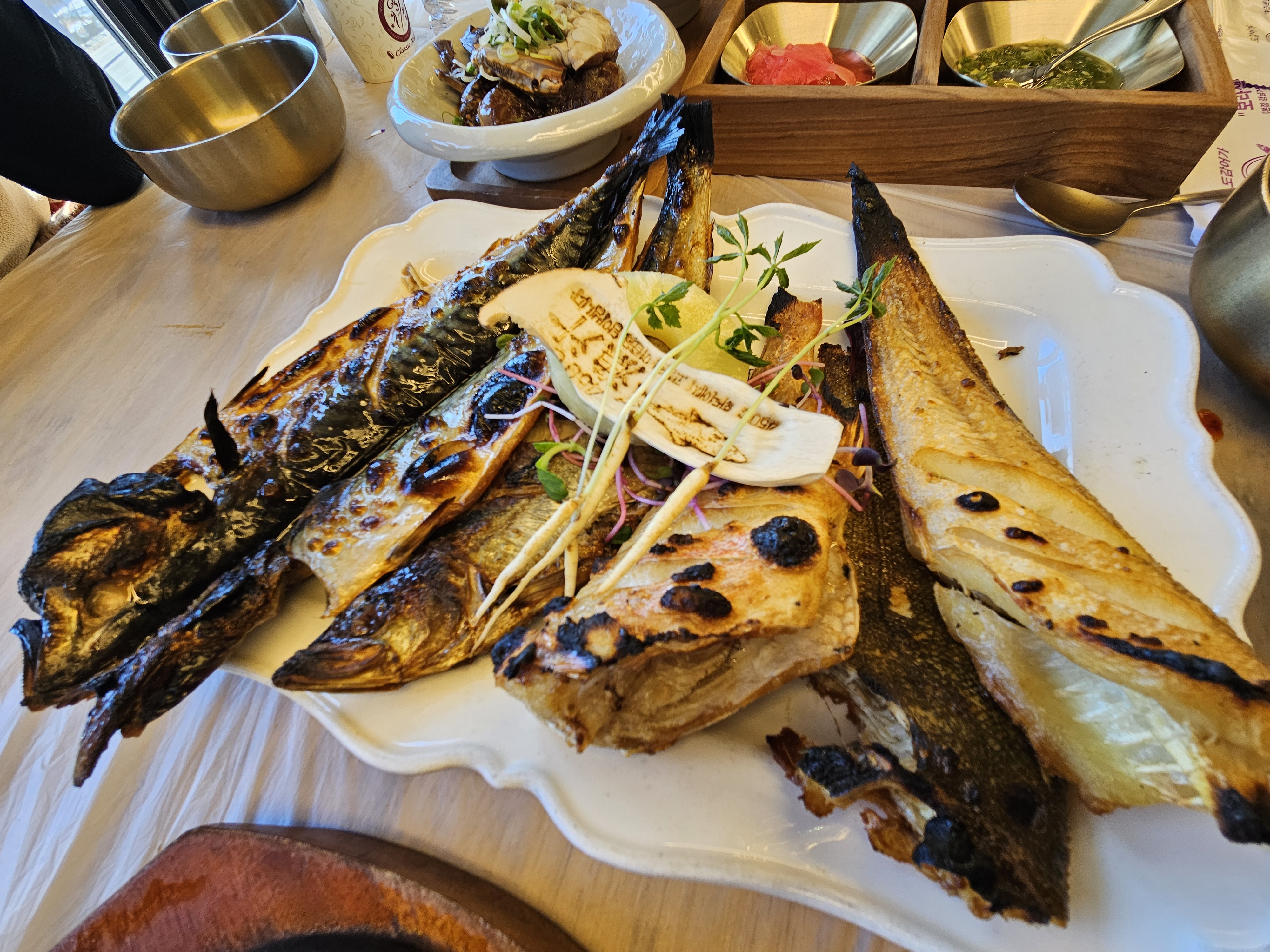 화덕에 구운 생선에 조기 매운탕까지...