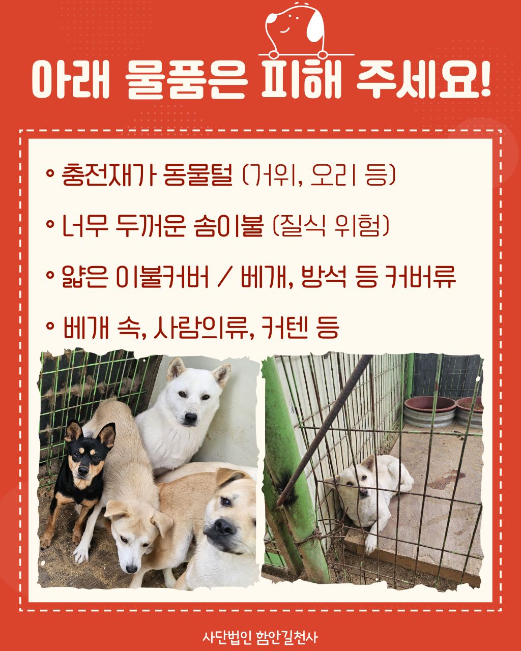 바들바들 떨며 밤새 추위에 잠 못 이루는 보호소 친구들을 위해 집에서 안 쓰는 이불, 담요를 선물해주세요.