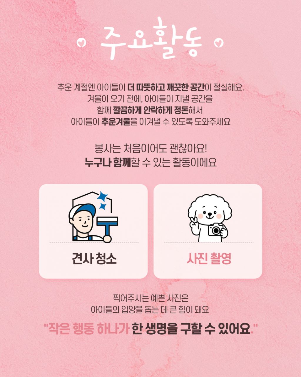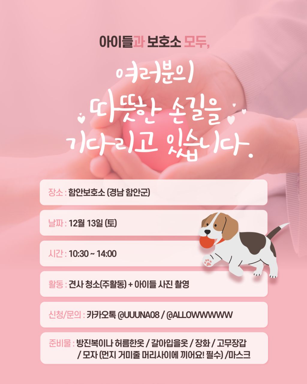 ์์ด๋ค๊ณผ ๋ณดํธ์ ๋ชจ๋, ์ฌ๋ฌ๋ถ์ ๋ฐ๋ปํ ์๊ธธ์ ๊ธฐ๋ค๋ฆฌ๊ณ ์์ต๋๋ค.