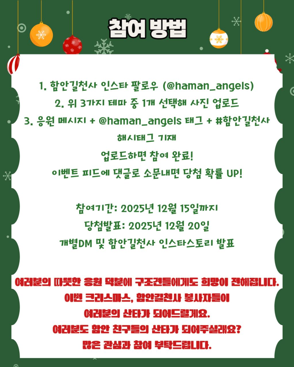 ์ด๋ฒ ํฌ๋ฆฌ์ค๋ง์ค, ํจ์๊ธธ์ฒ์ฌ ๋ด์ฌ์๋ค์ด ์ฌ๋ฌ๋ถ์ ์ฐํ๊ฐ ๋์ด๋๋ฆด๊ฒ์.