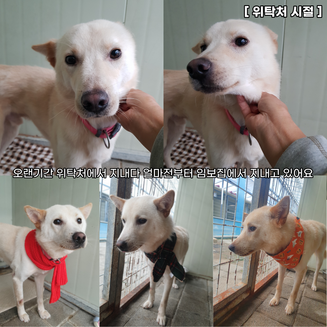 그 후 많고 많은 여느 진도 믹스 아이들과 마찬가지로 임보가정을 구하지 못해 실외위탁처에서 오랜시간 지내다 얼마전부터 현 임보가정에서 지내고 있어요.
