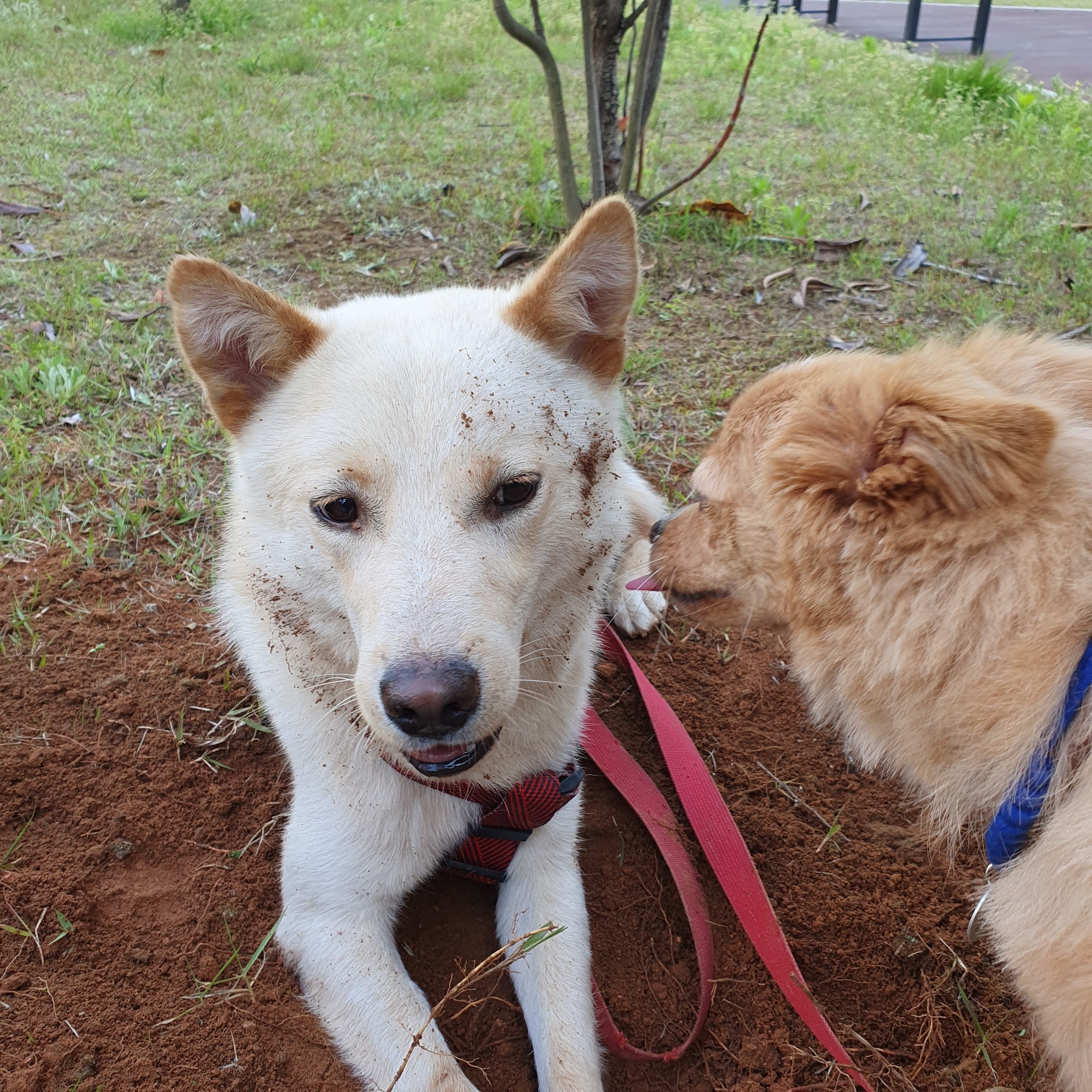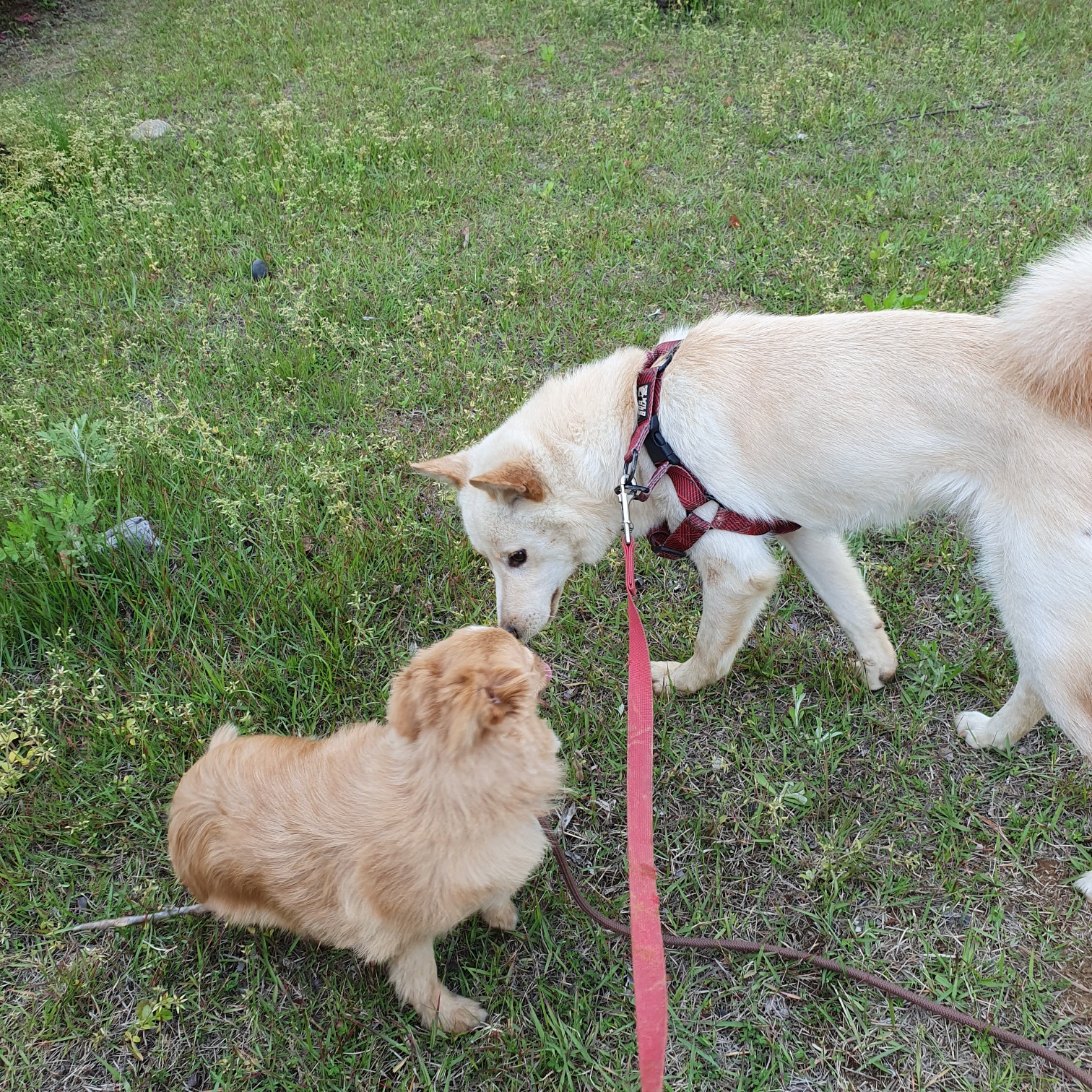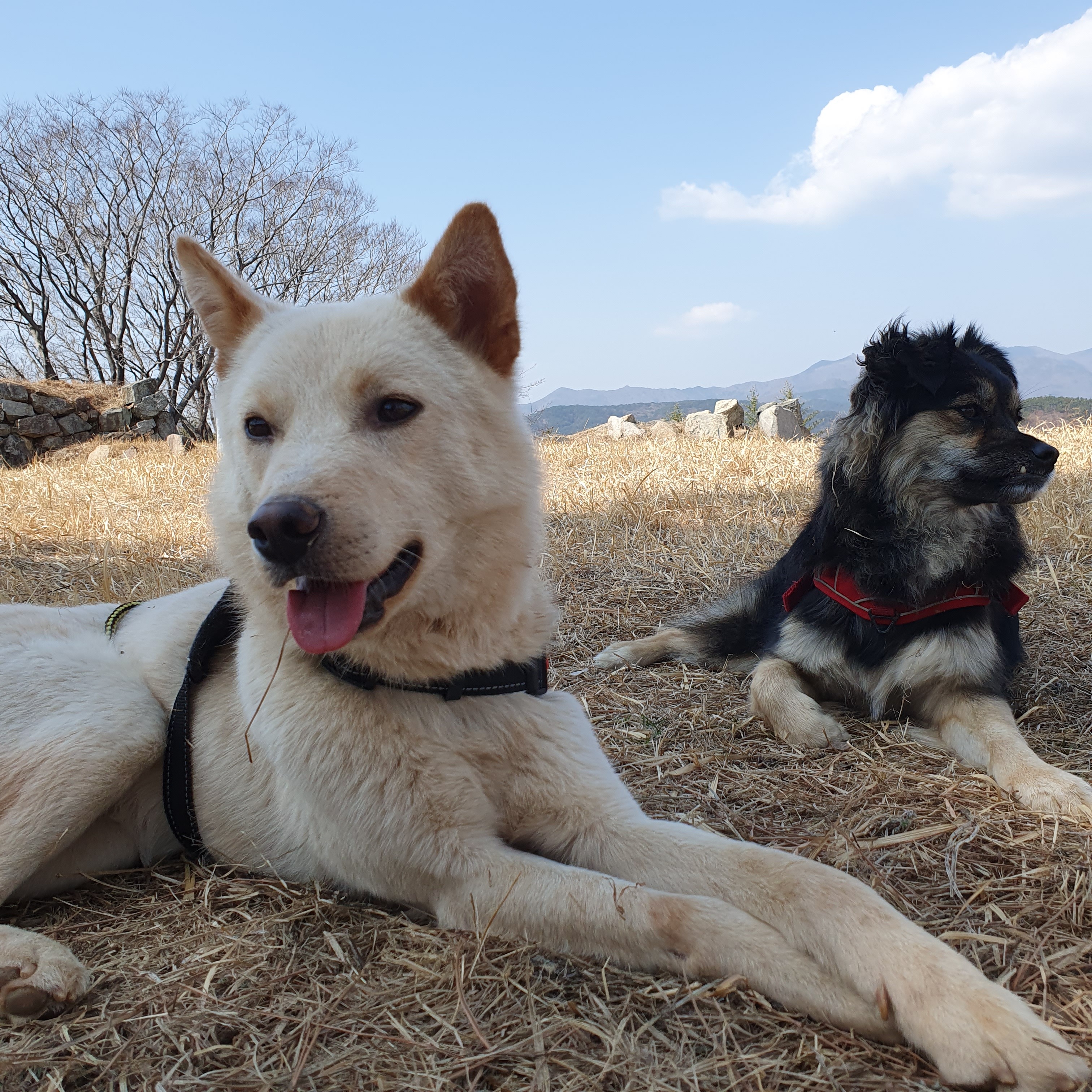 -대체적으로 상대 개를 해치려는 의도는 없어 보이며 놀람, 반가움 등으로 컹컹 짖을 때가 있습니다(아마 비슷한 체구의 믹스견 1명과 함께 산책을 다니다보니 얘들이 집단화 되면서 기가 살아서 더 그럴수도 있어요)