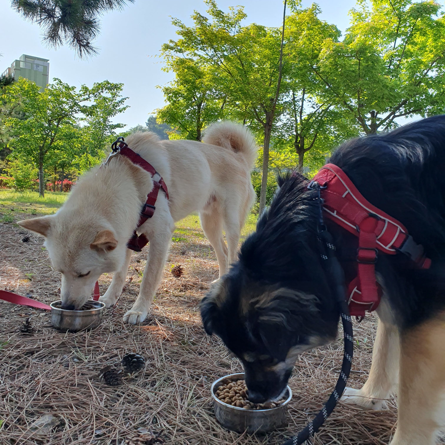 -밥그릇을 따로 주지만 다른 반려견과 함께 식사하는 것을 피해버립니다.