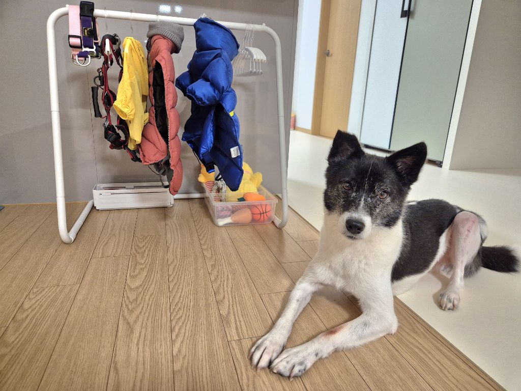 새로운 집이나 공간에 가면 조용히 냄새 맡으며 천천히 적응을 하기 때문에 하루나 이틀정도 시간을 주시면 좋아요. 적응 후엔 편안하게 눕고 사람을 찾는 안정적인 성향이예요.