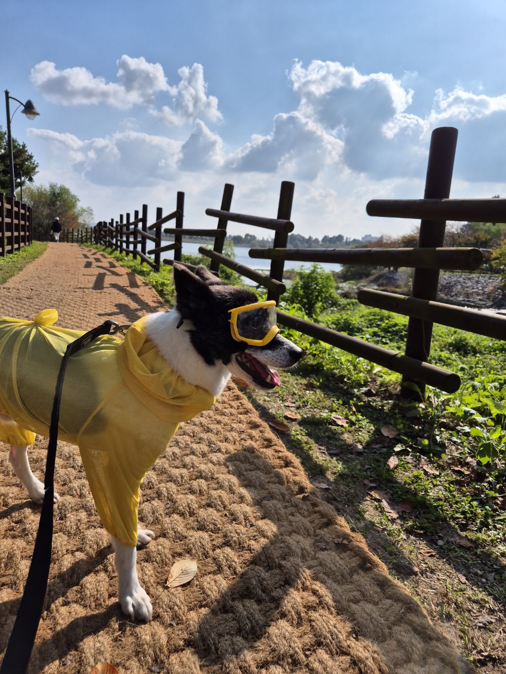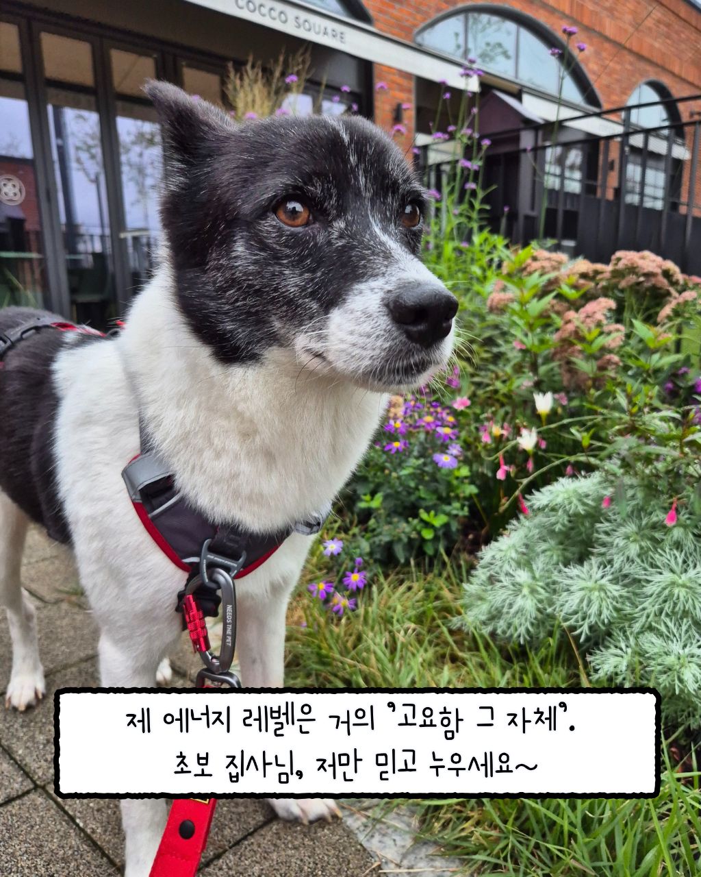 밖에 나가면 기분이 좋아져 꼬리가 빠르게 흔들려요. 줄당김 거의 없고 가끔 흥분하는 순간에도 “천천히~” 한마디면 바로 속도 조절하는 모범 산책러 입니다.