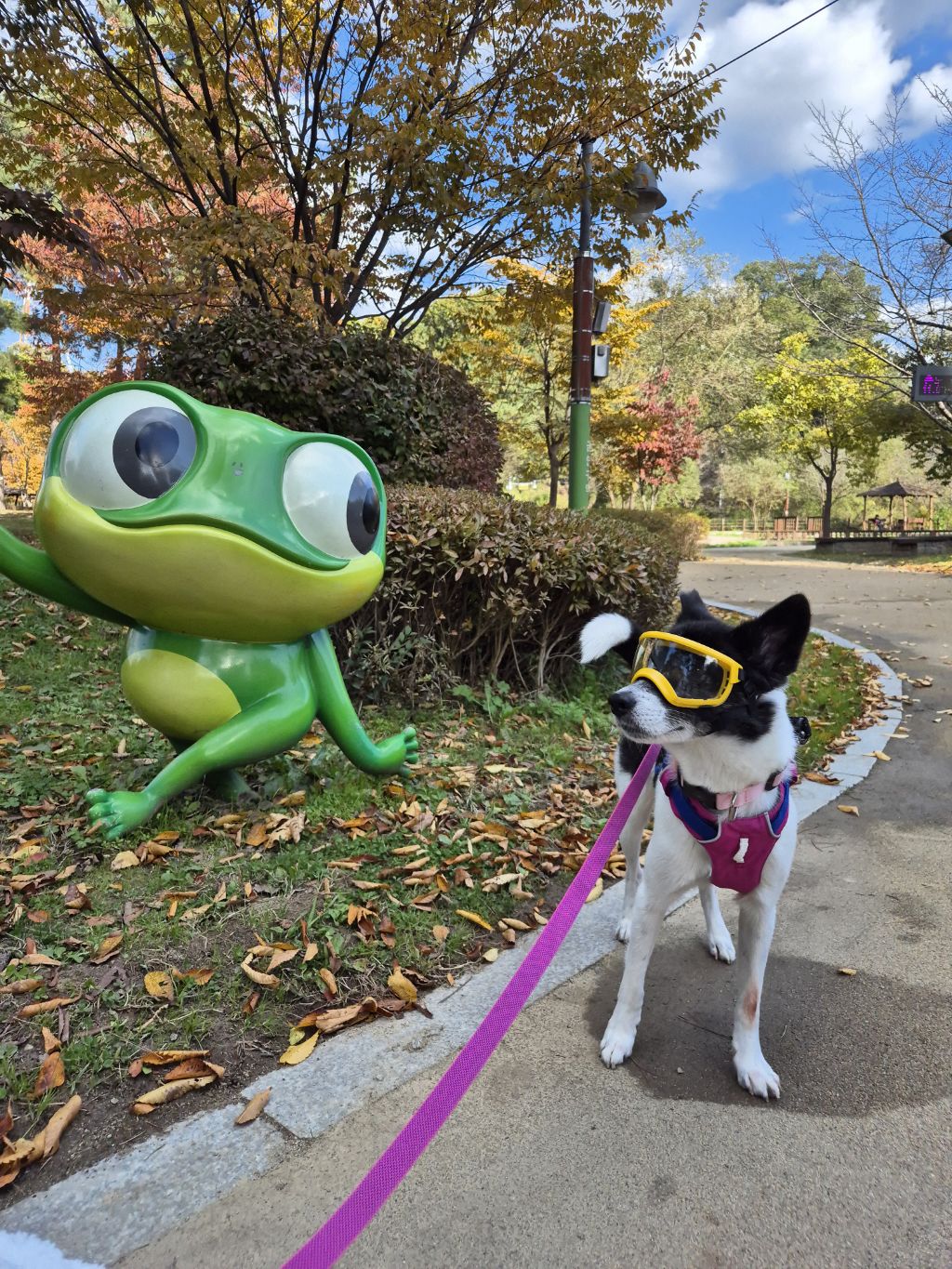 🍀타동물(고양이,새 등)과의 사이 : 새는 관심 없고, 고양이는 조금 무서워하는 편이예요. 고양이를 보아도 따라가거나 짖지는 않아요.