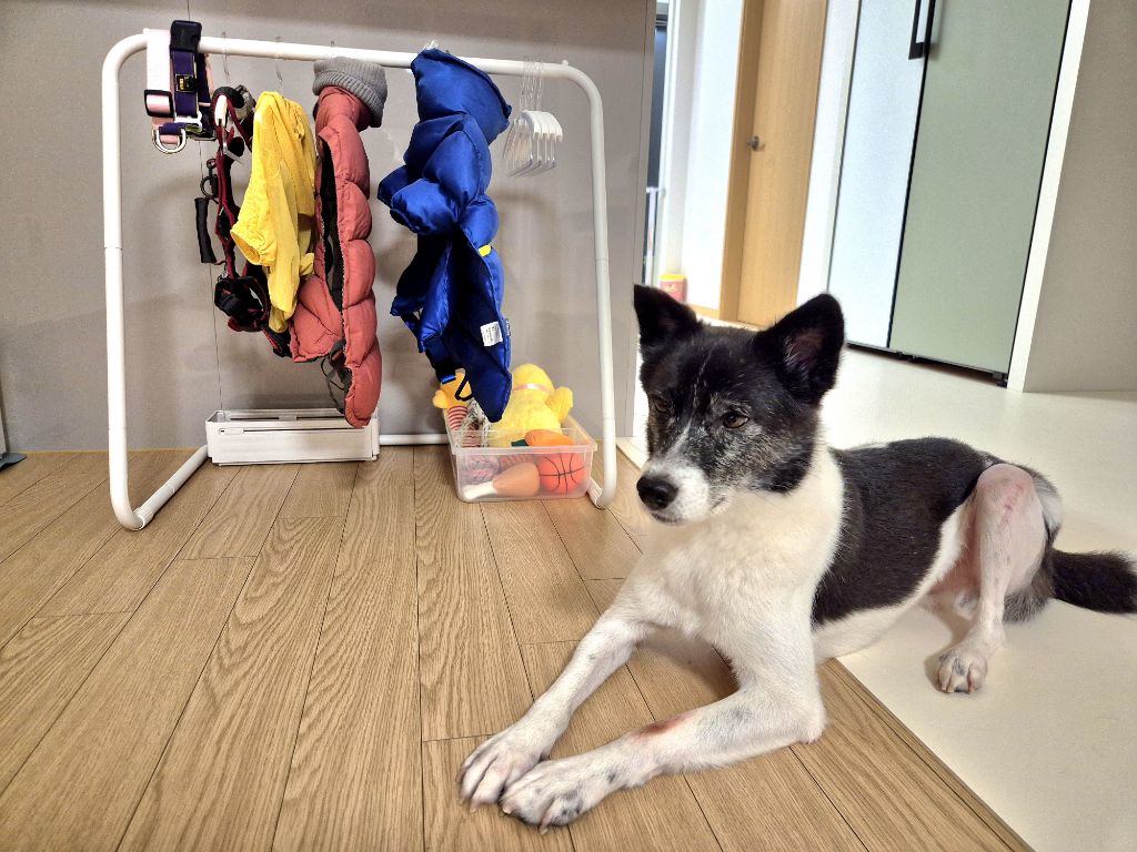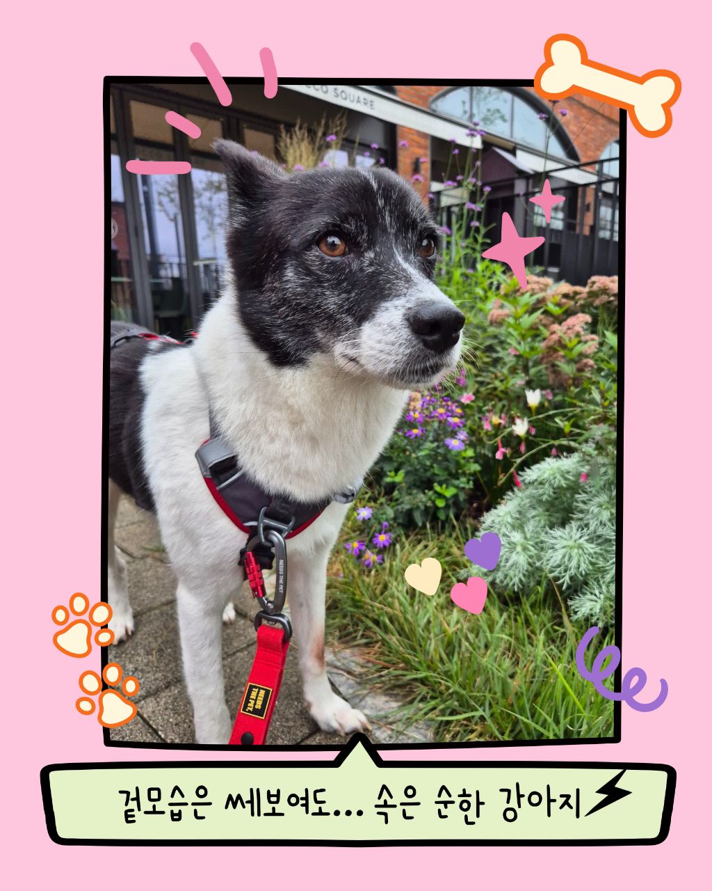 🍀성격 : 매우매우 순해요. 사람에게 호기심이 많아 계속 지켜보지만 겁이 조금 있어 처음엔 조심스럽게 다가오는 편이예요. 상대방이 조용히 다가와 손을 내밀어주면 꼬리를 흔들며 마음을 여는 따뜻한 성격을 가지고 있어요. 한 번 믿음이 생기면 사람 옆에 툭 기대 앉아 있는 다정한 아이입니다.