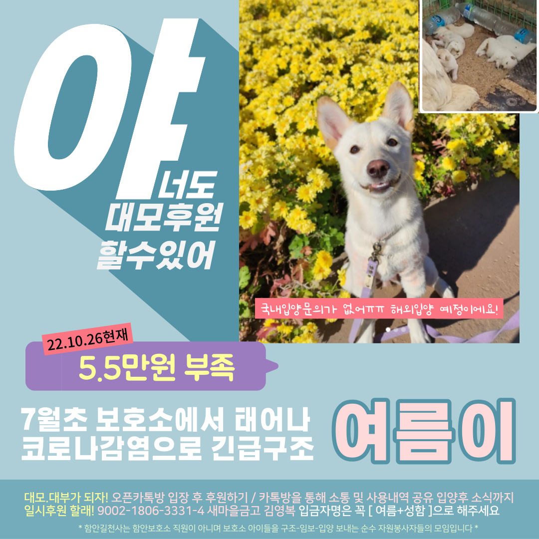 *입양가기 전까지 후원을 하셔야 하기 때문에 부담가지 않는 선에서 참여해 주세요:)