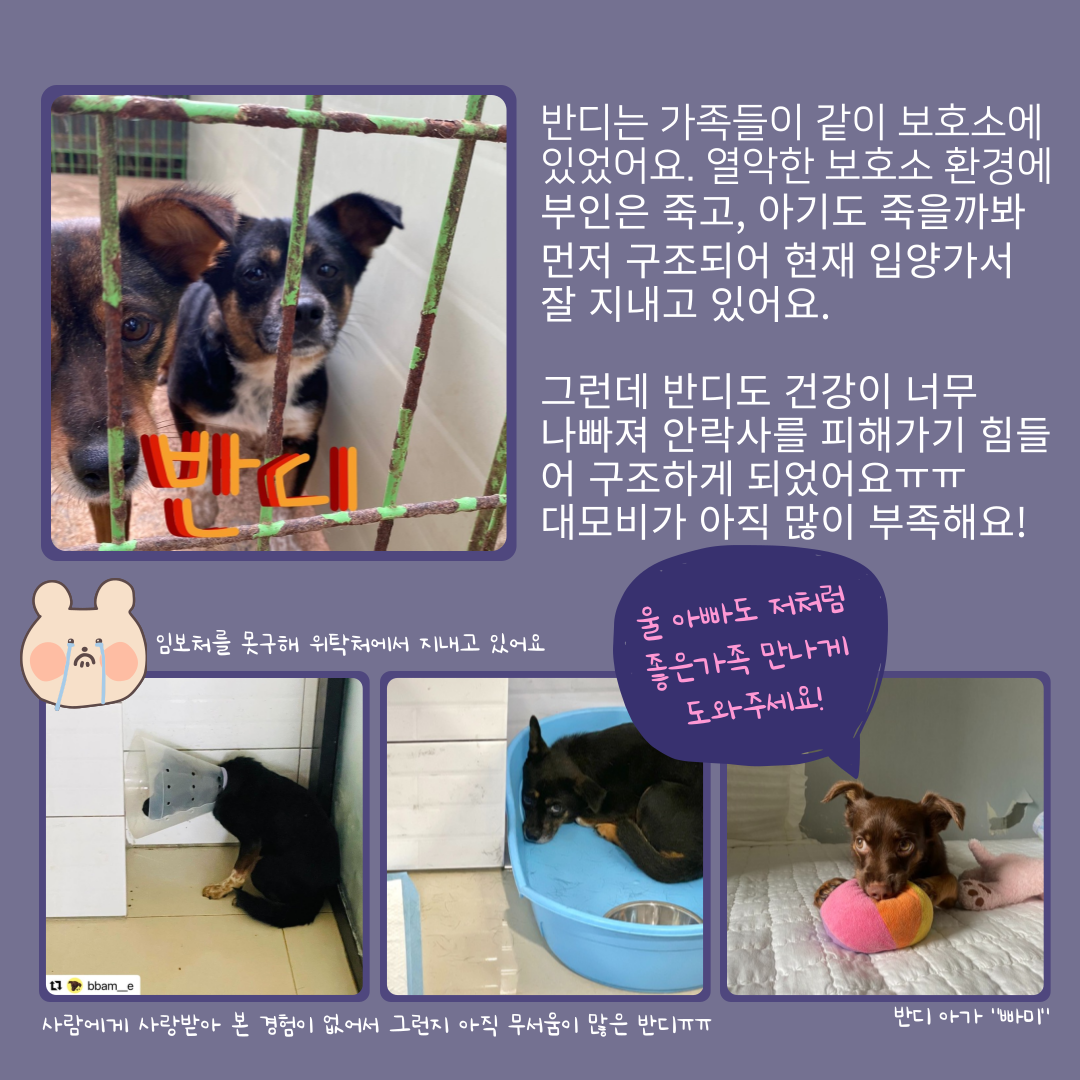 이어서 지난 1월과 6월 안락사에서 구조했던 미남이 / 순돌이 / 레옹이 / 젝슨 / 엔젤 / 순디 / 포포 / 호우의 대모팀도 완성되어 입양까지 무사히 성공할 수 있도록 많은 관심과 응원 부탁드립니다^^