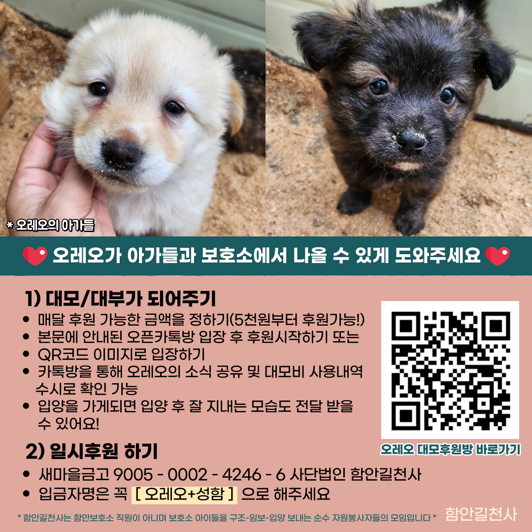 남은 아가들과 엄마 오레오가 구조되어 제 2의 견생을 살아갈 수 있도록 조금씩 힘을 보태주세요!