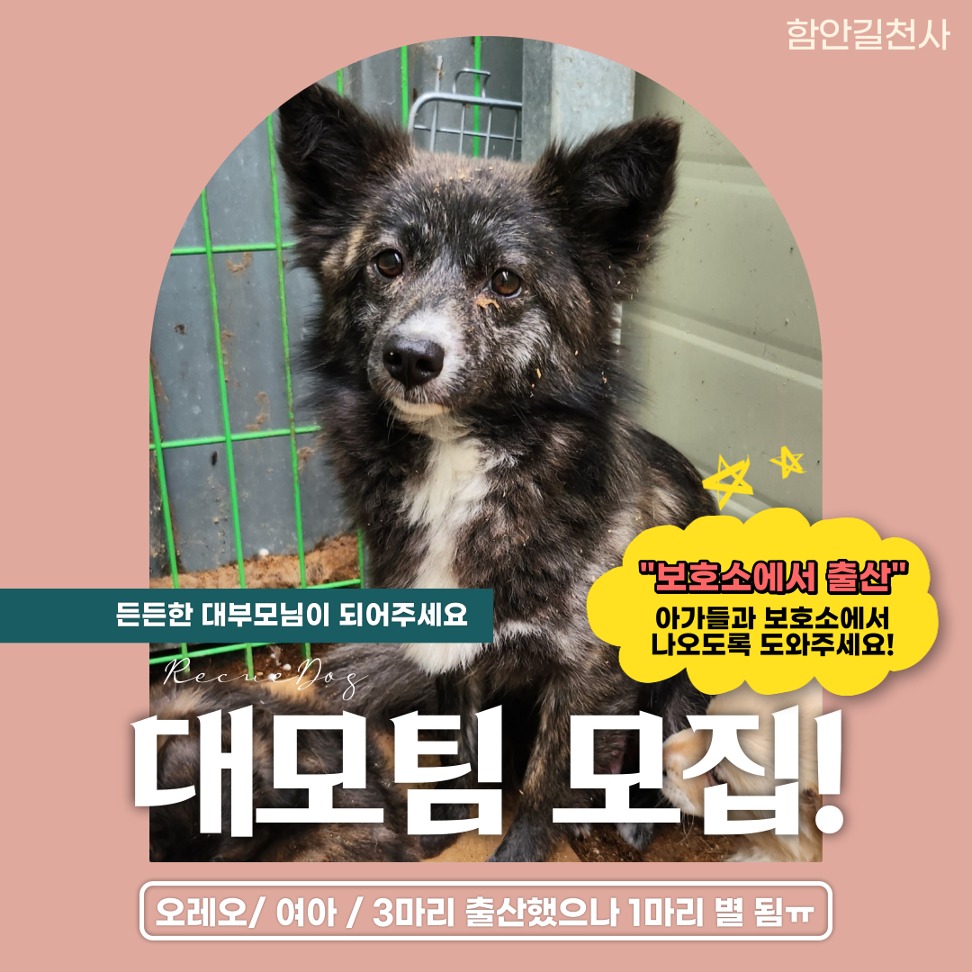 함안보호소에서 3마리의 아가들을 출산한 "오레오"와 아가들을 구조할 수 있게 대모/대부님이 되어주세요!