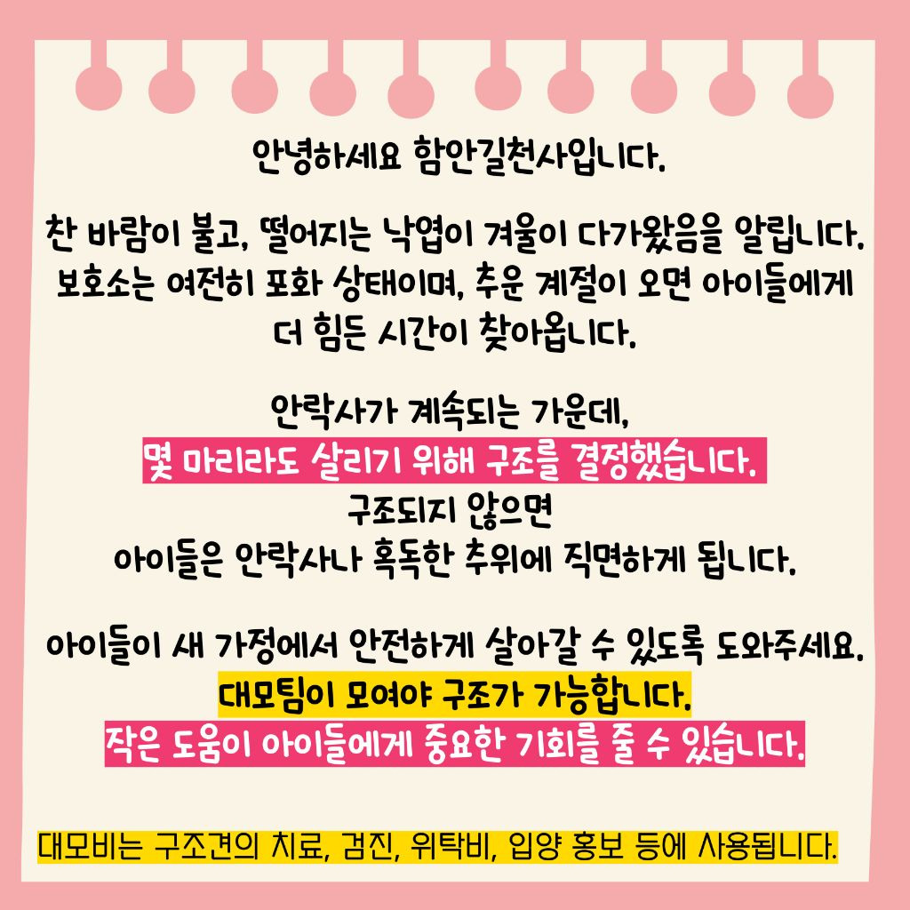 λ μ¨λ μ μ°¨ μΆμμ§λλ° λ³΄νΈμλ μ¬μ ν ν¬νμνμμ. κ³μ μ§νλλ μλ½μ¬μμ λͺλ§λ¦¬λΌλ μ΄λ €λ³΄κ³ μ μ΄λ €μ΄ μν©μμλ ꡬ쑰λ₯Ό κ²°μ νμ΅λλ€. ꡬ쑰λμ§ μλλ€λ©΄ μμ΄λ€μ λμμ μλ½μ¬ λλ κ·Ήνμ μΆμλ°μ λ¨μ§μμ΅λλ€