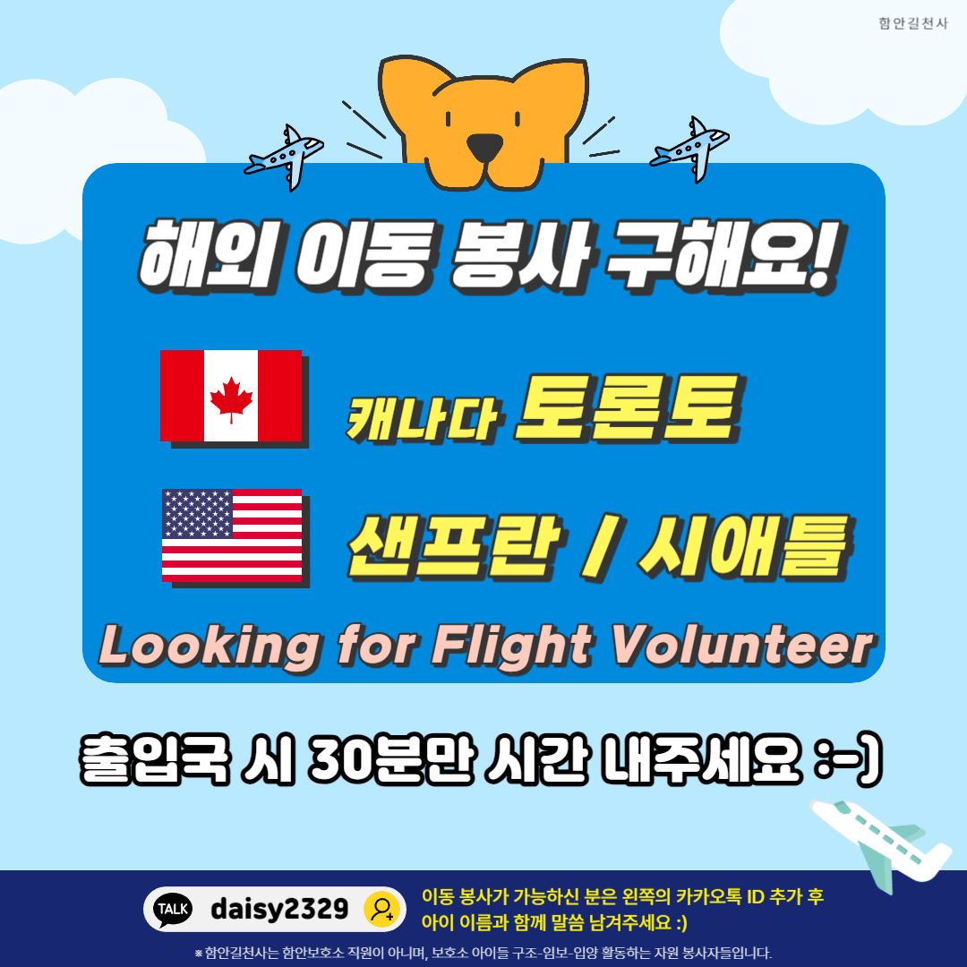 #함안길천사 #함안보호소 #해외이동 #해외이동봉사 #이동봉사급구 #시애틀이동봉사 #시애틀여행 #샌프란여행 #토론토여행 #미국여행 #캐나다여행