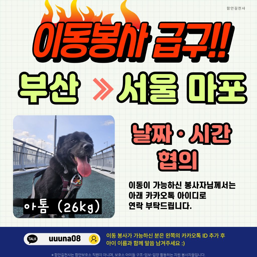 이동 봉사 가능하신 분께서는 아래 카카오톡으로 연락 부탁드려요. 감사합니다♡