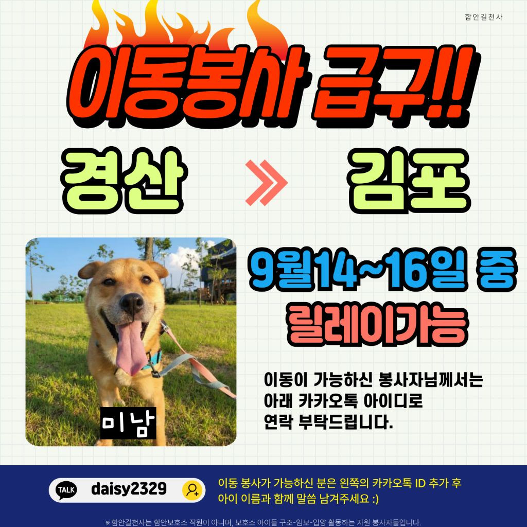 이동 봉사 가능하신 분께서는 아래 카카오톡으로 연락 부탁드려요. 감사합니다♡
