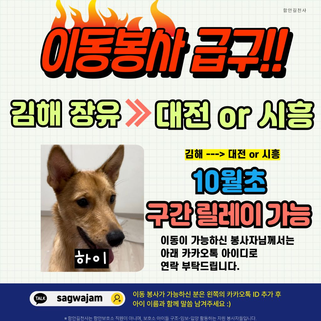 이동 봉사 가능하신 분께서는 아래 카카오톡으로 연락 부탁드려요. 감사합니다♡
