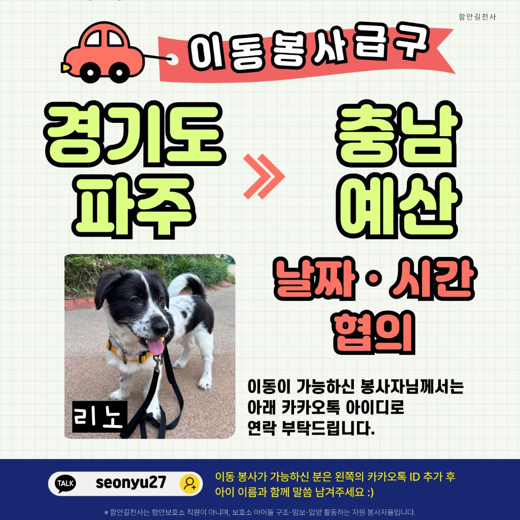 급!! 리노의 이동을 도와주실 봉사자님을 구해요.