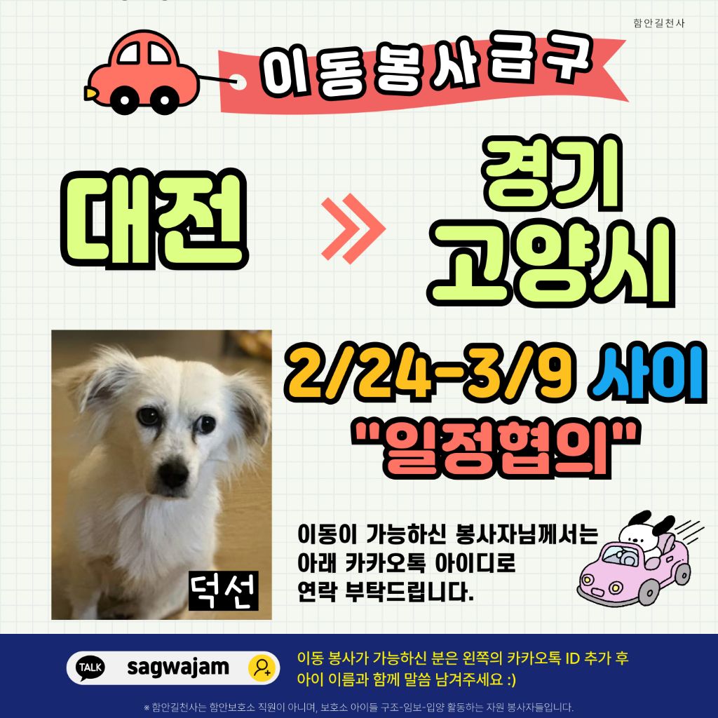 🚗급!! 덕선의 이동을 도와주실 봉사자님을 구해요.