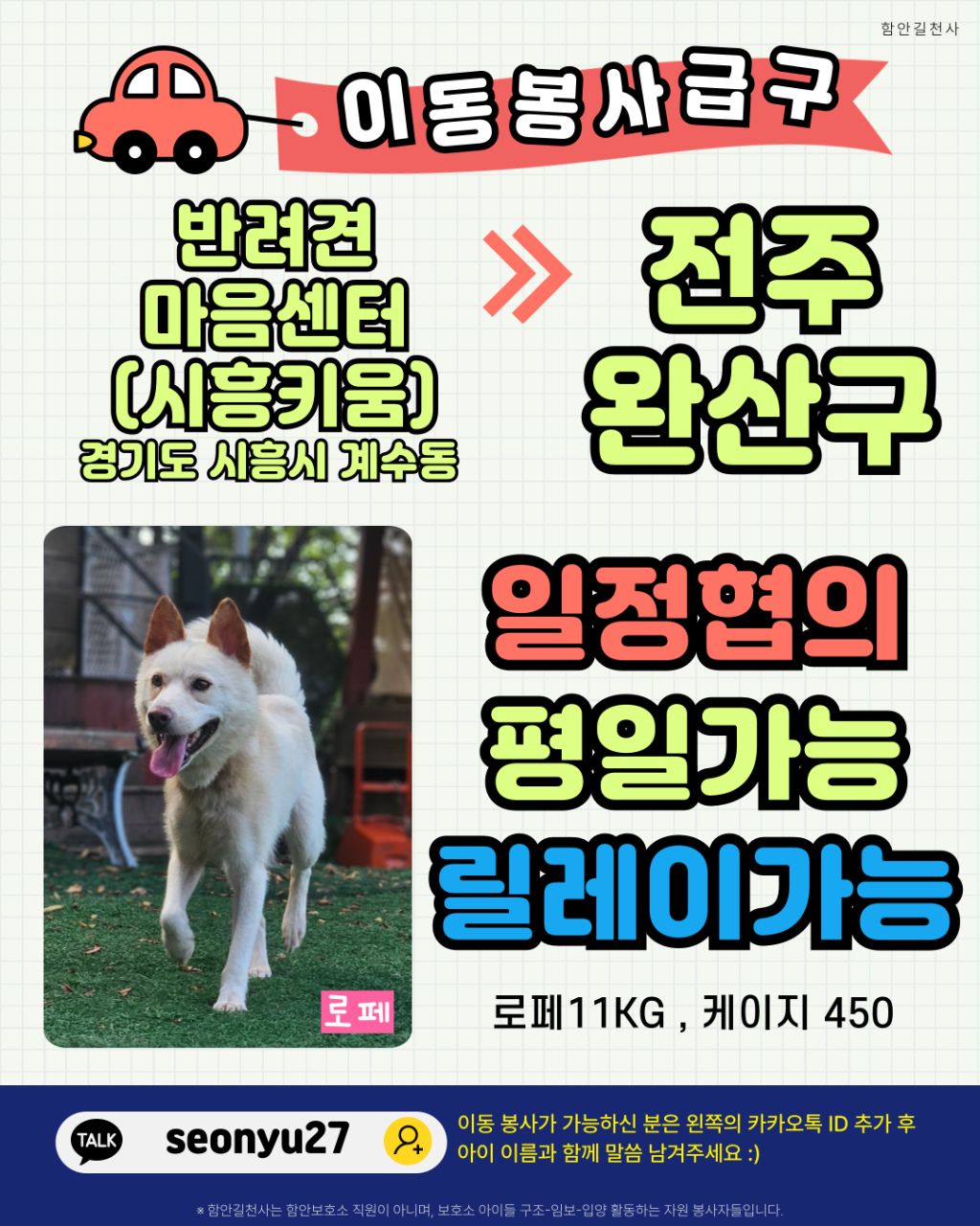 📢 로페의 이동봉사를 구합니다!