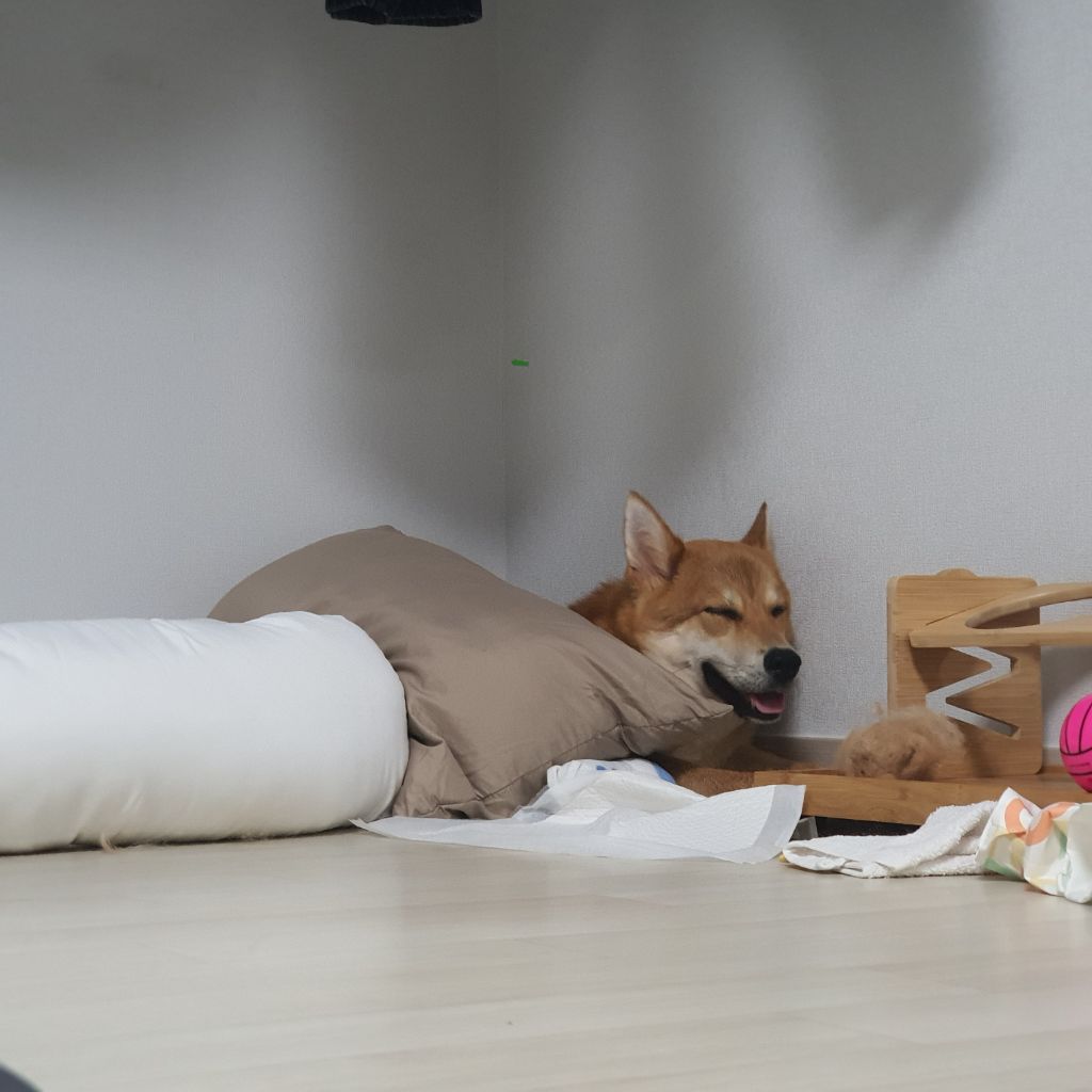 오늘하루 많이 스트레스를 받았는지 결국 구석에 다시 들어가서 혼자 헥헥대고 있고.. 단테에게 미안하네요 고맙네요..