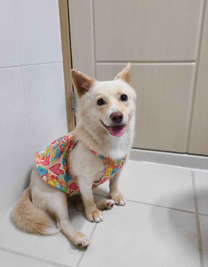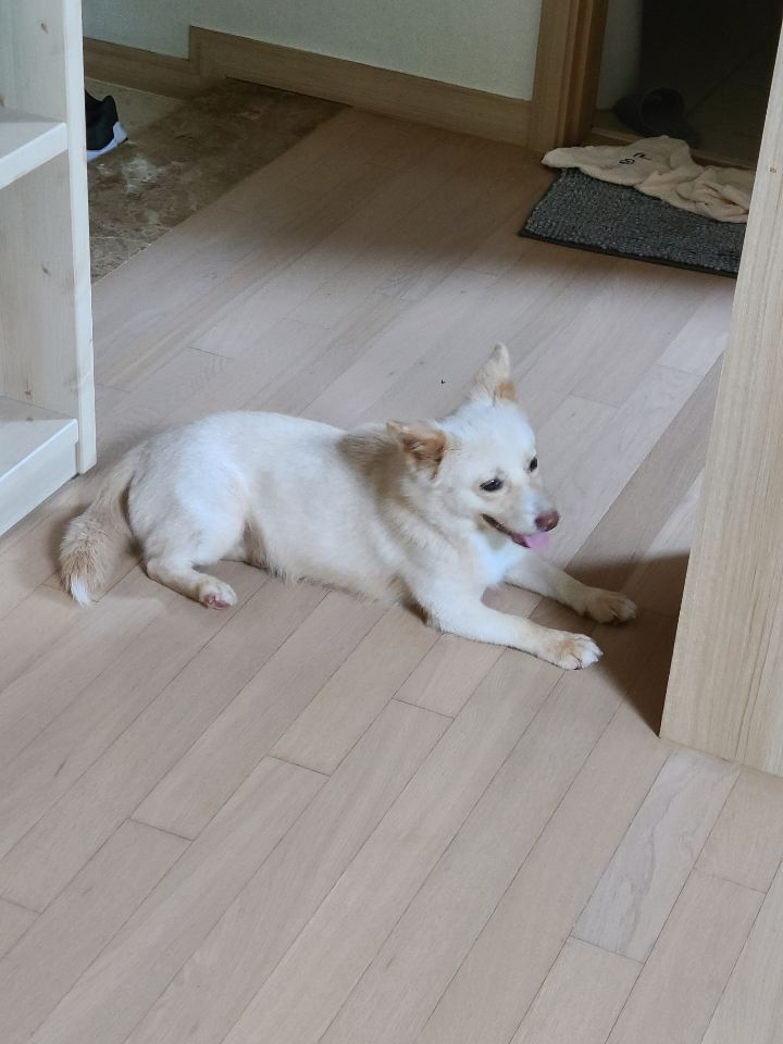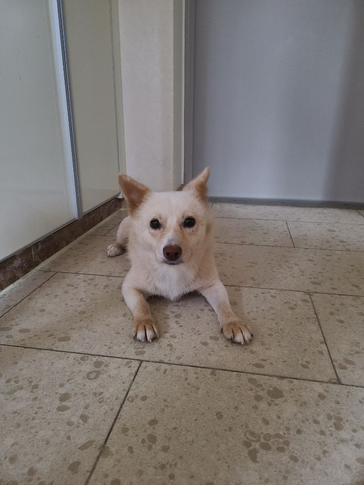 몸무게 8키로 / 성격 활발소심 / 짖음 거의없음 / 입질 전혀없음 / 배변훈련 실외배변 / 분리불안 전혀없음/ 털빠짐 있음 / 건강상태 양호 / 다른동물과의사회성 매우좋음 / 사람과의친화력 간식 잘 받아먹음 / 좋아하는것 고기 / 싫어하는것 아빠 / 개인기 앉아 엎드려 / 그밖의특징 등. .